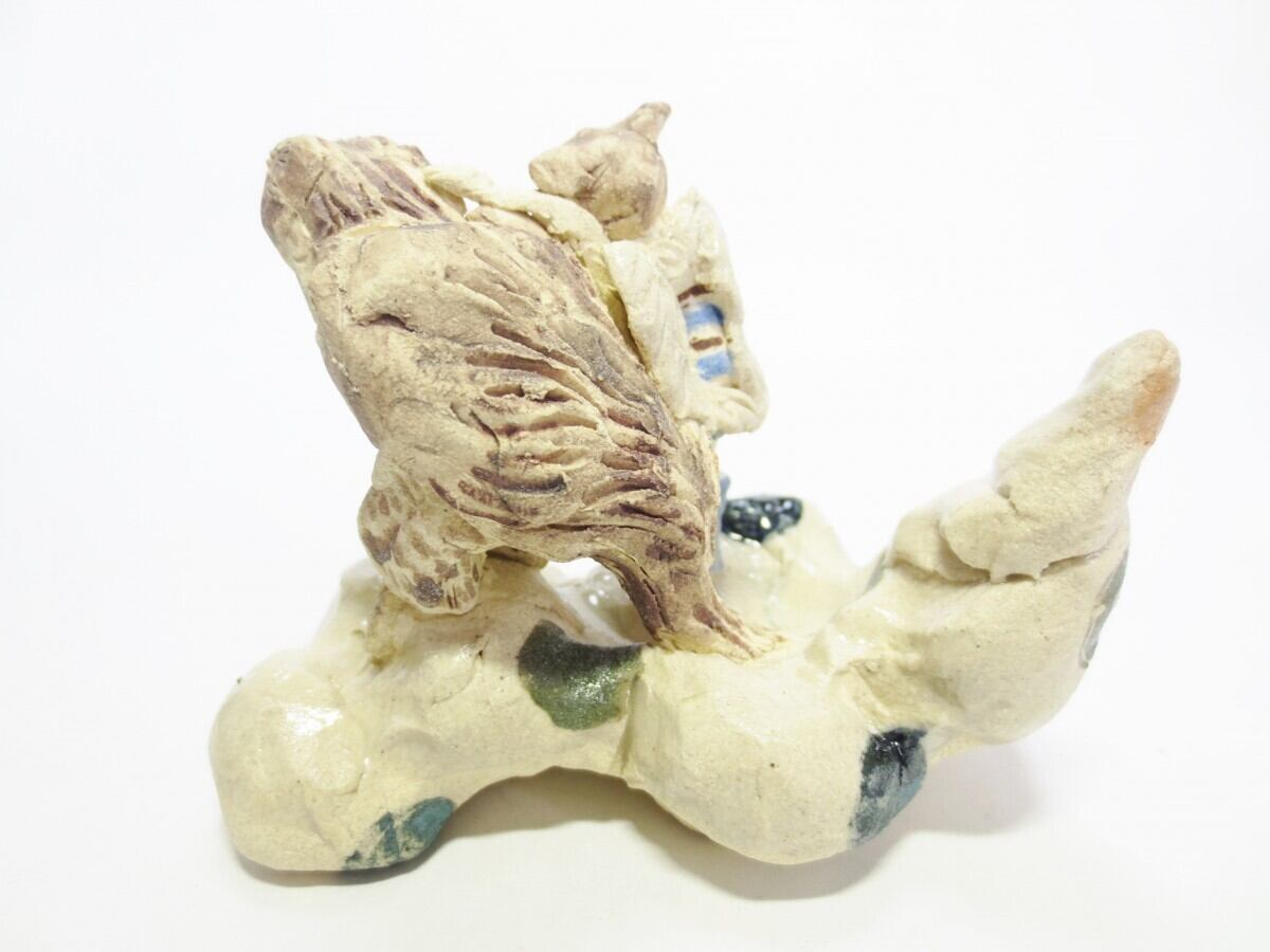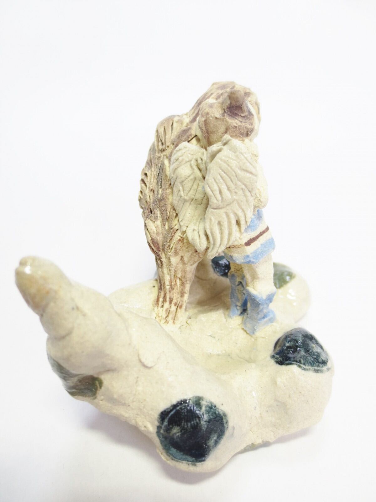 土台の一部、天使の羽部分には薄く透明釉を施しているので、その部分は少し光沢があります。