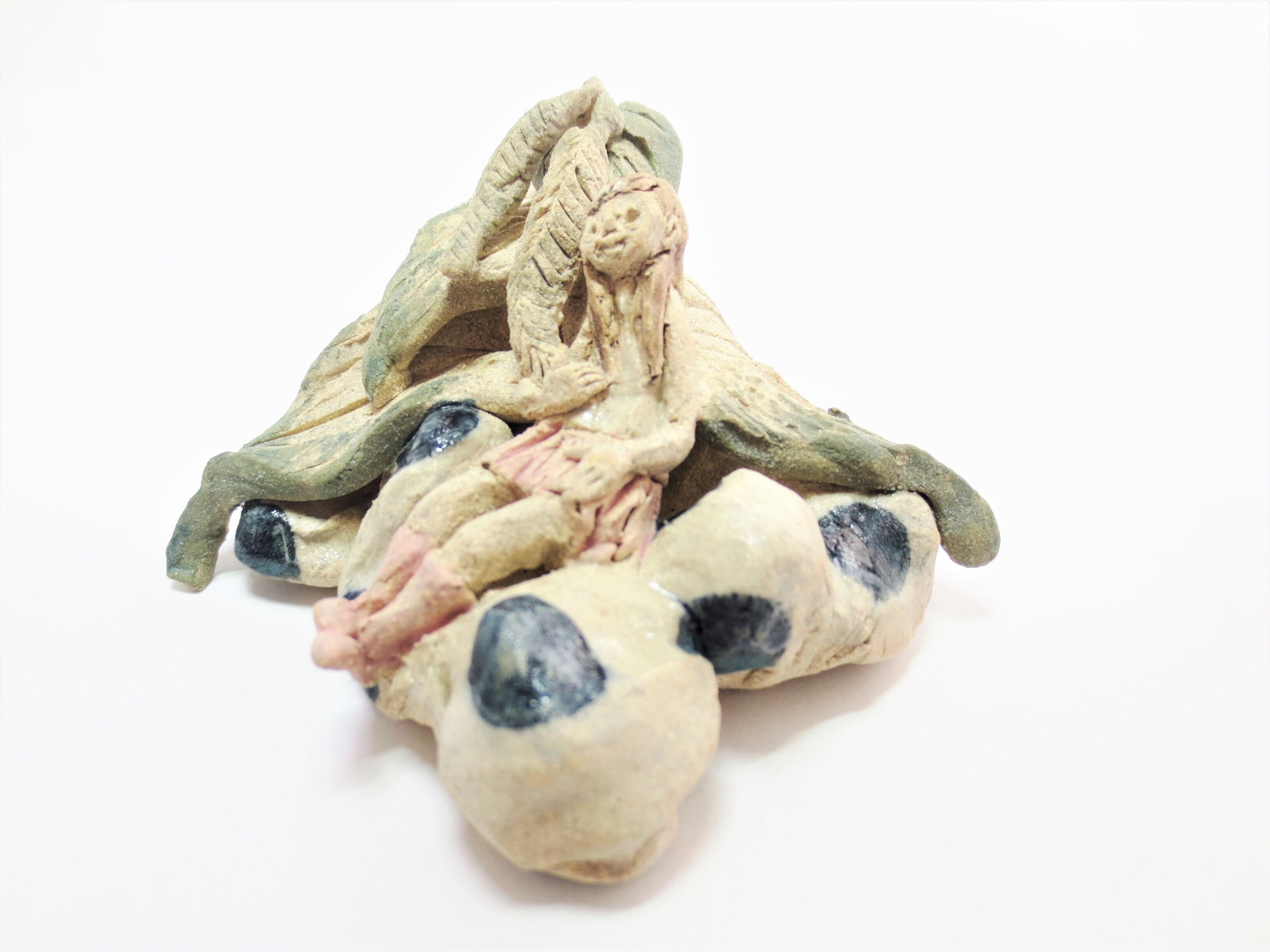 土台と服の一部分には薄く透明釉を施しているので、その部分は少し光沢があります。