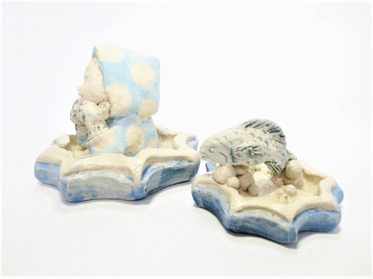 七十二候の名称は、気象の動きや動植物の変化を知らせる短文になっており、今回はそのうちのいくつかを陶人形で表現してみました。