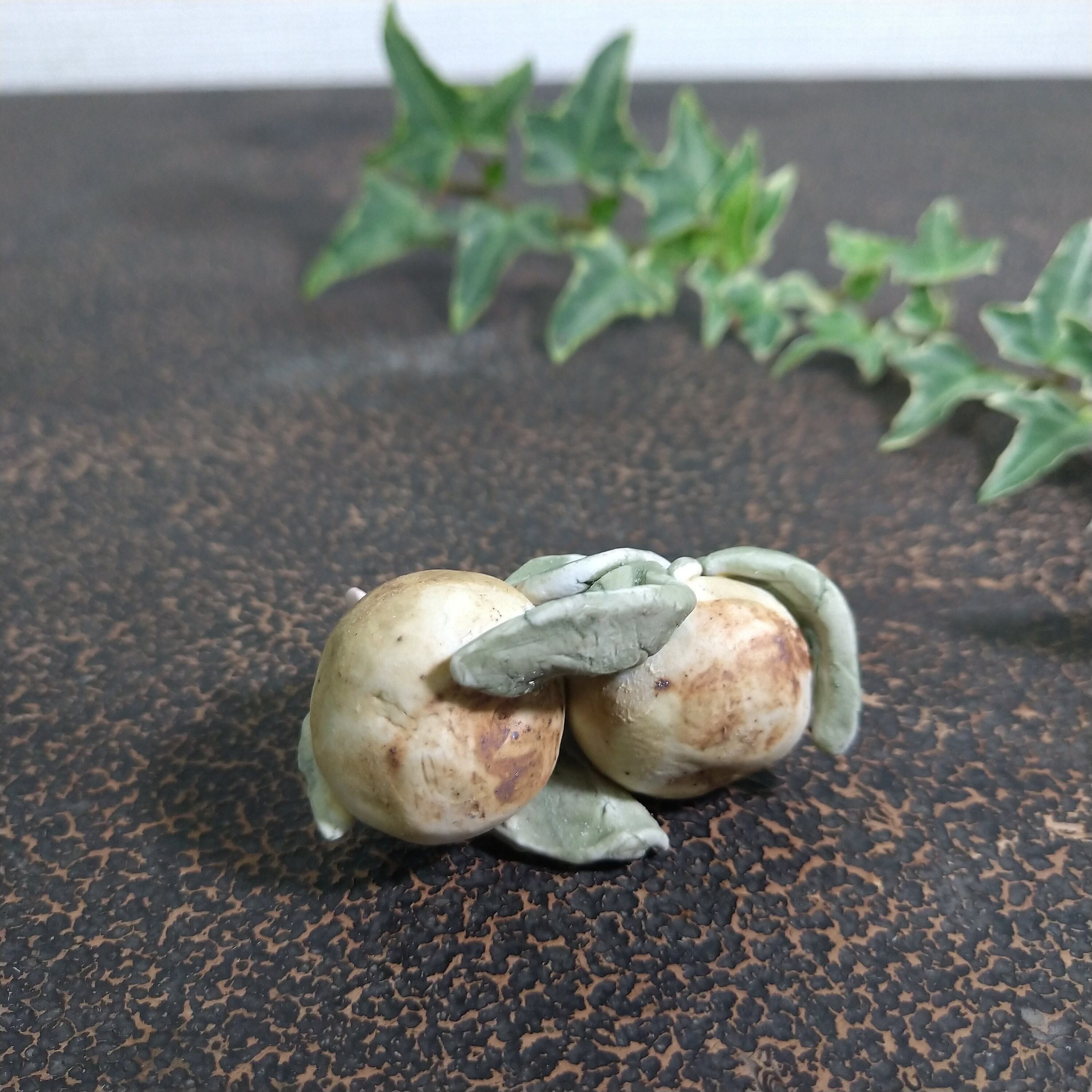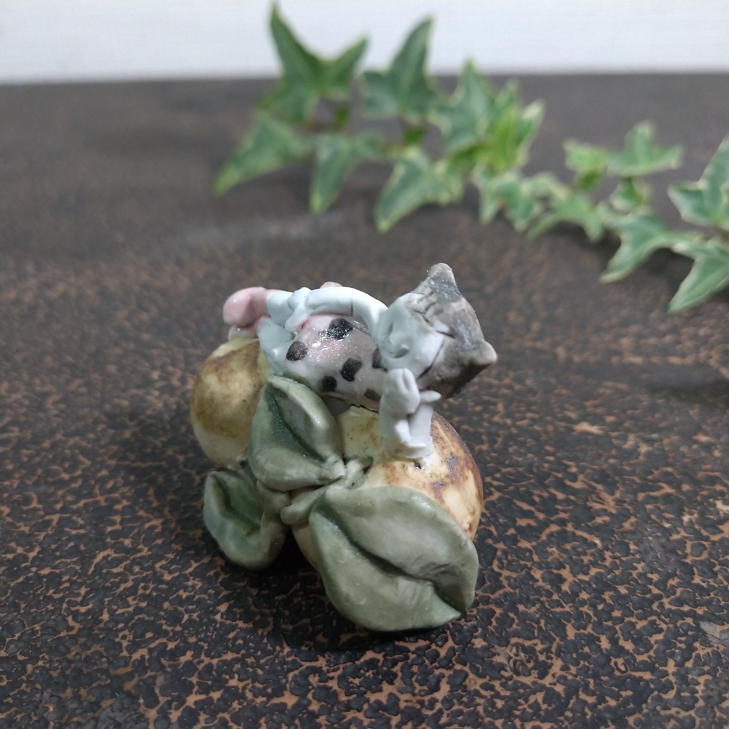 服の一部と葉部分に薄く透明釉を施しているので、その部分は少し光沢があります。