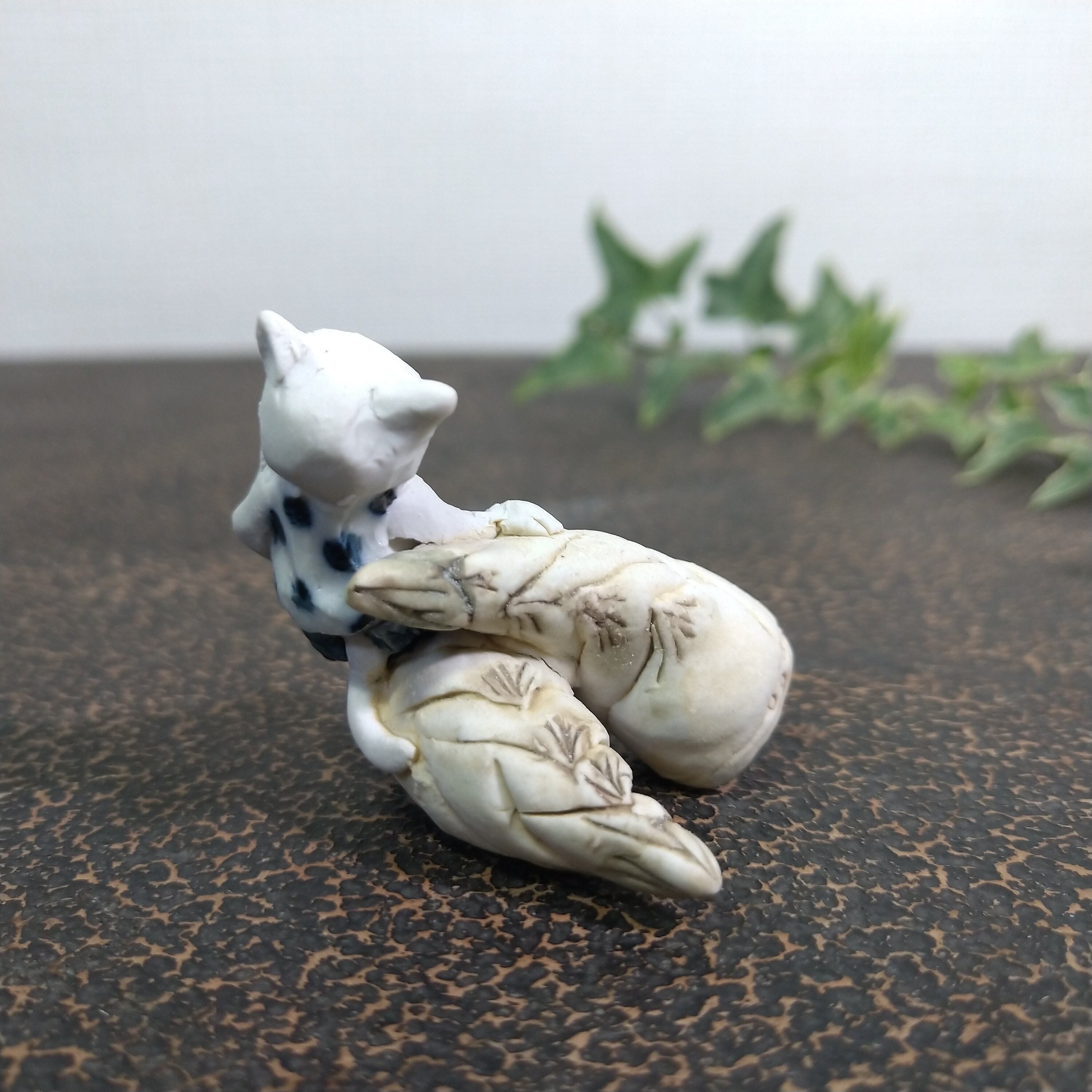 服の一部に薄く透明釉を施しているので、その部分は少し光沢があります。