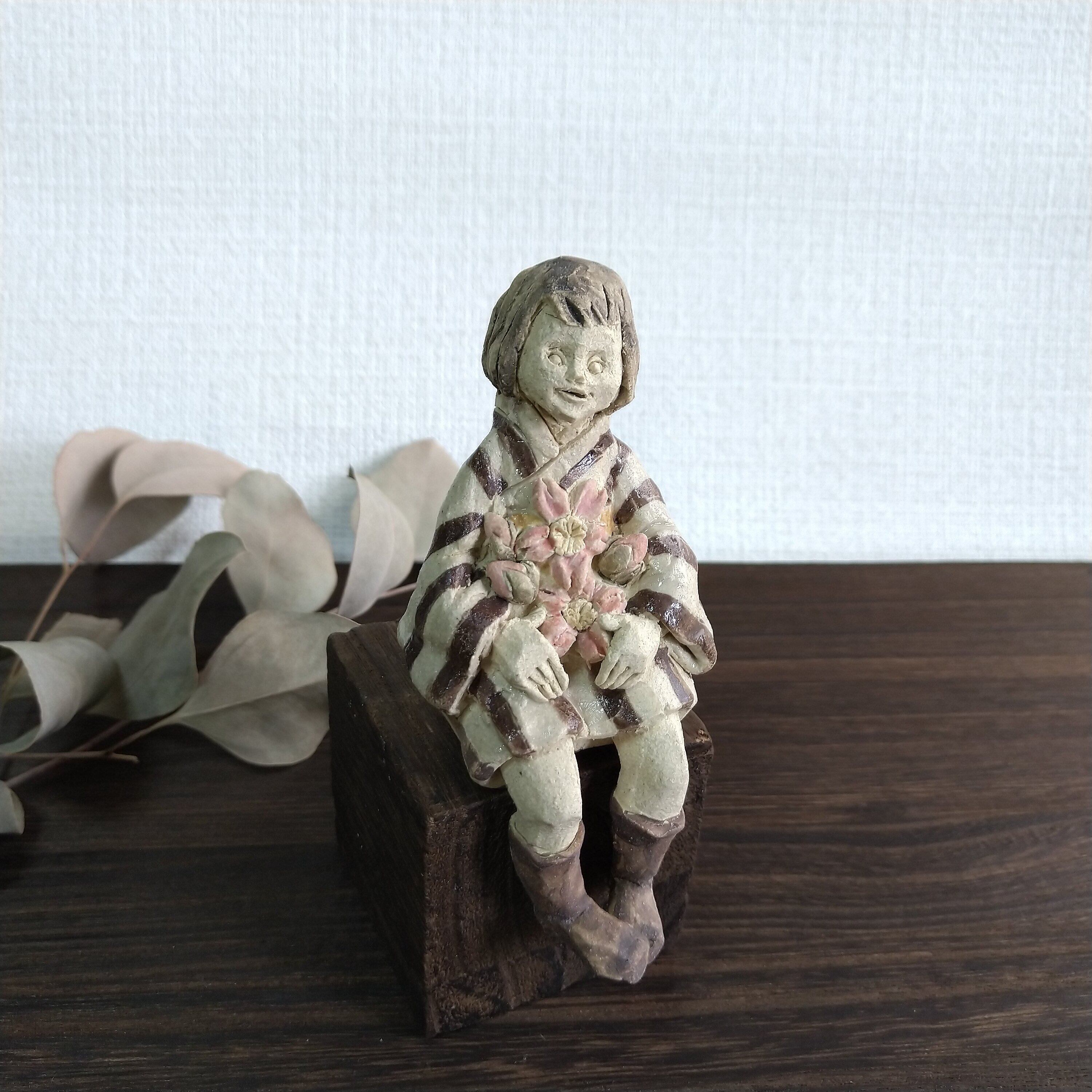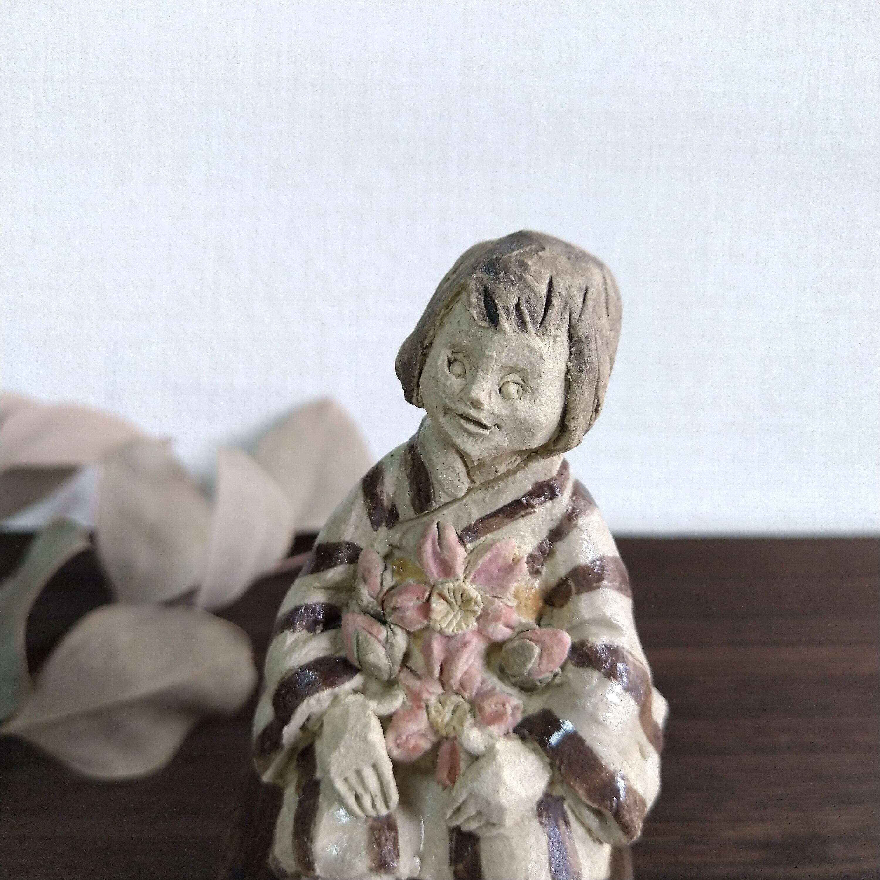 ひとりずつ手作りしている、てびねりの陶人形です。