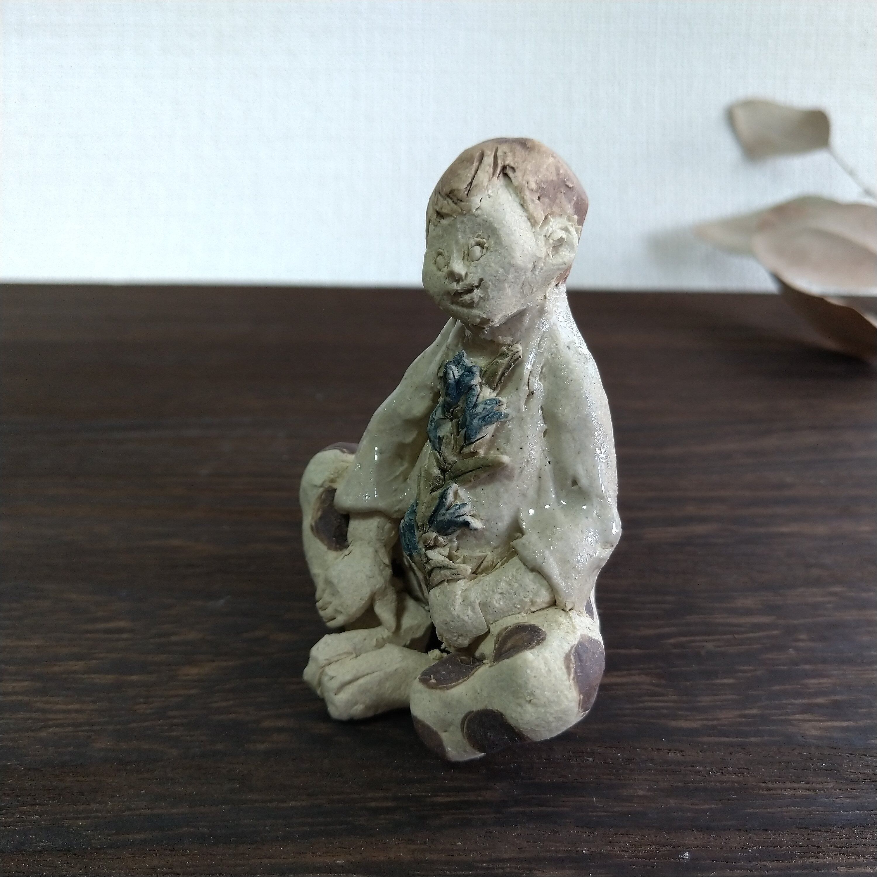衣装の一部分には薄く透明釉を施しているので、その部分は少し光沢があります。