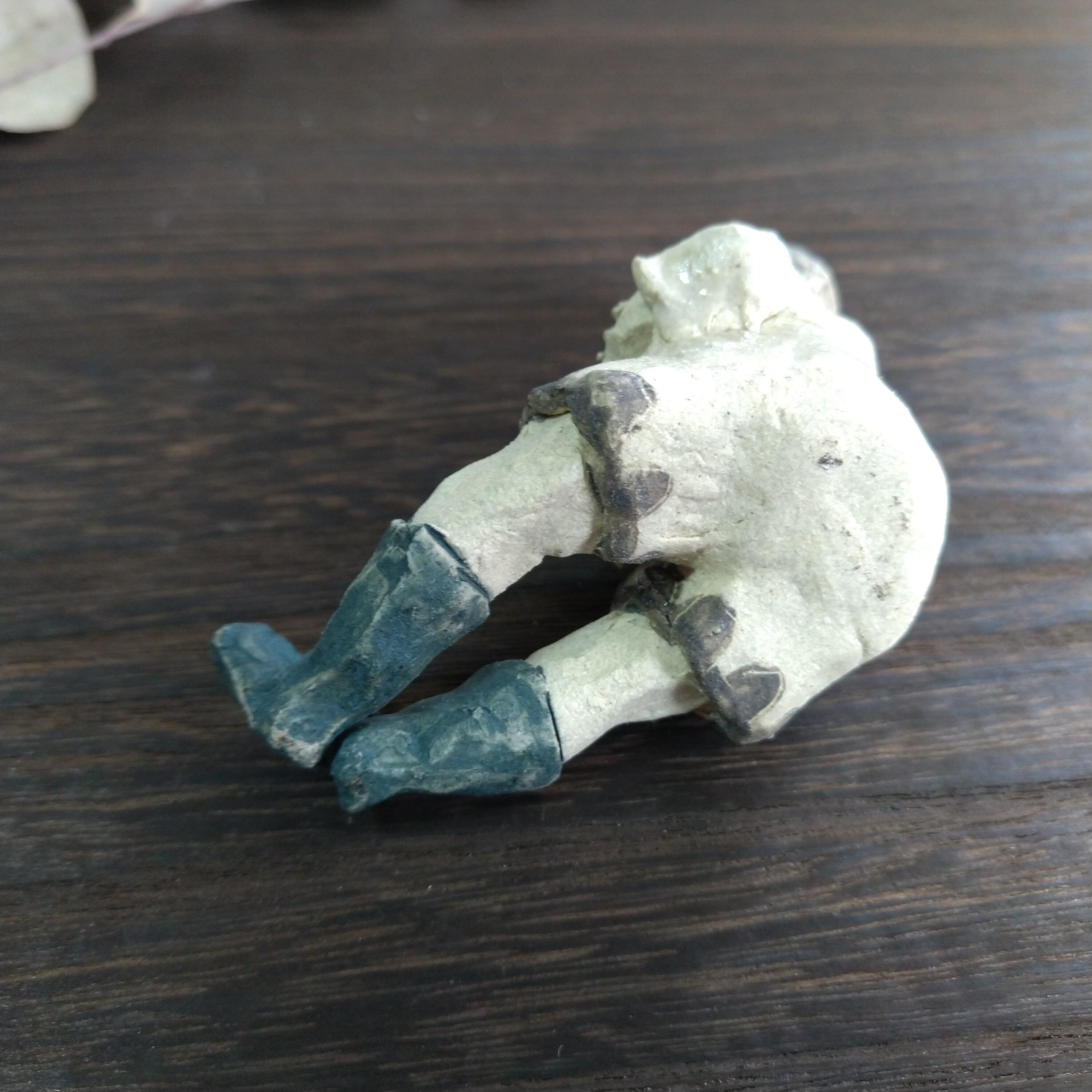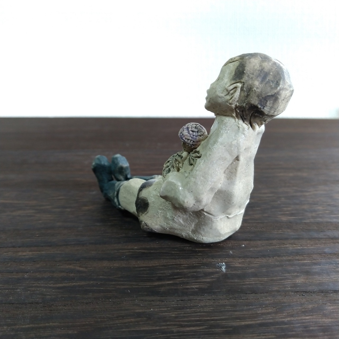 衣装の一部分には薄く透明釉を施しているので、その部分は少し光沢があります。