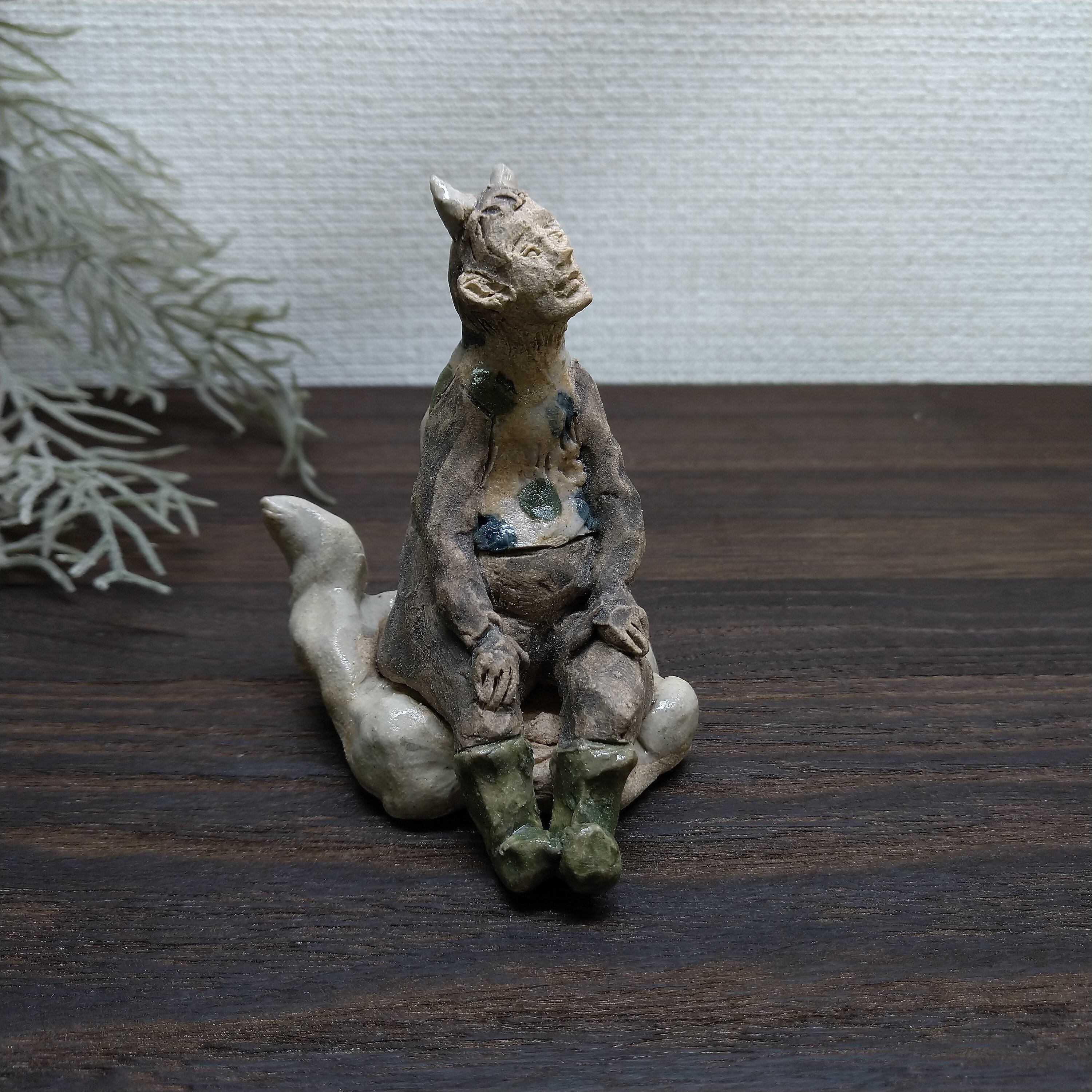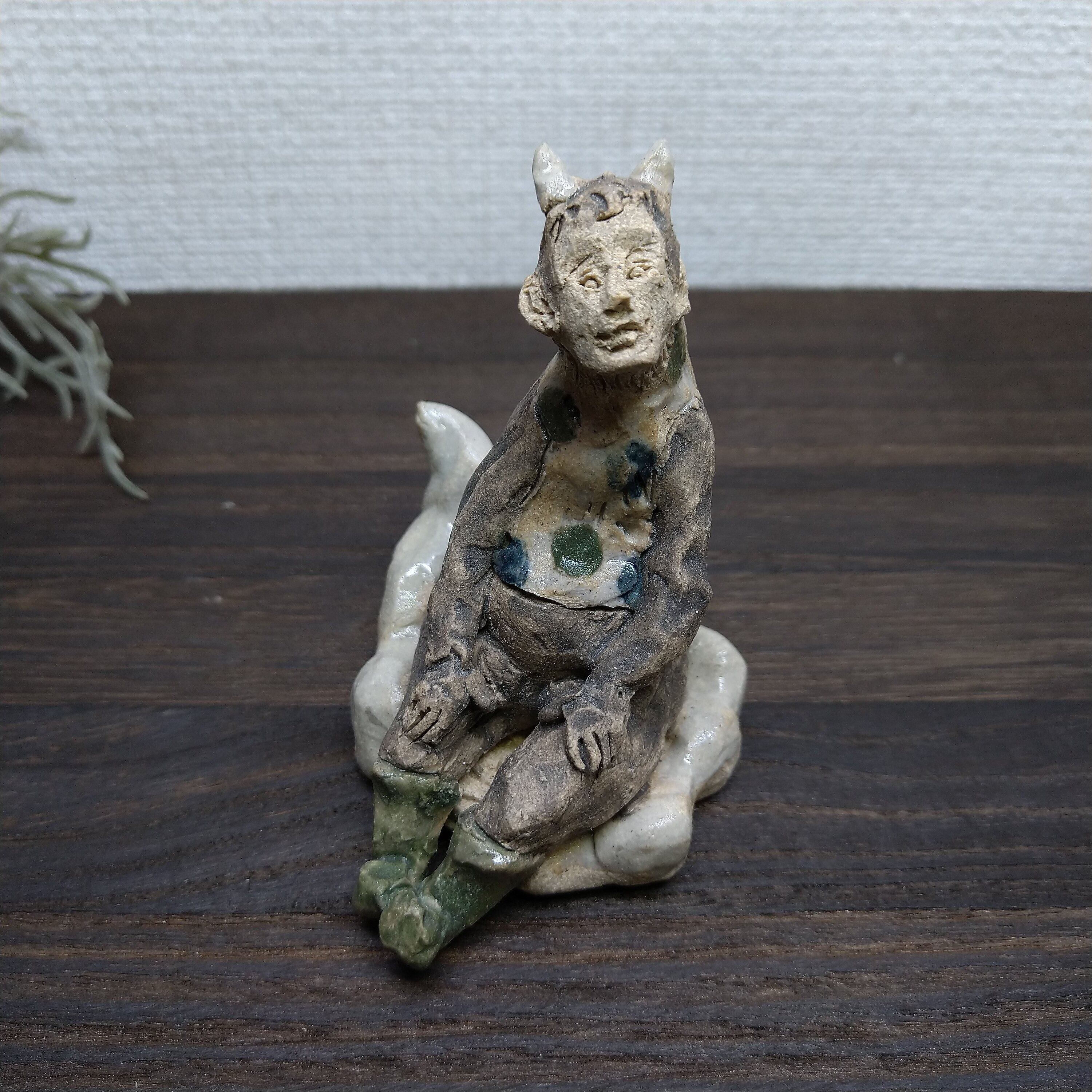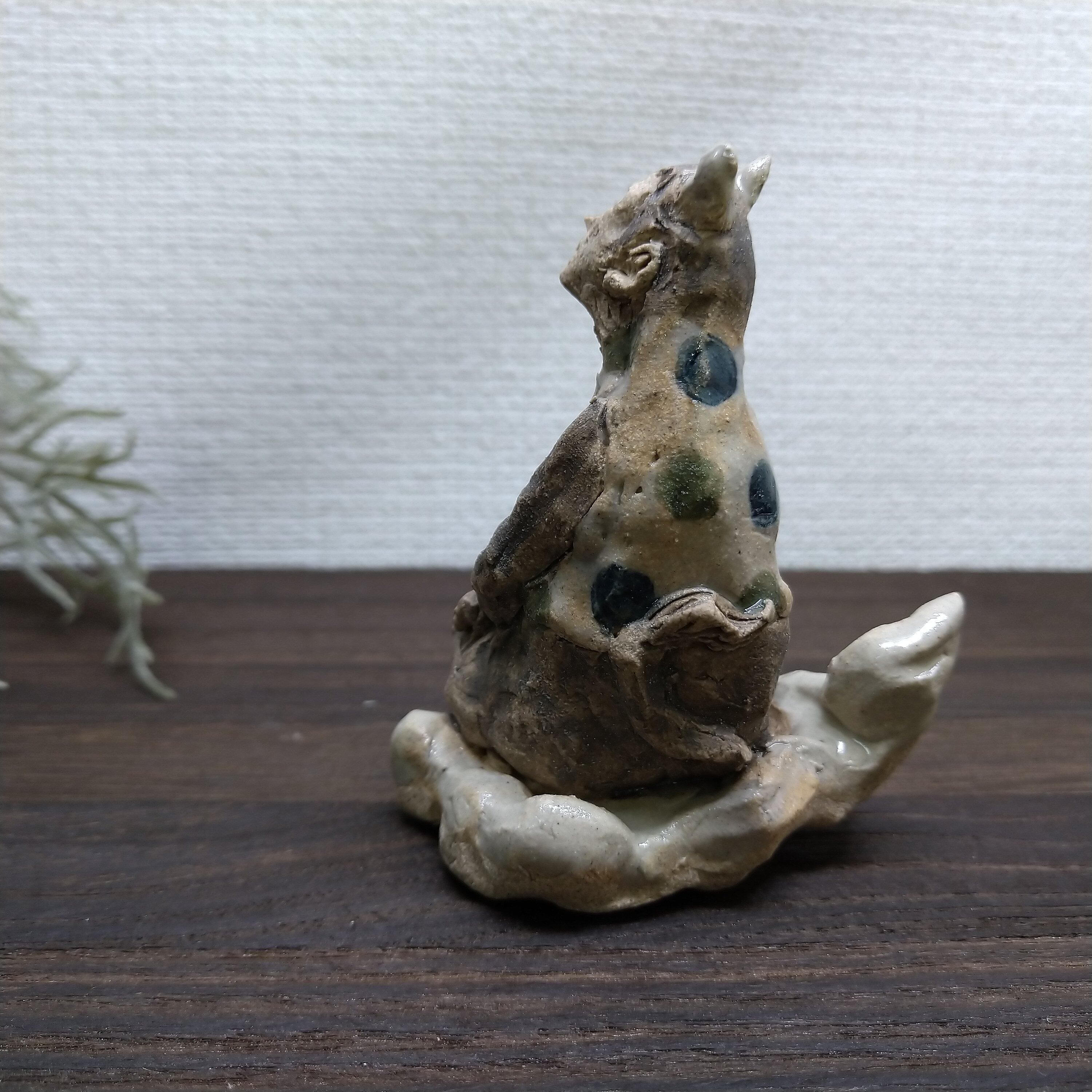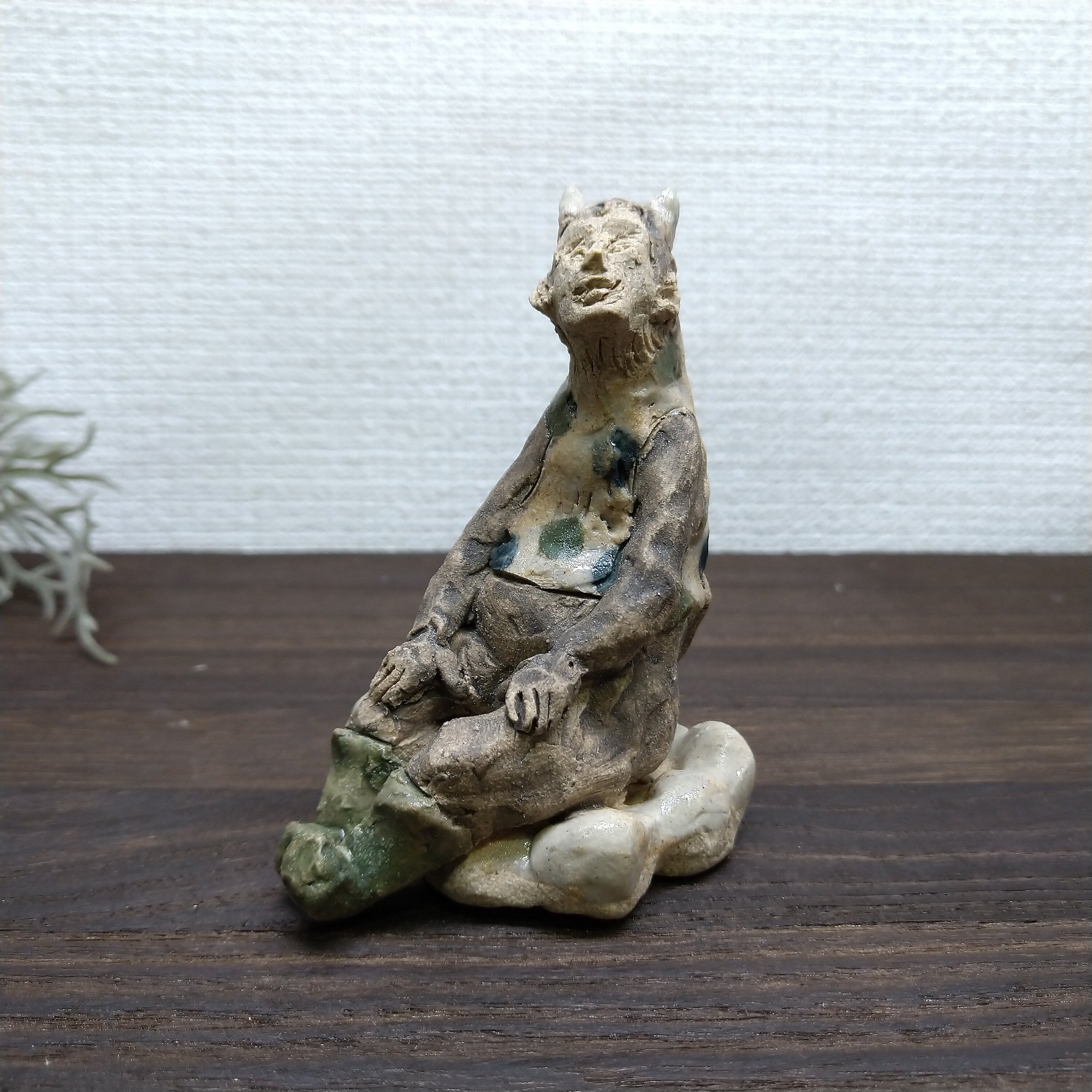 角・衣装の一部分には薄く透明釉を施しているので、その部分は少し光沢があります。