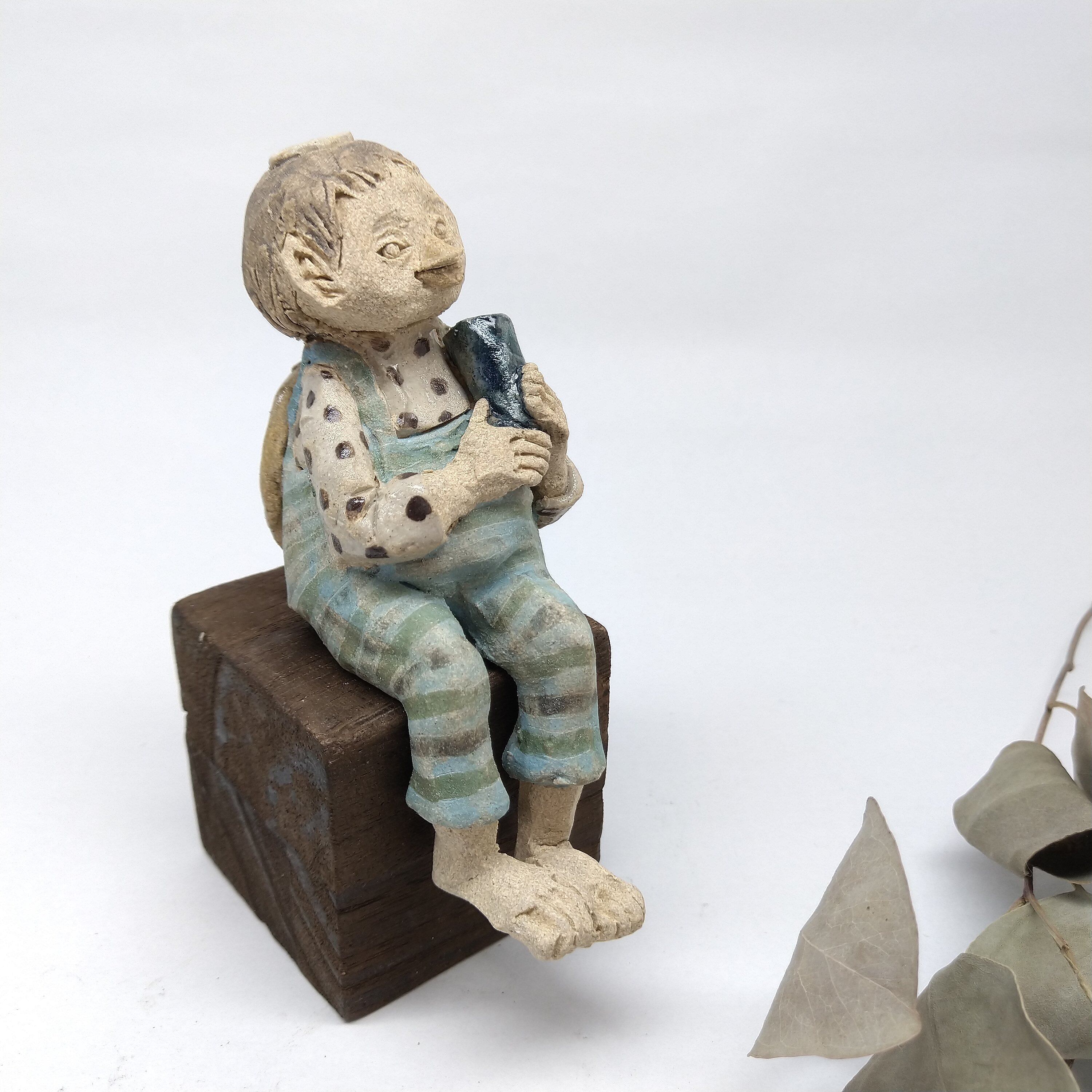 ひとりずつ手作りしている、てびねりの陶人形です。