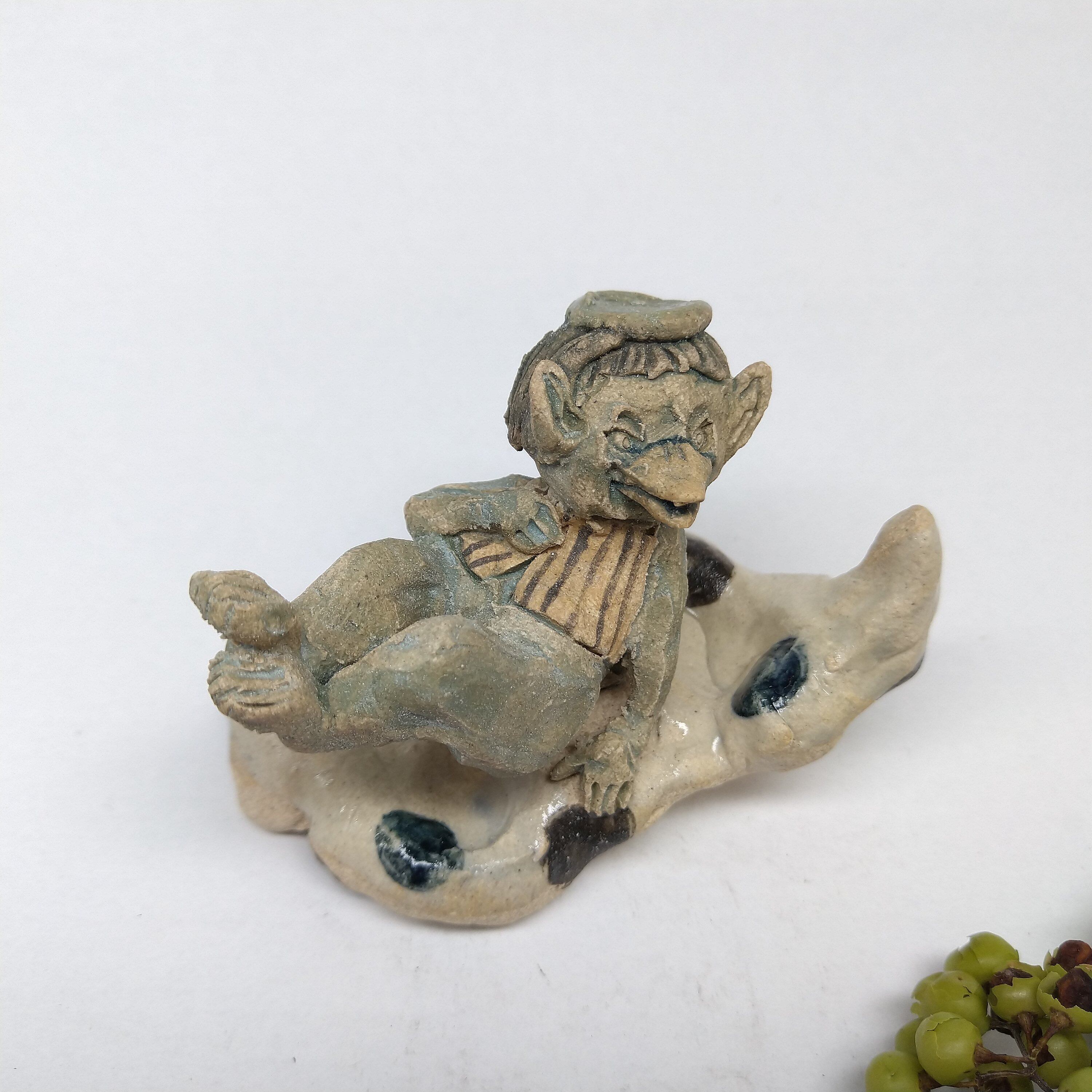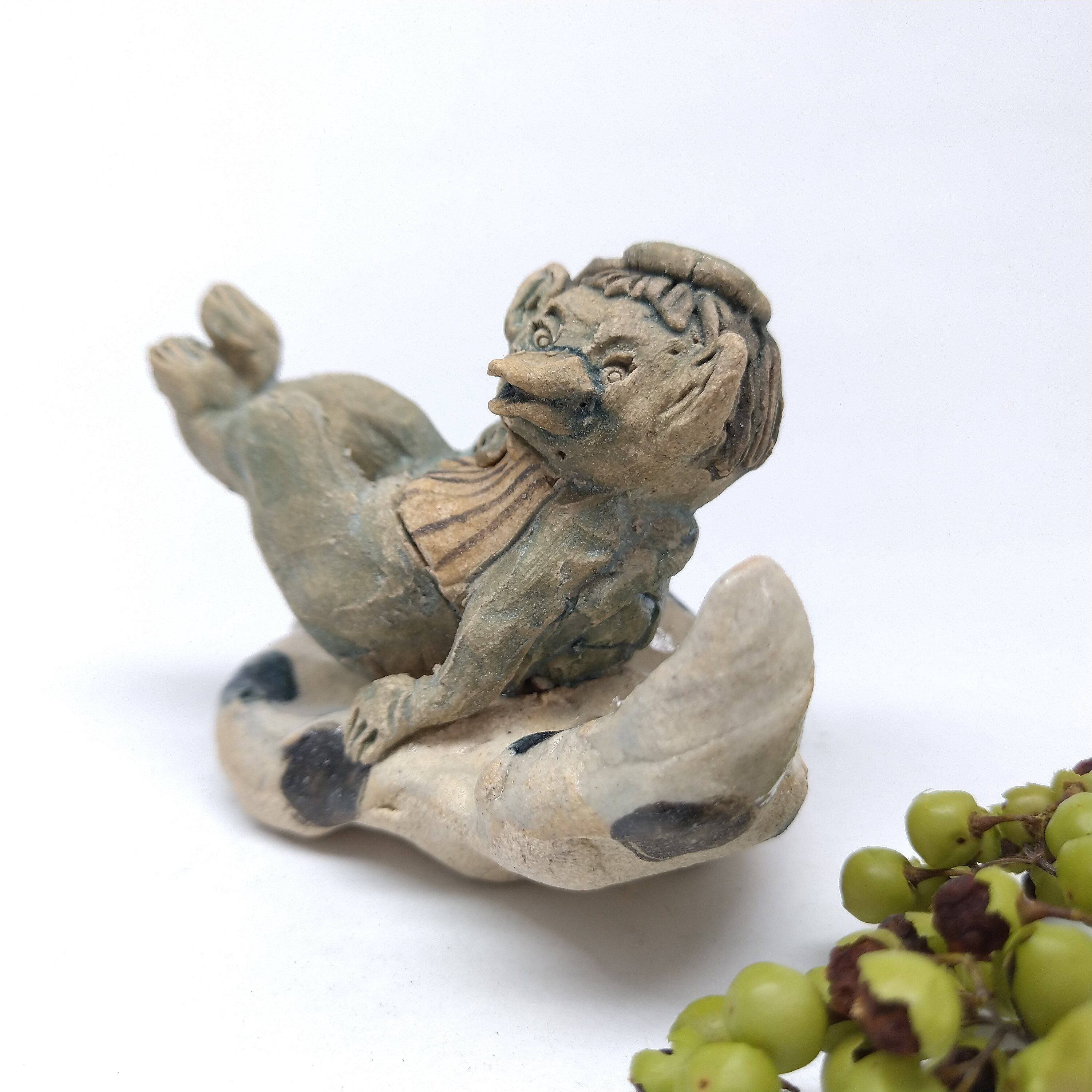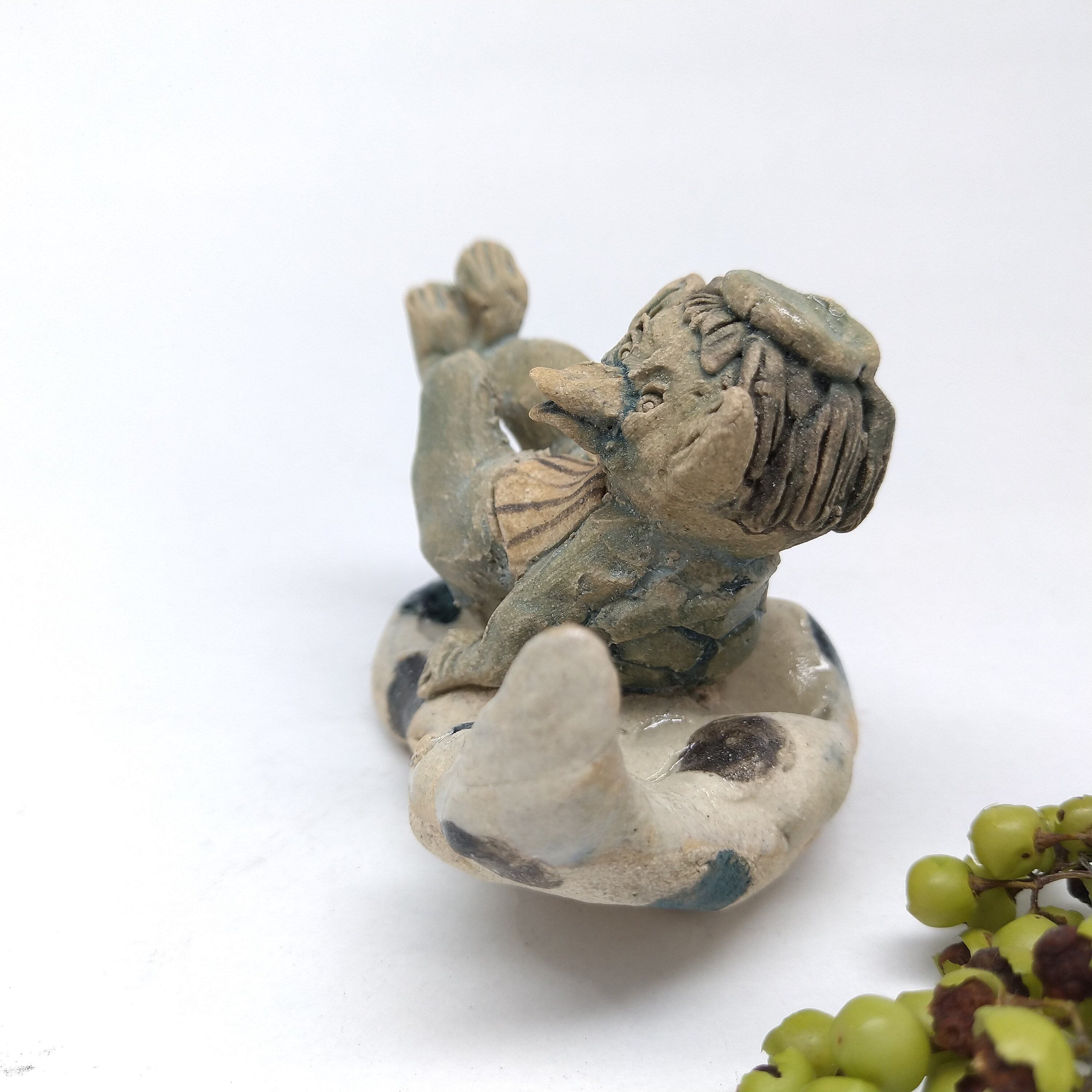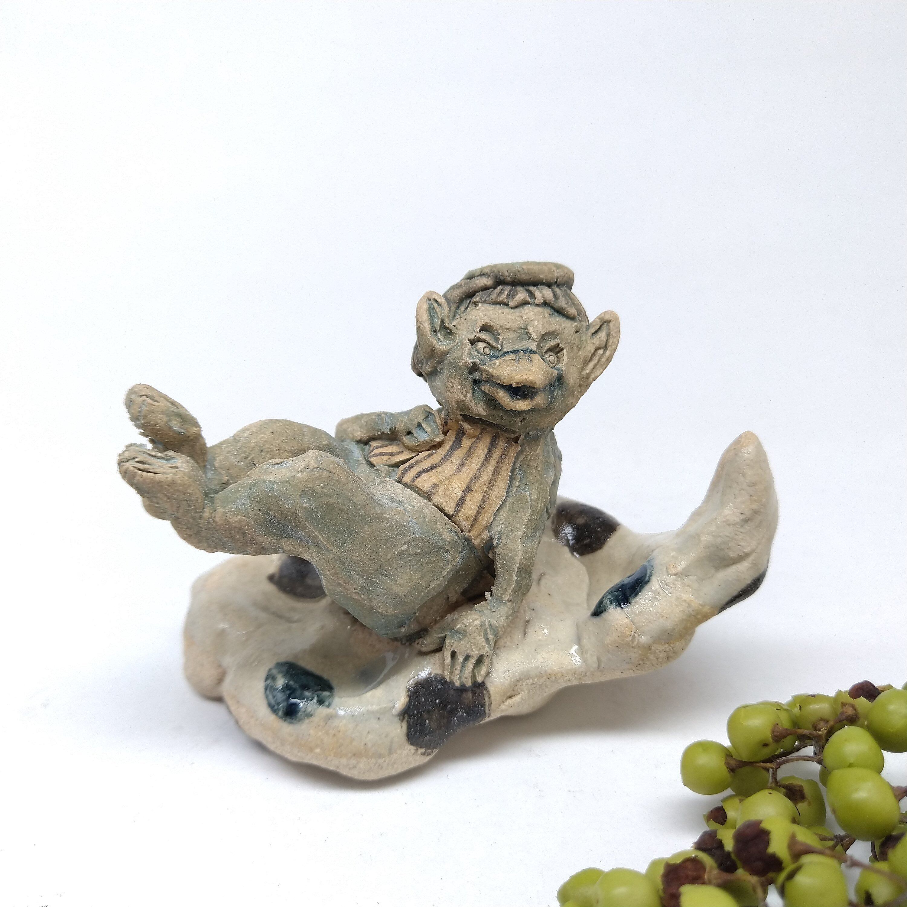 雲形の土台にごろりんとしている、ちびっこ河童です。