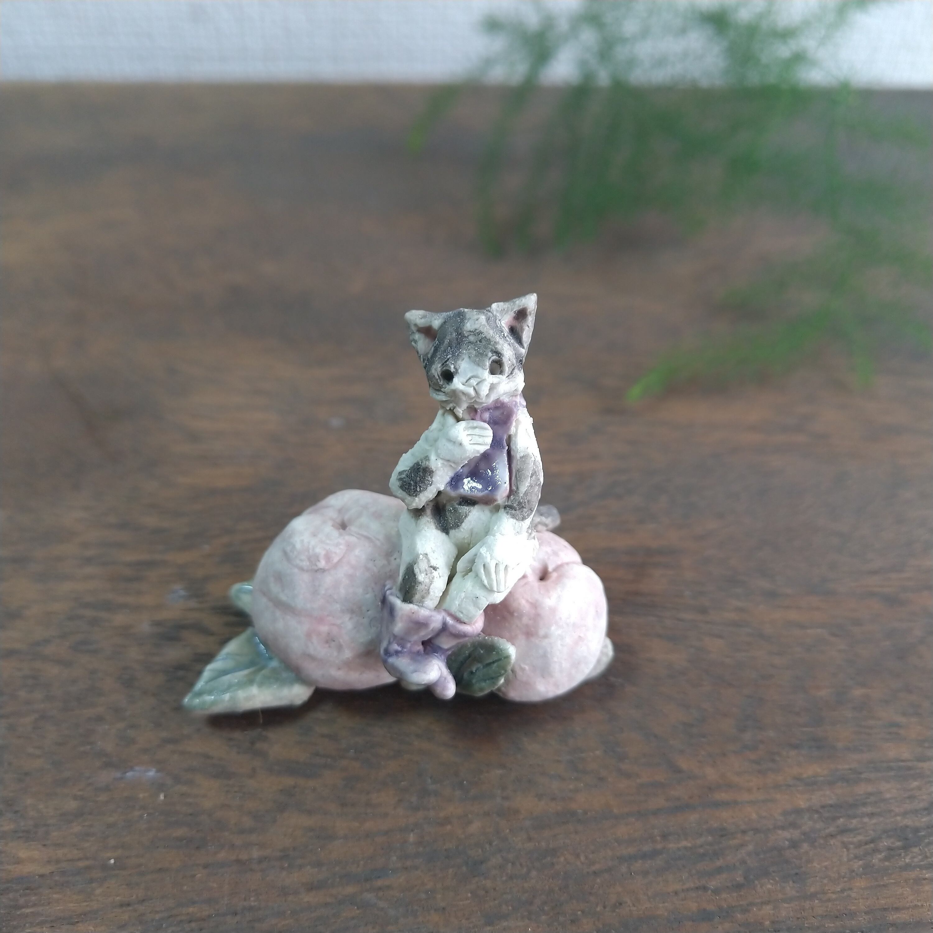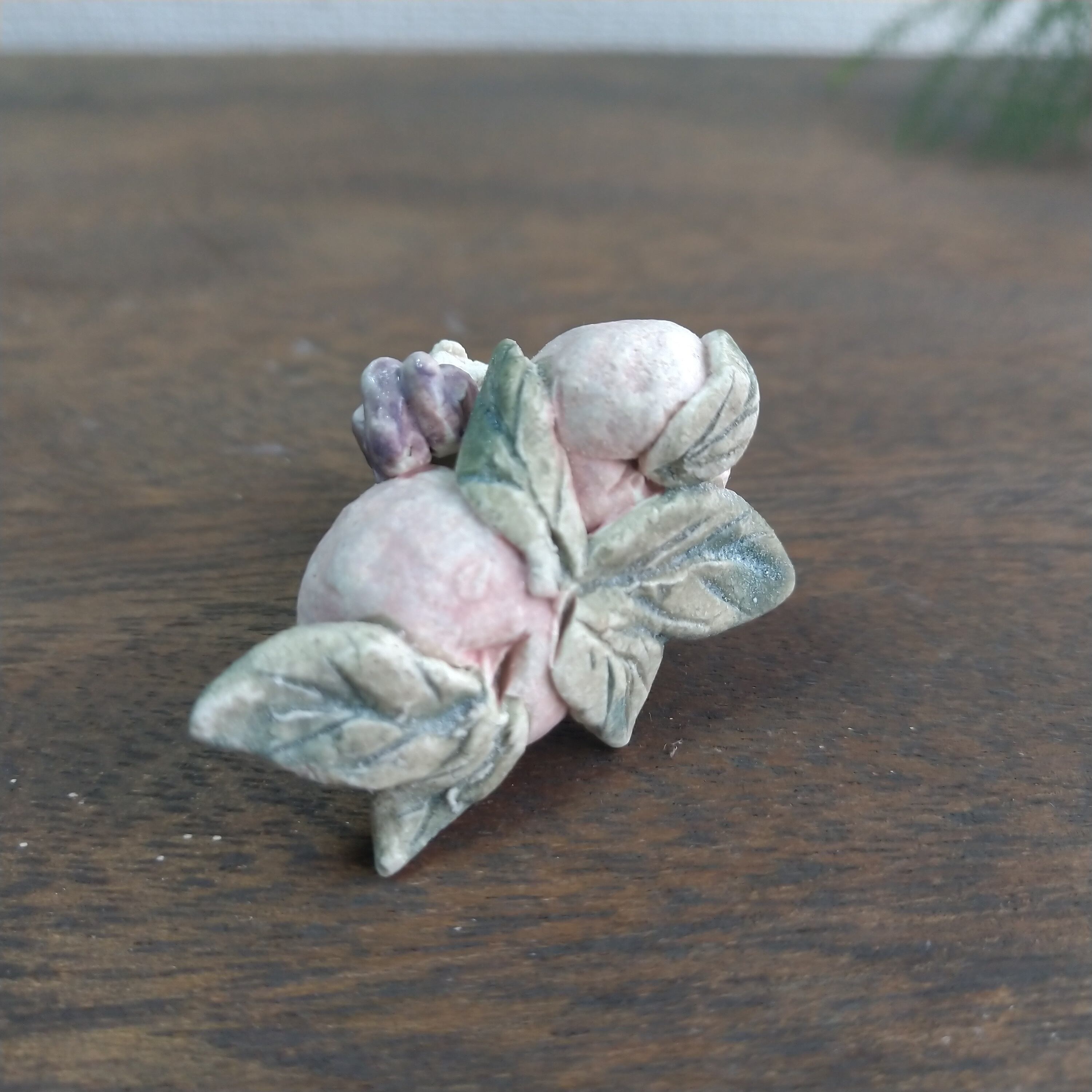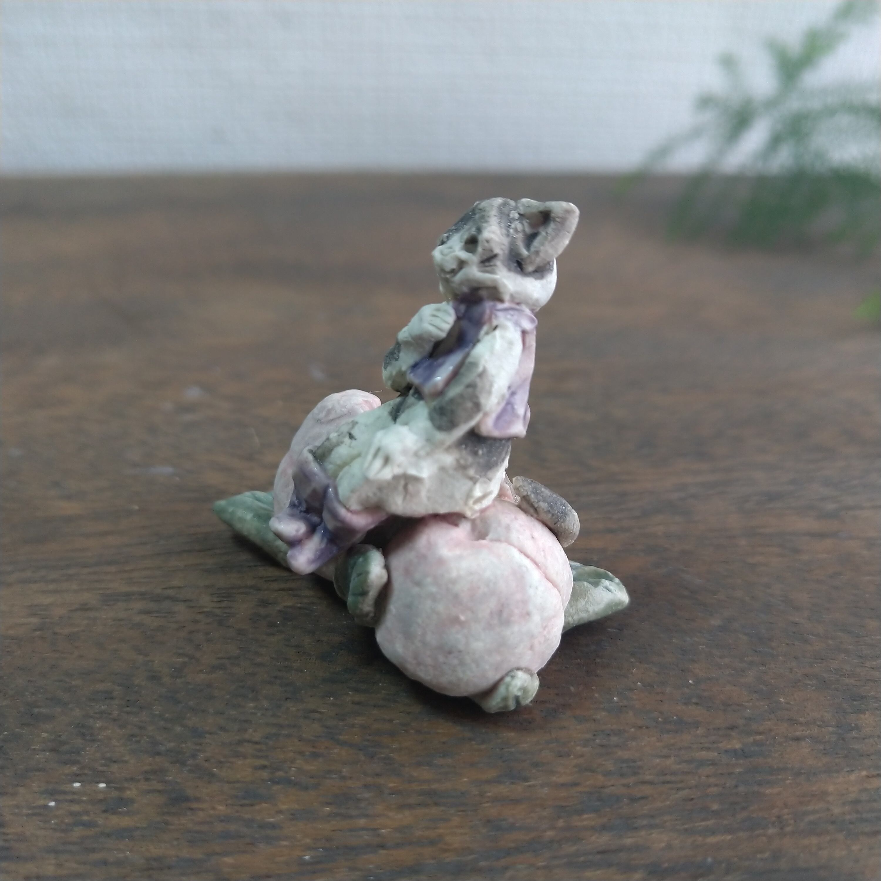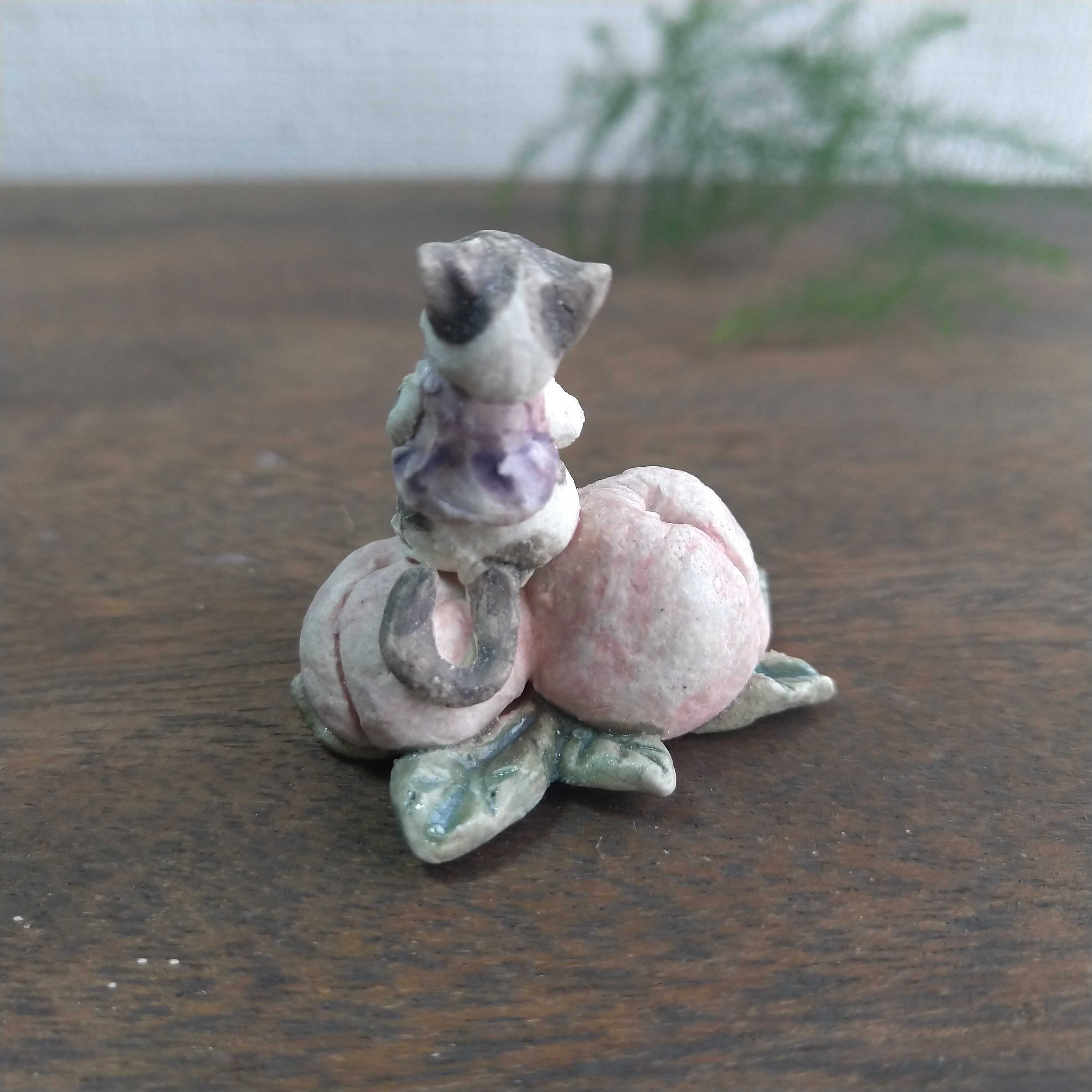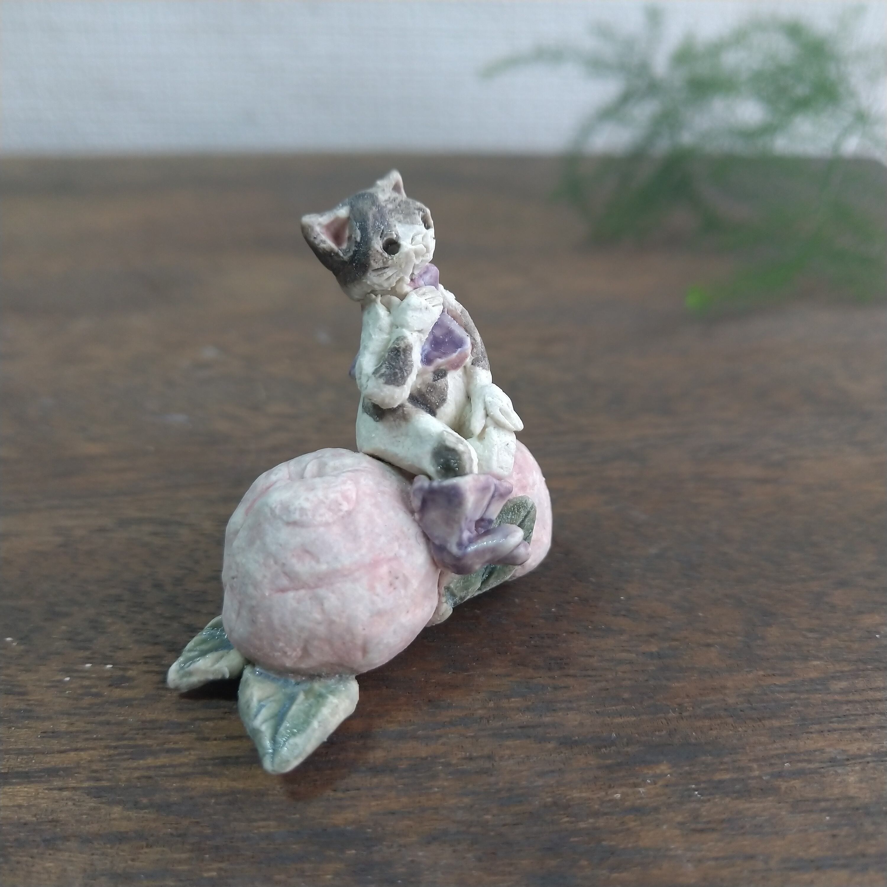 服や葉の一部分に薄く透明釉を施しているので、その部分は少し光沢があります。