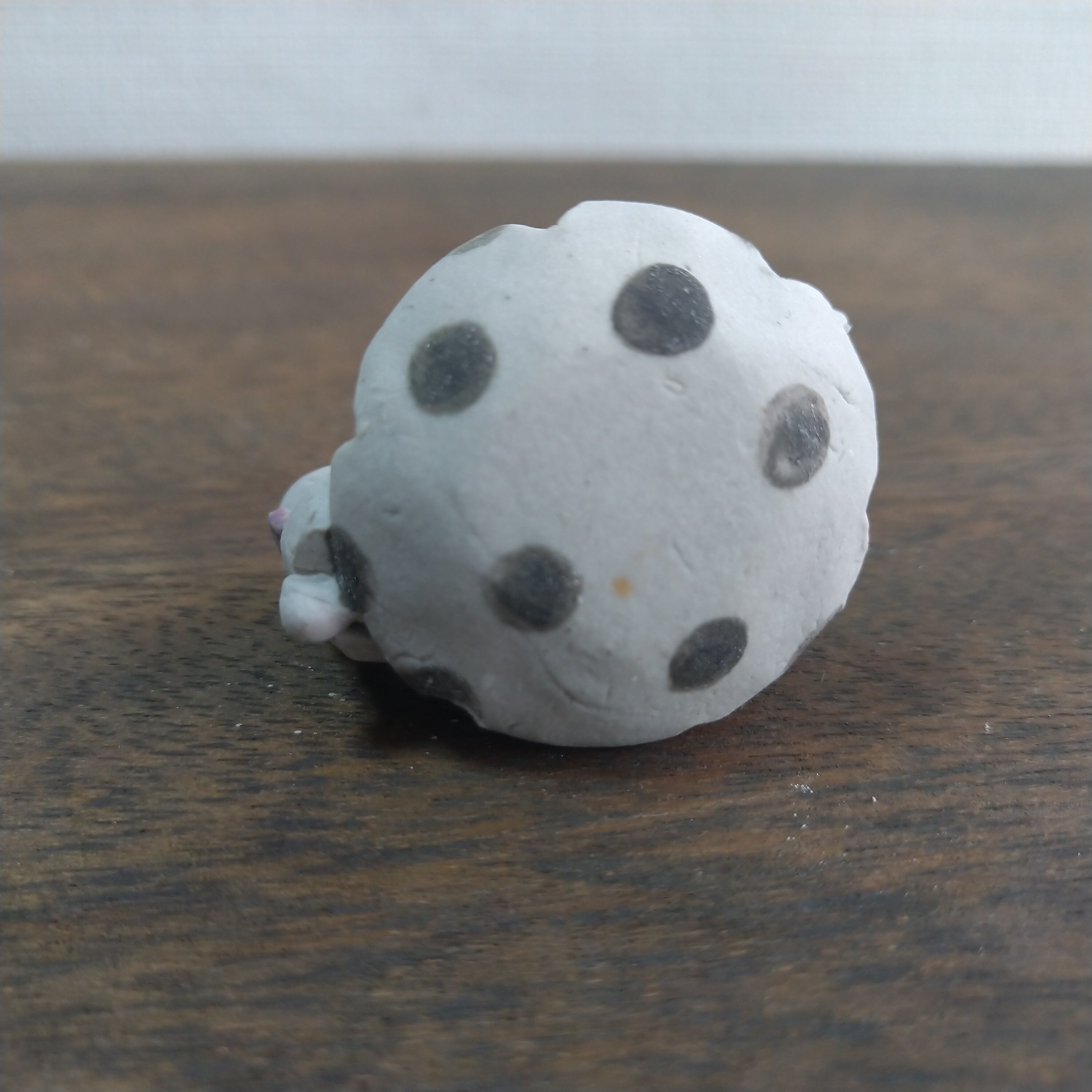 服やカップの一部分に薄く透明釉を施しているので、その部分は少し光沢があります。
