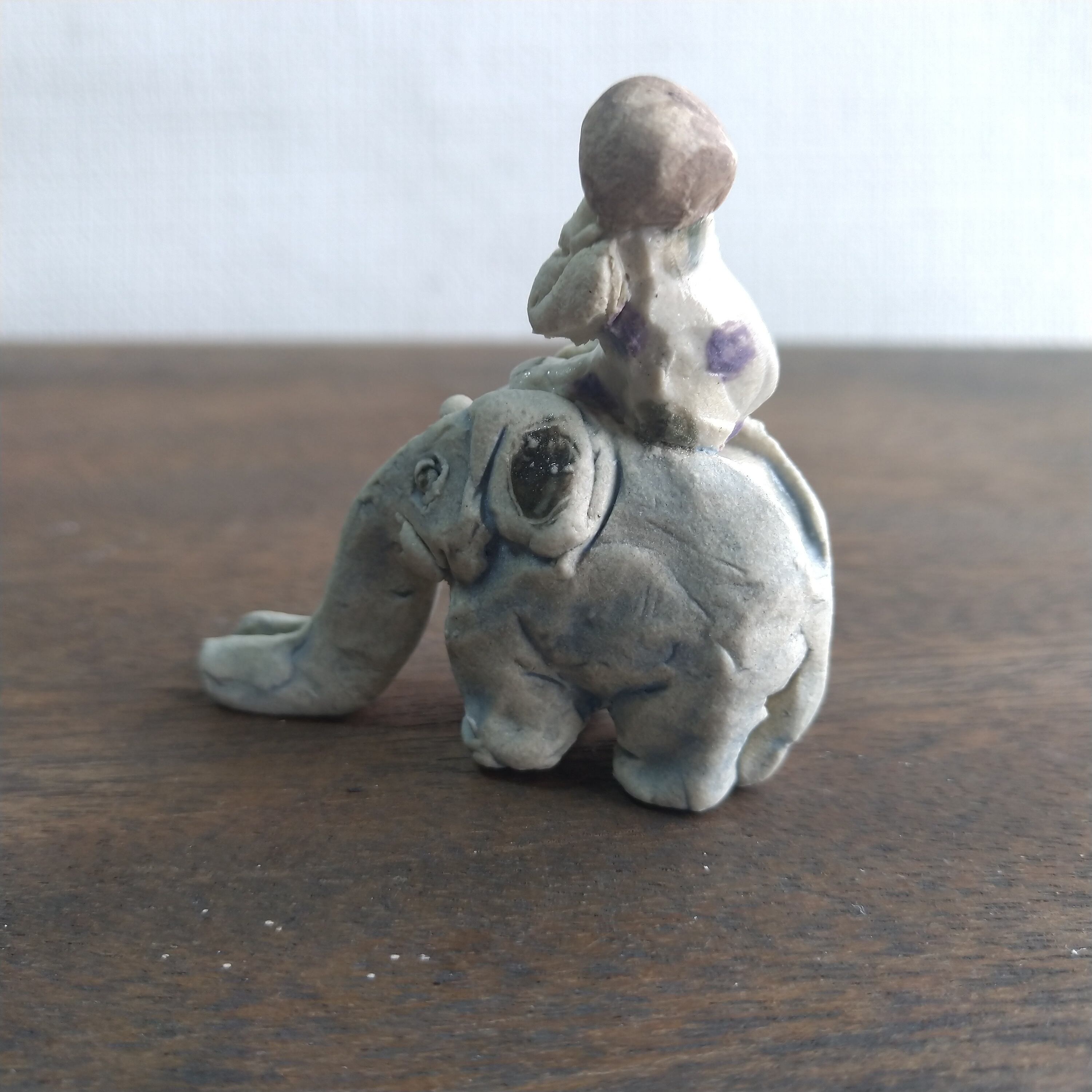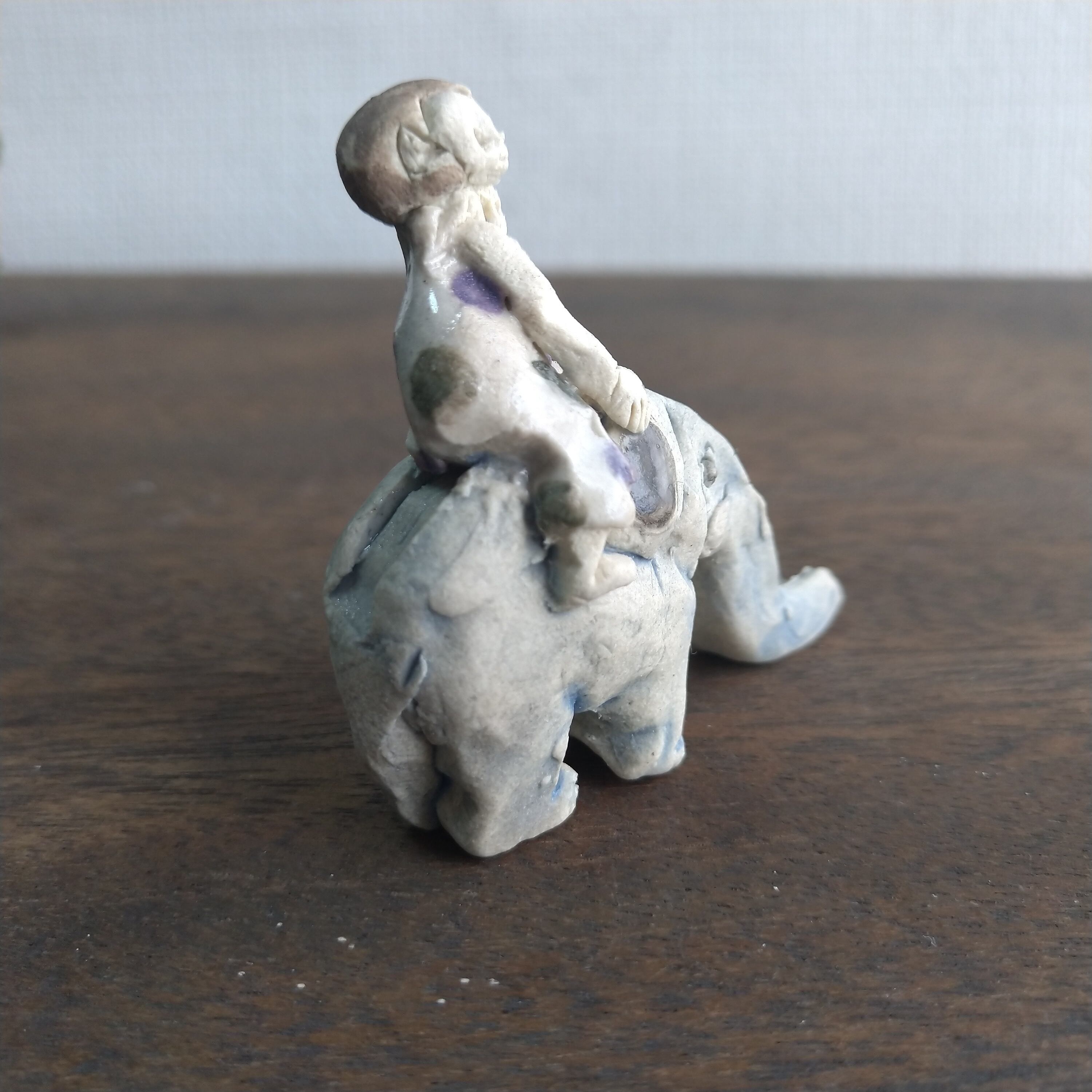 服と滑り台の一部分に薄く透明釉を施しているので、その部分は少し光沢があります。