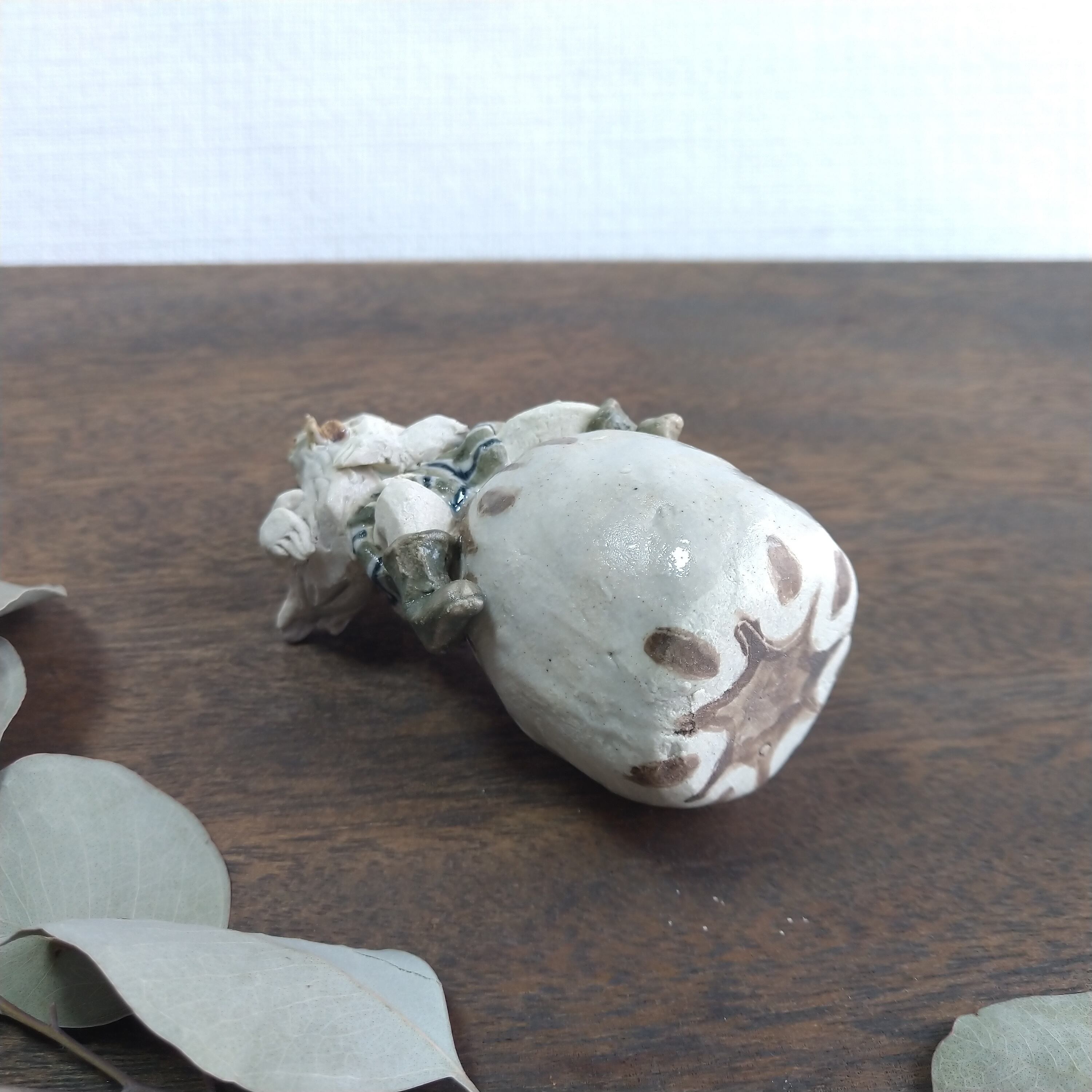 土台や服の一部分には薄く透明釉を施しているので、その部分は少し光沢があります。