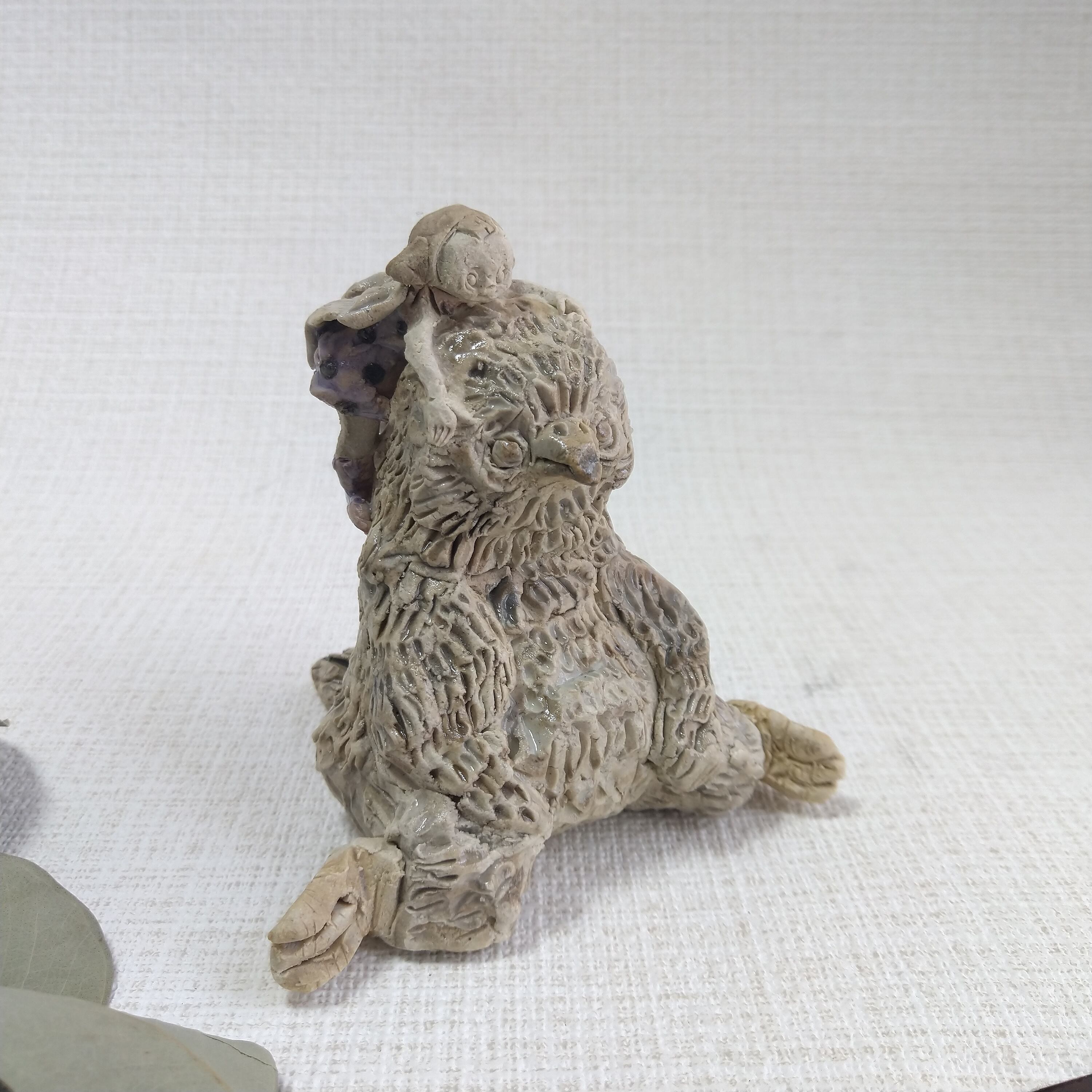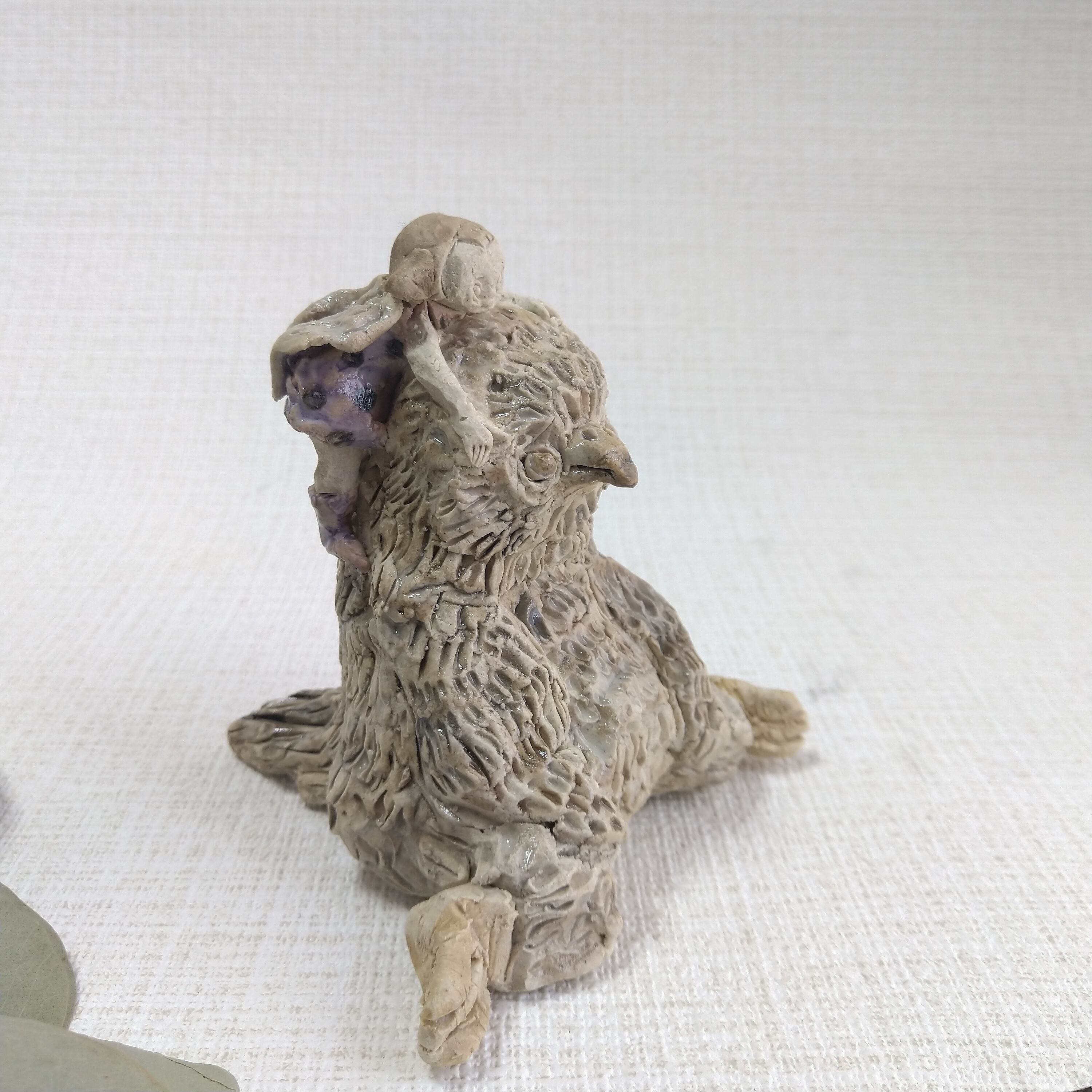 鷹の身体や羽根部分には薄く透明釉を施しているので、その部分は少し光沢があります。