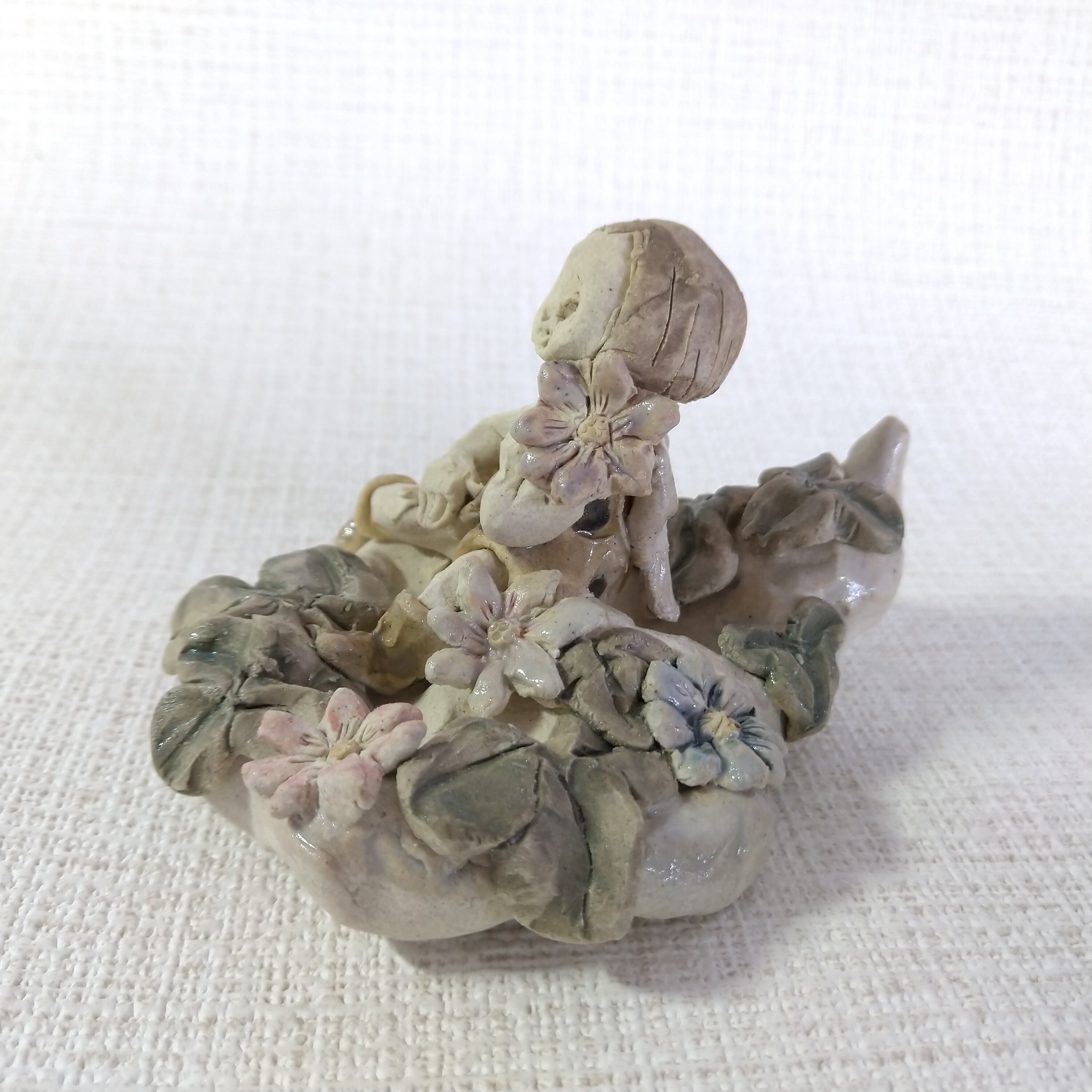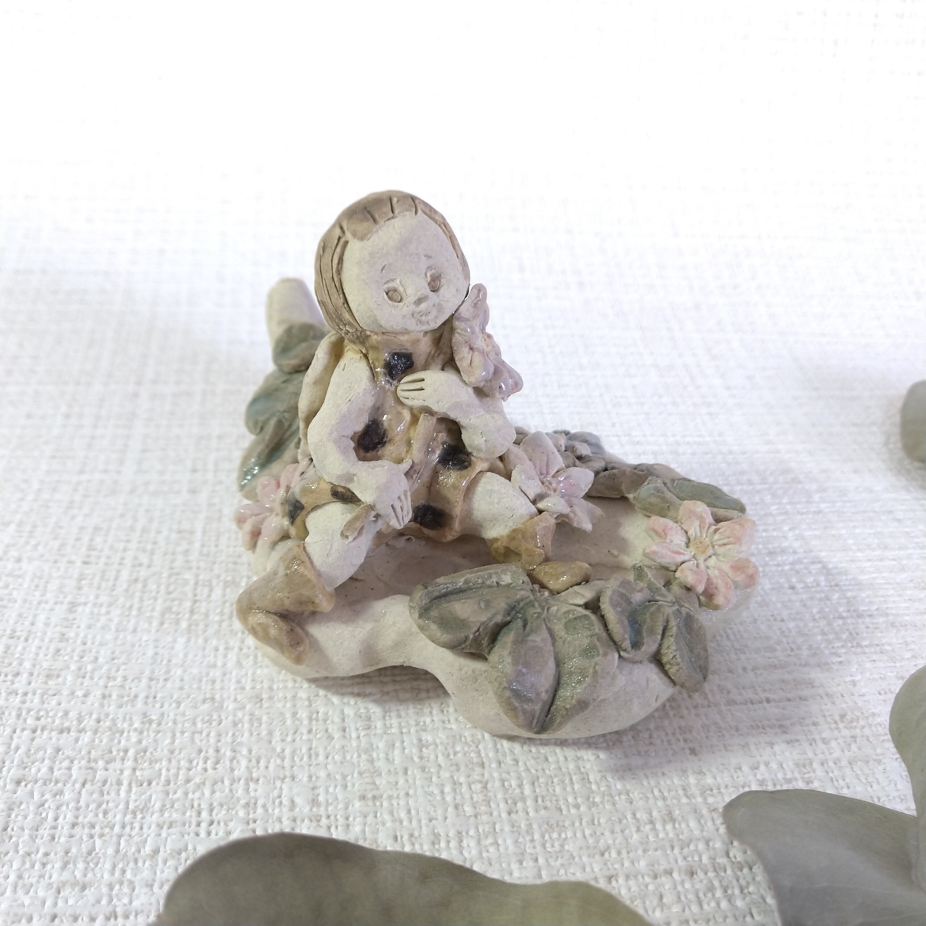 ひとりずつ手作りしている、てびねりの陶人形です。