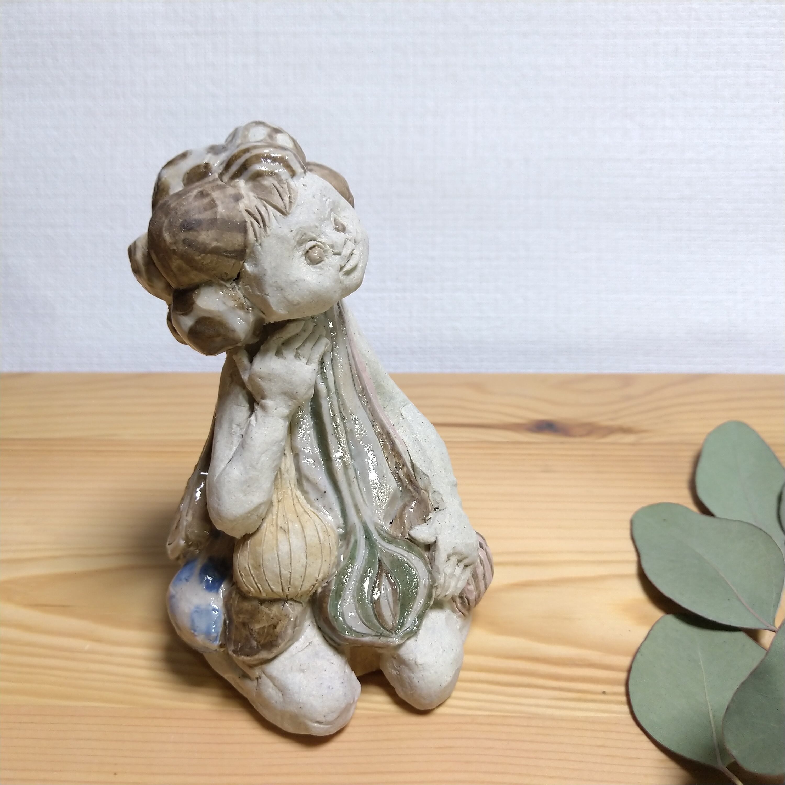 【めぐる】には「まわって再びもとに返る」という意味もあって、普段口にしている野菜や果物たちの、種から成長して実を結び、また次の生命を繋いでいく=【めぐる】カタチを陶人形という形で表現してみました。
