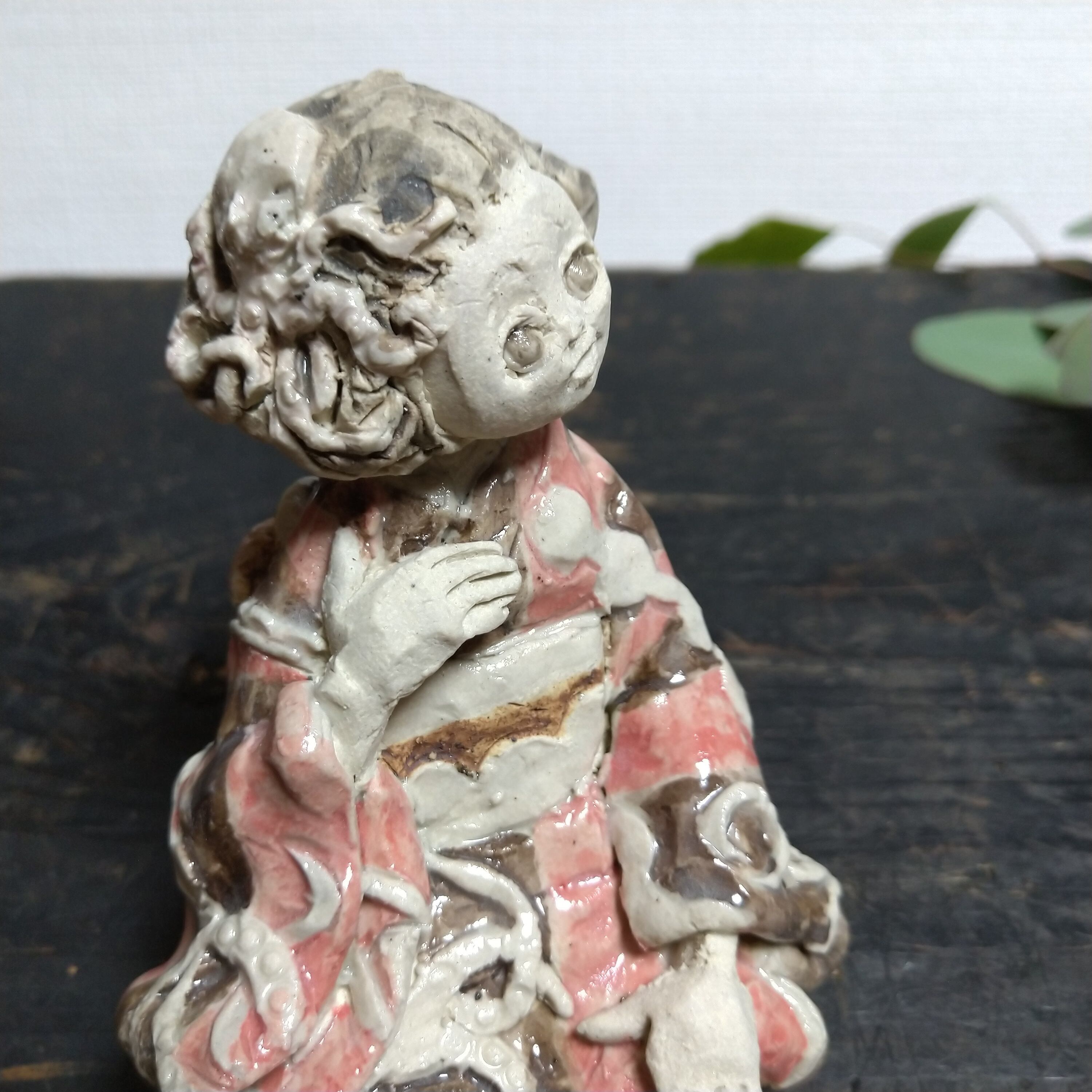 ひとりずつ手作りしている、てびねりの陶人形です。