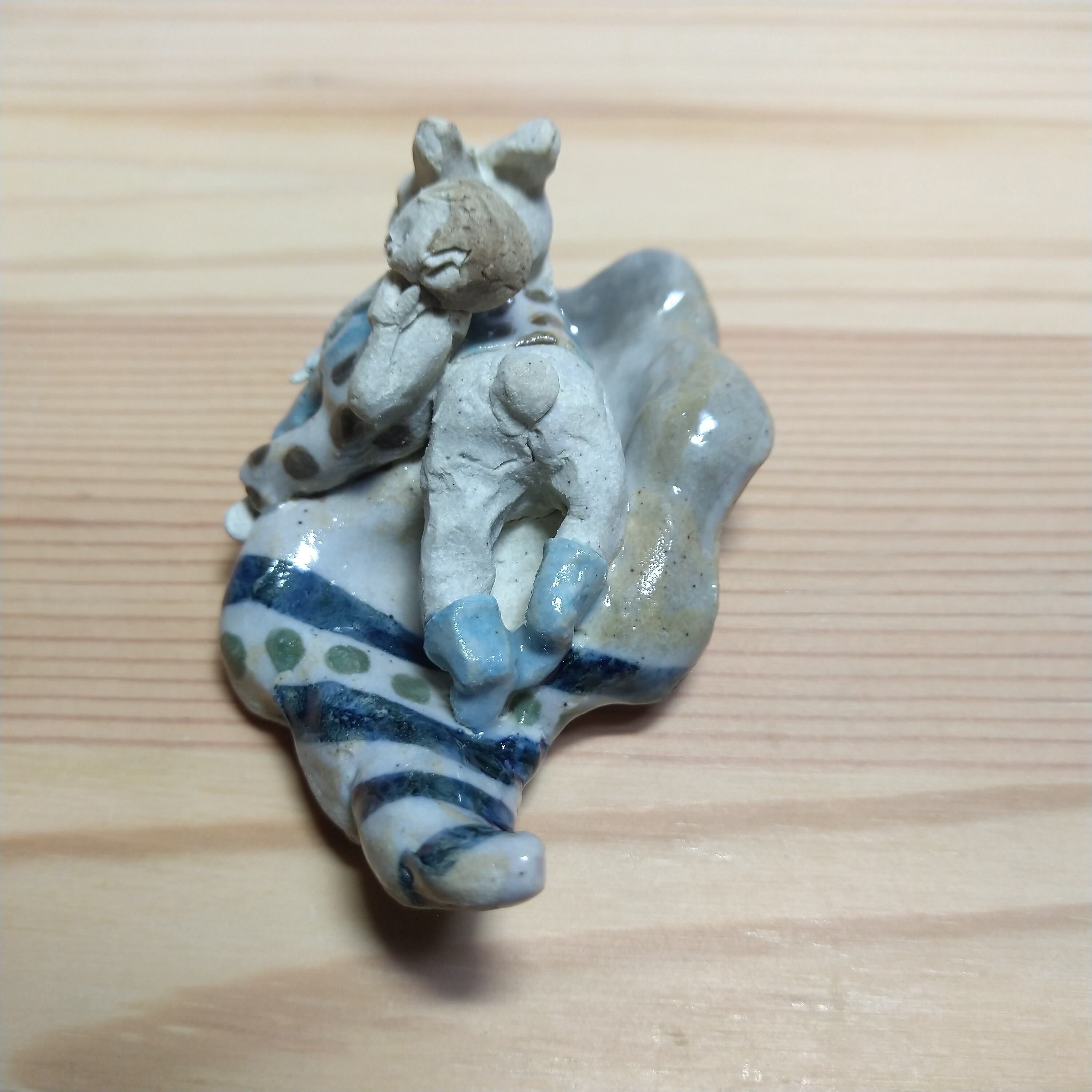 服と土台の一部分にポイントで薄く透明釉をかけているので、その部分は少し光沢があります。