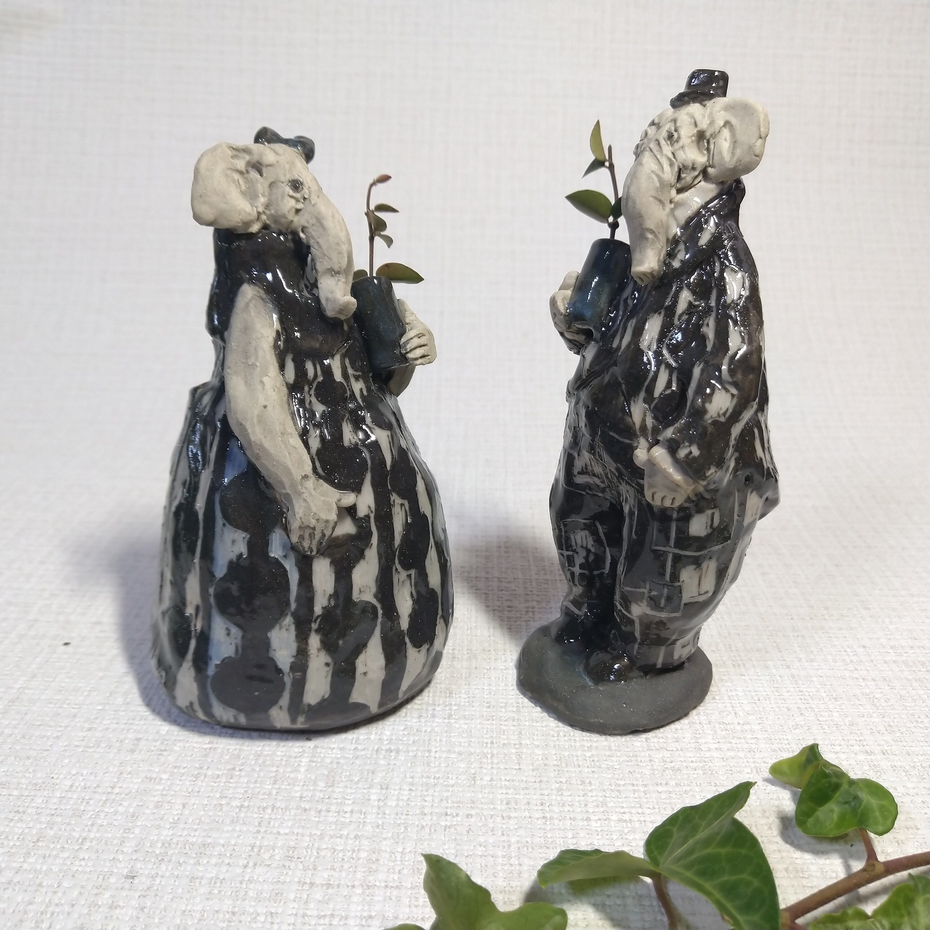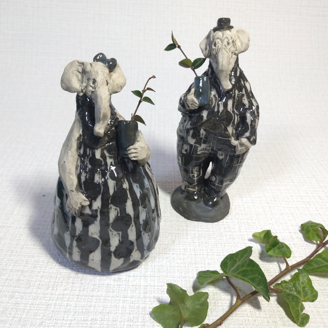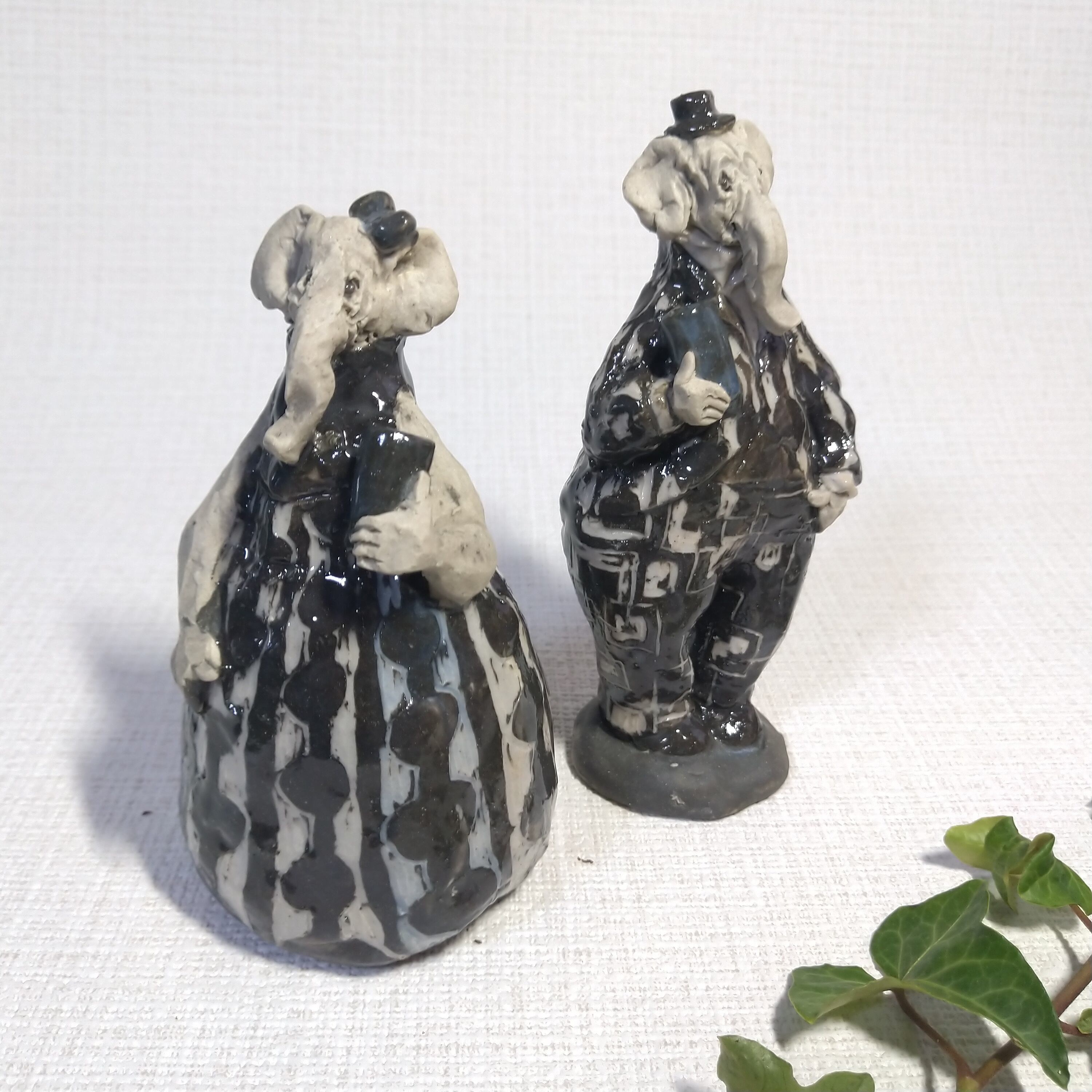 ひとつずつ手作りしている、てびねりの器と陶人形です。