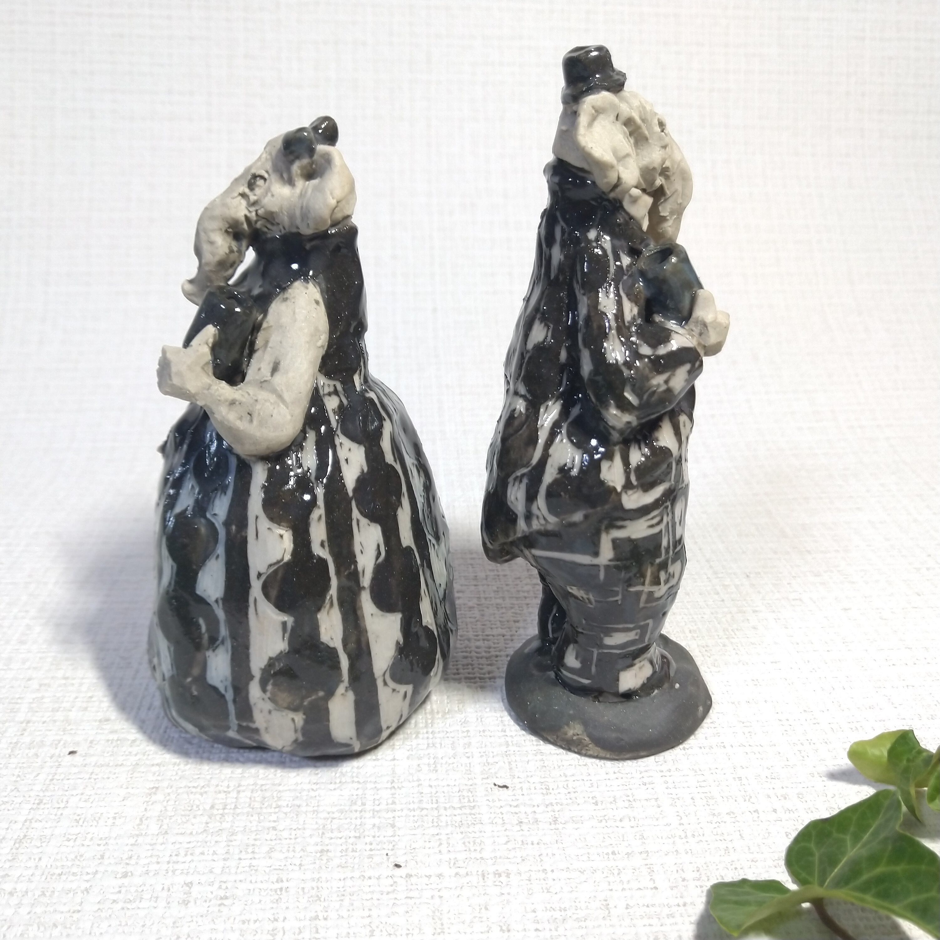 瞳や衣装の一部分には薄く透明釉を施しているので、その部分は少し光沢があります。