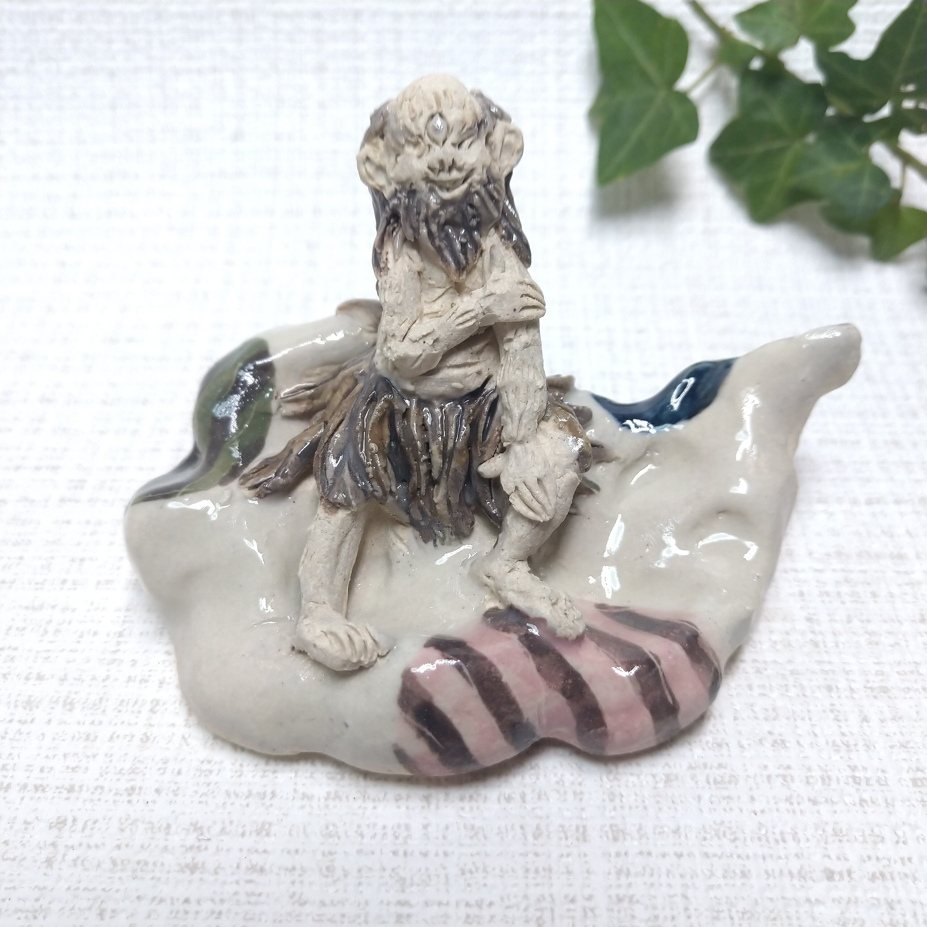 手のひらにのるサイズの雲形の土台の上に、様々な妖怪を制作してみました。
