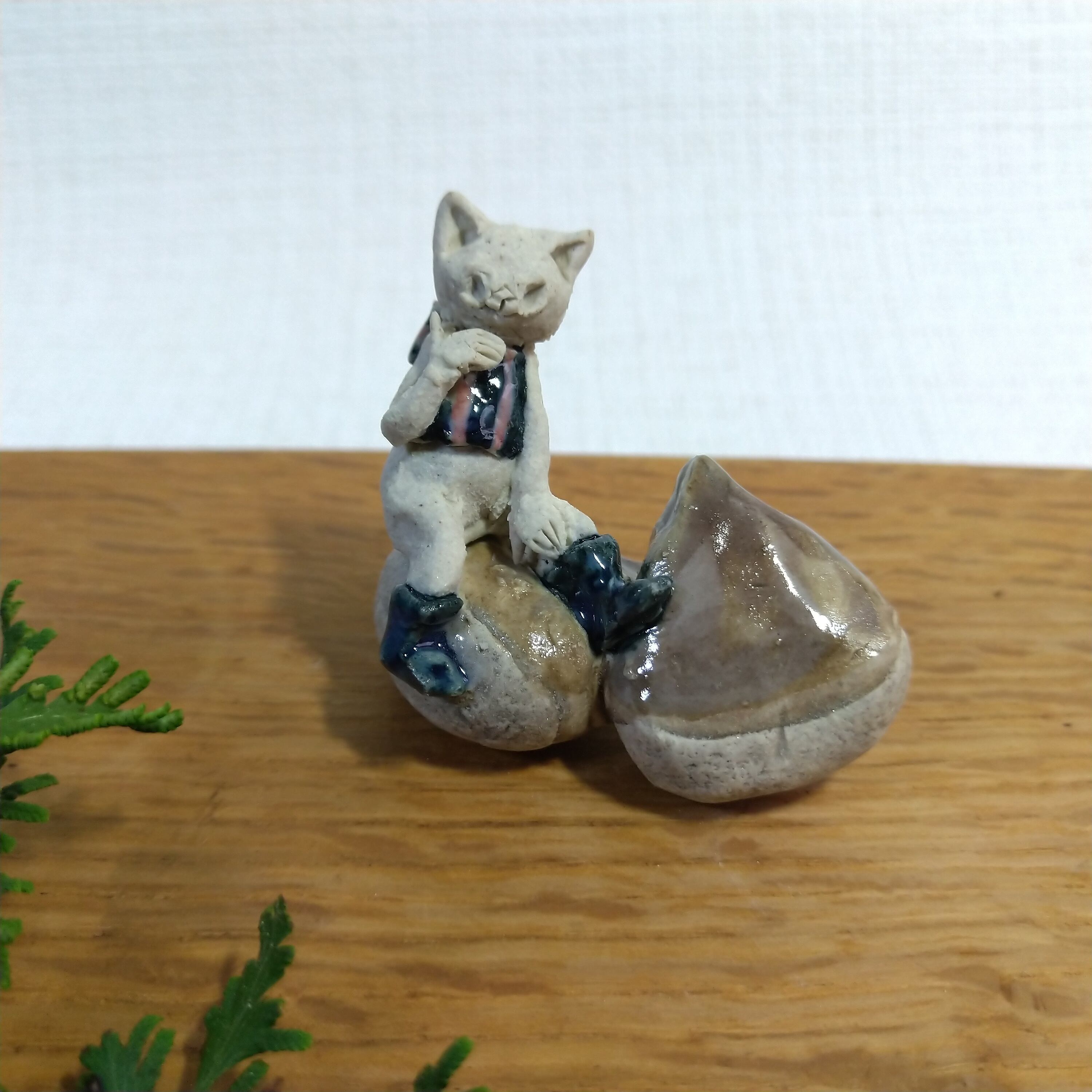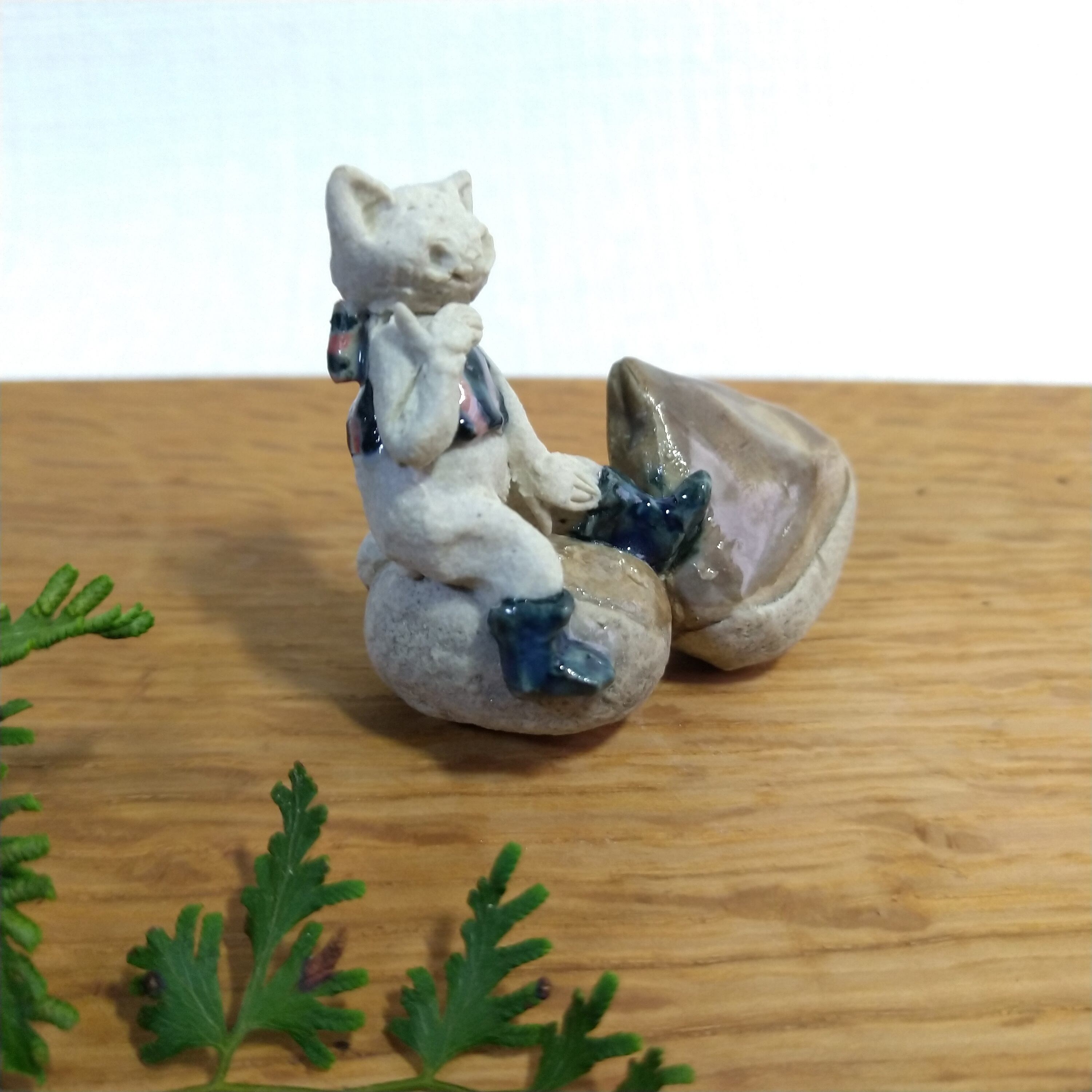 小さな栗とちびネコさんの組み合わせです。