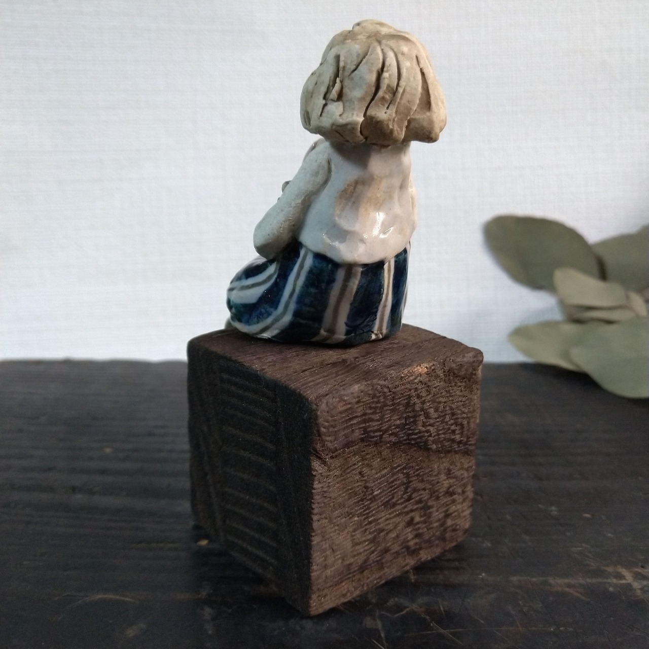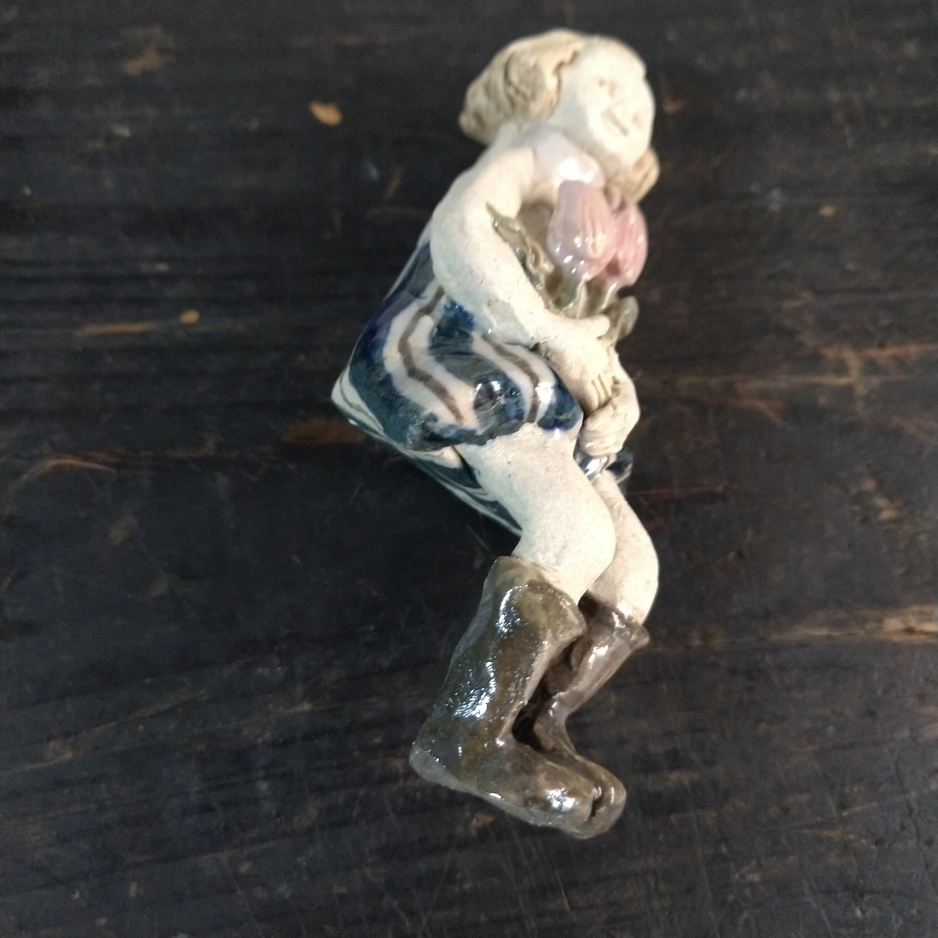 衣装や花の一部分には薄く透明釉を施しているので、その部分は少し光沢があります。