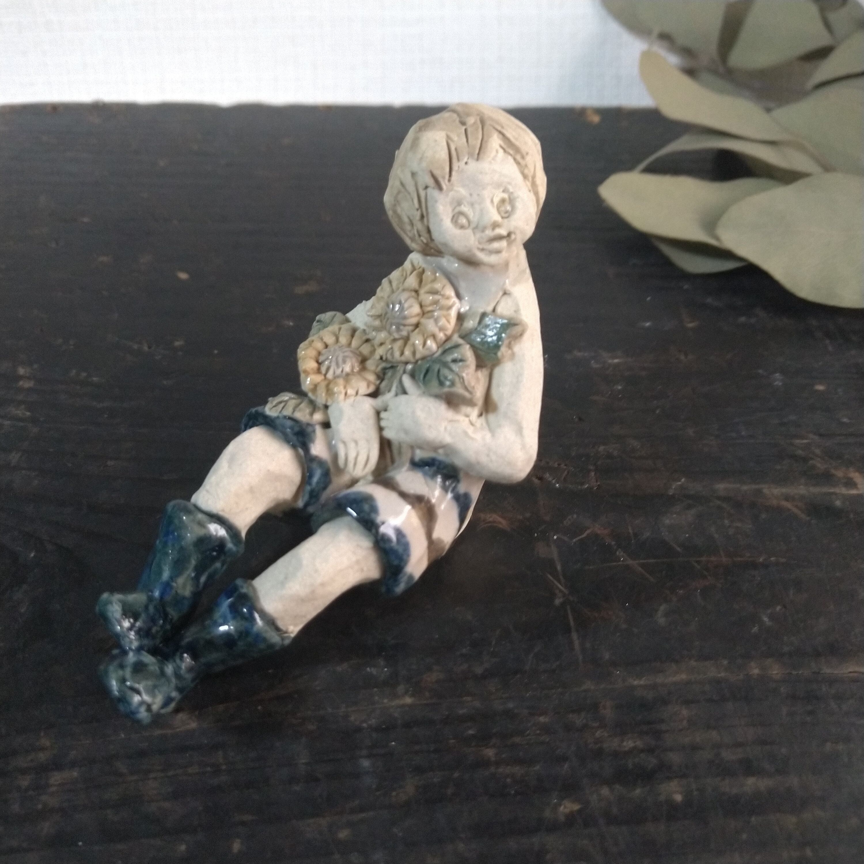 季節の花を手に持った「はなのこ」のシリーズで、向日葵(ひまわり)を持った女の子です。