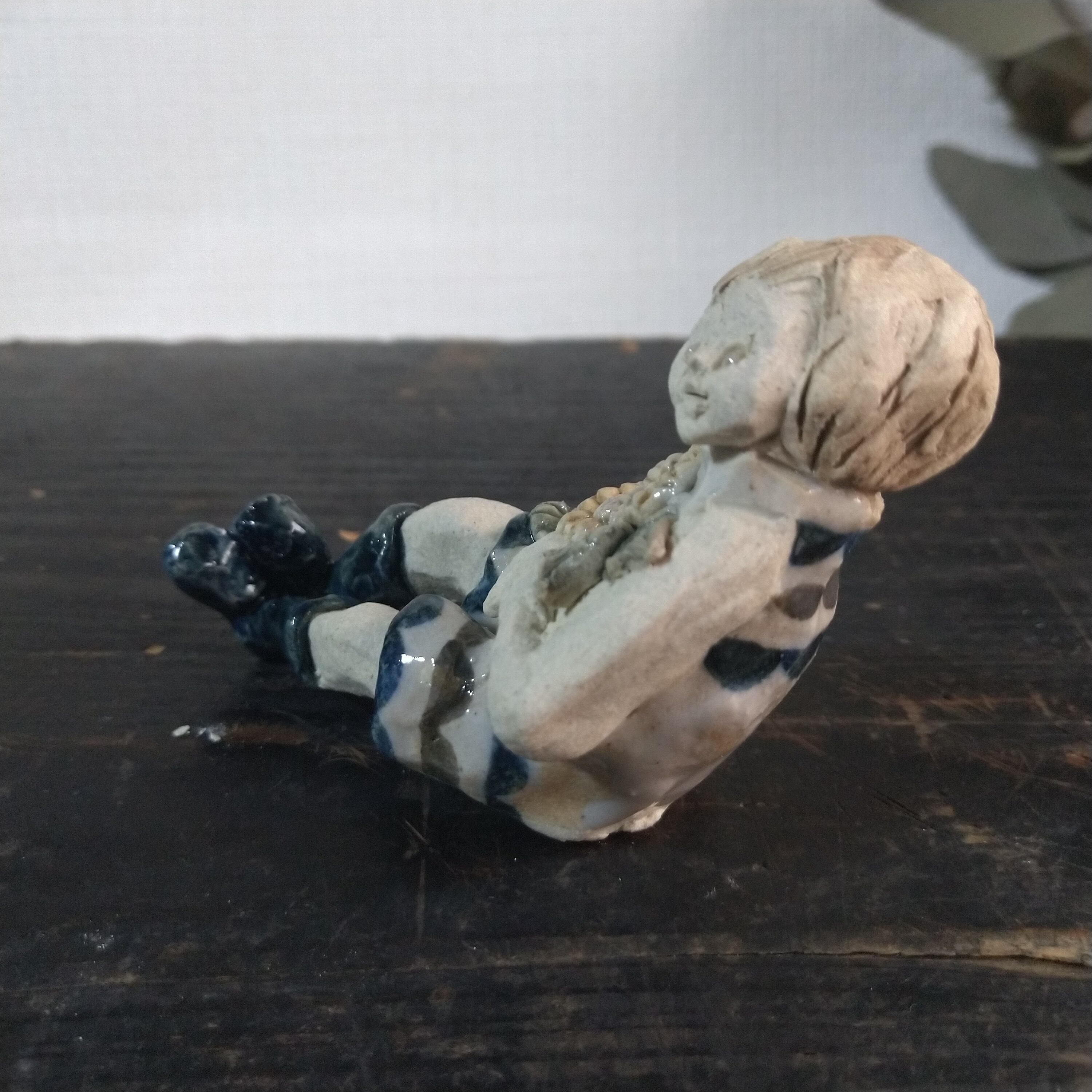 花と衣装の一部分には薄く透明釉を施しているので、その部分は少し光沢があります。