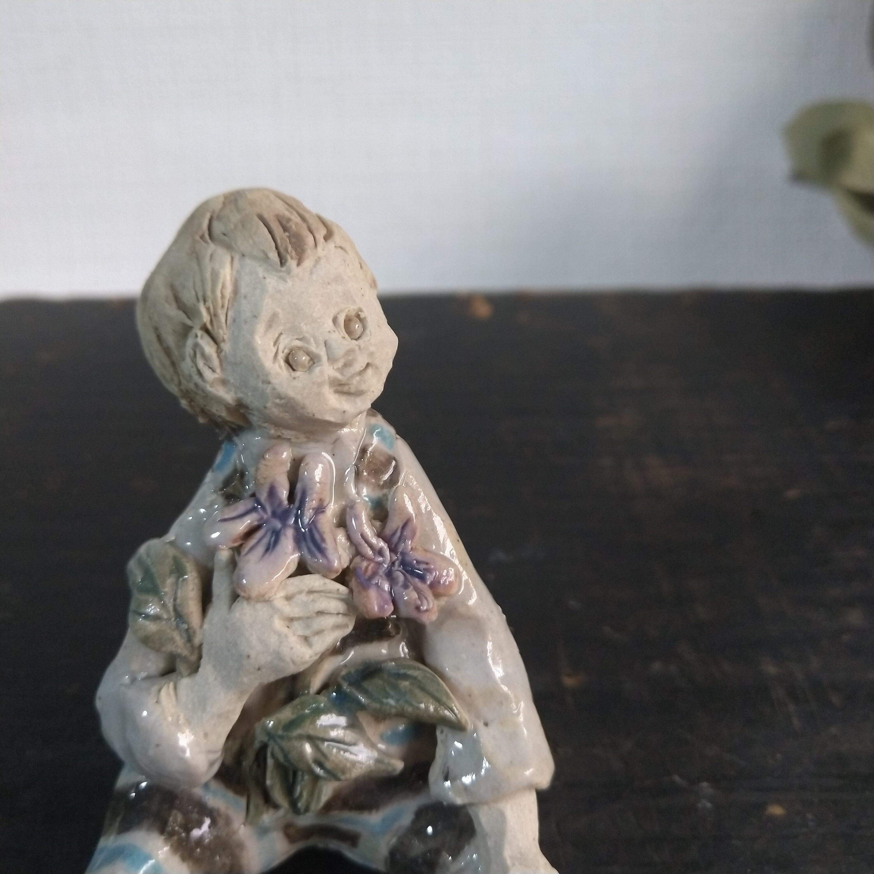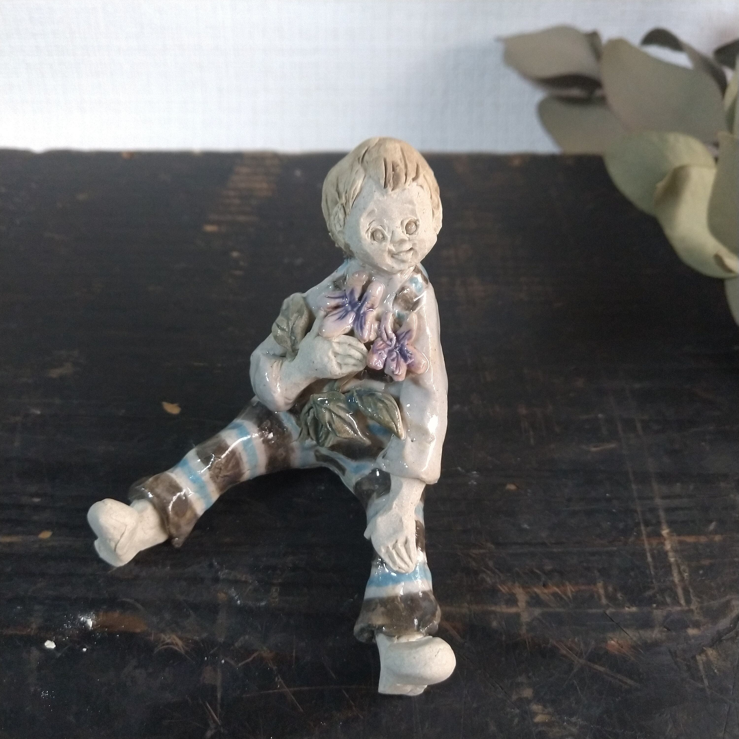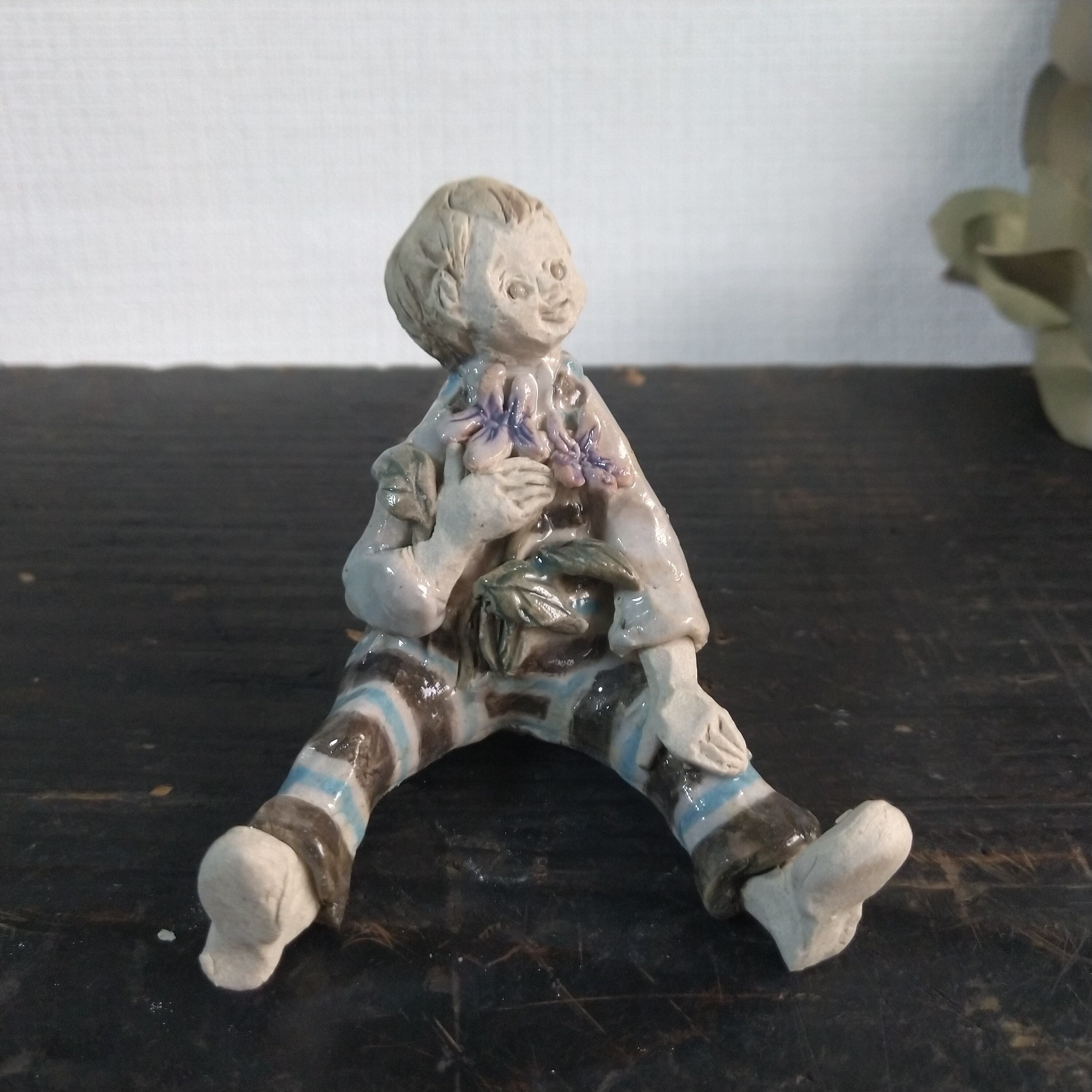 季節の花を手に持った「はなのこ」のシリーズで、菫(すみれ)を持った男の子です。