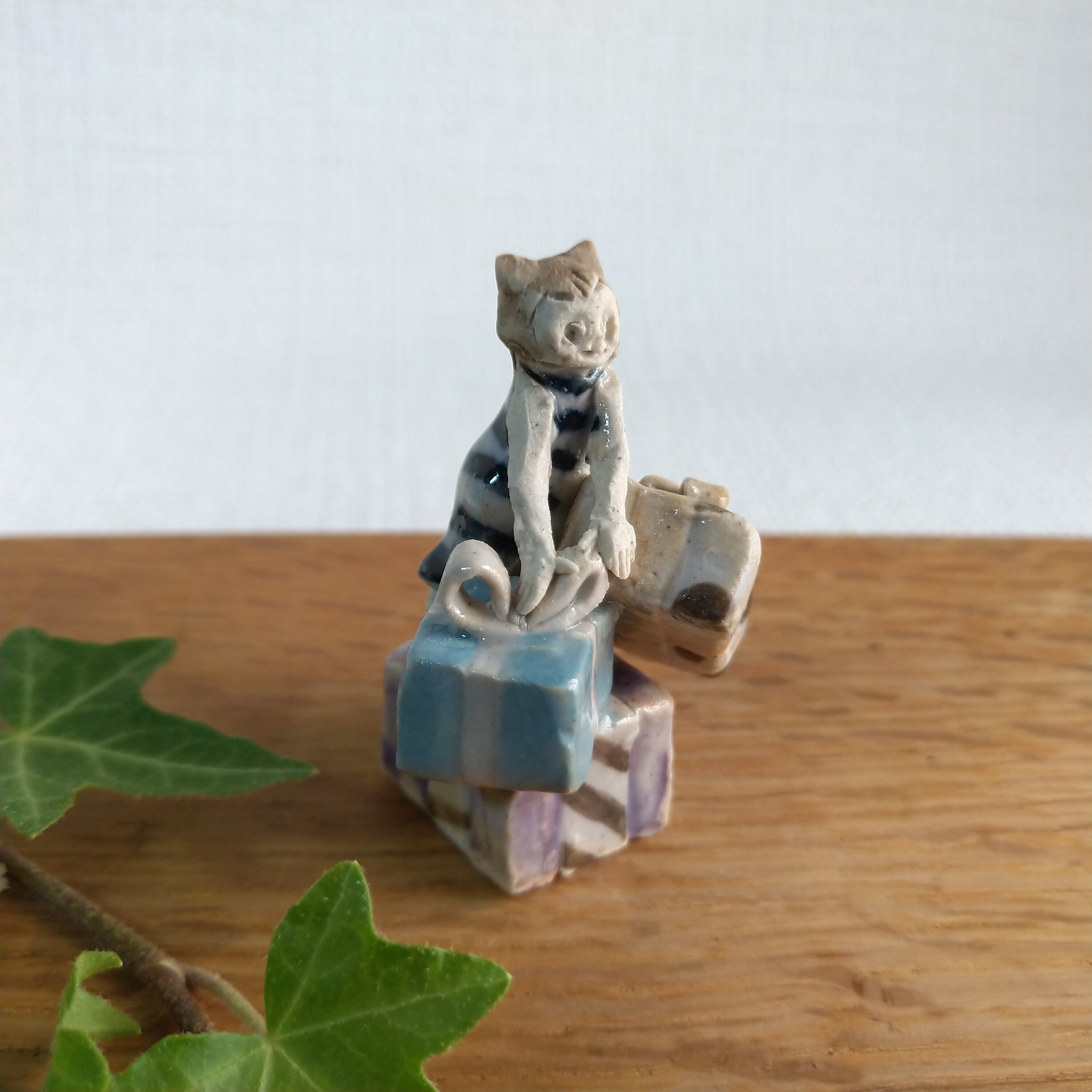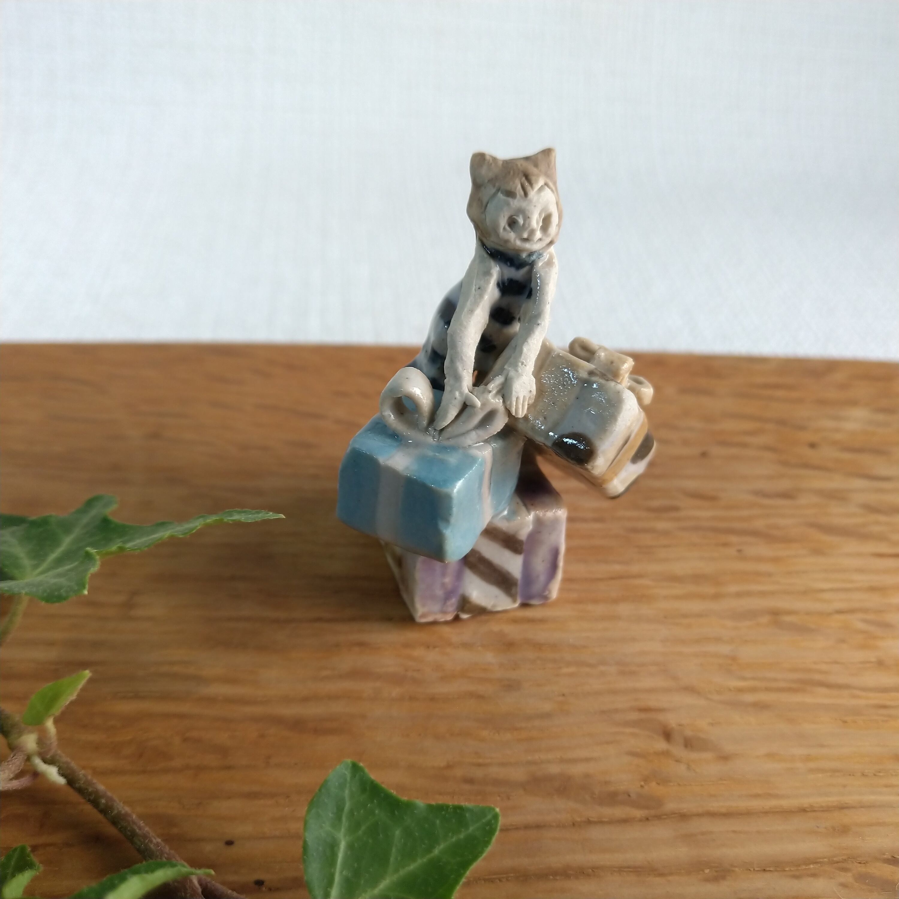プレゼントや服の一部分に薄く透明釉を施しているので、その部分は少し光沢があります。