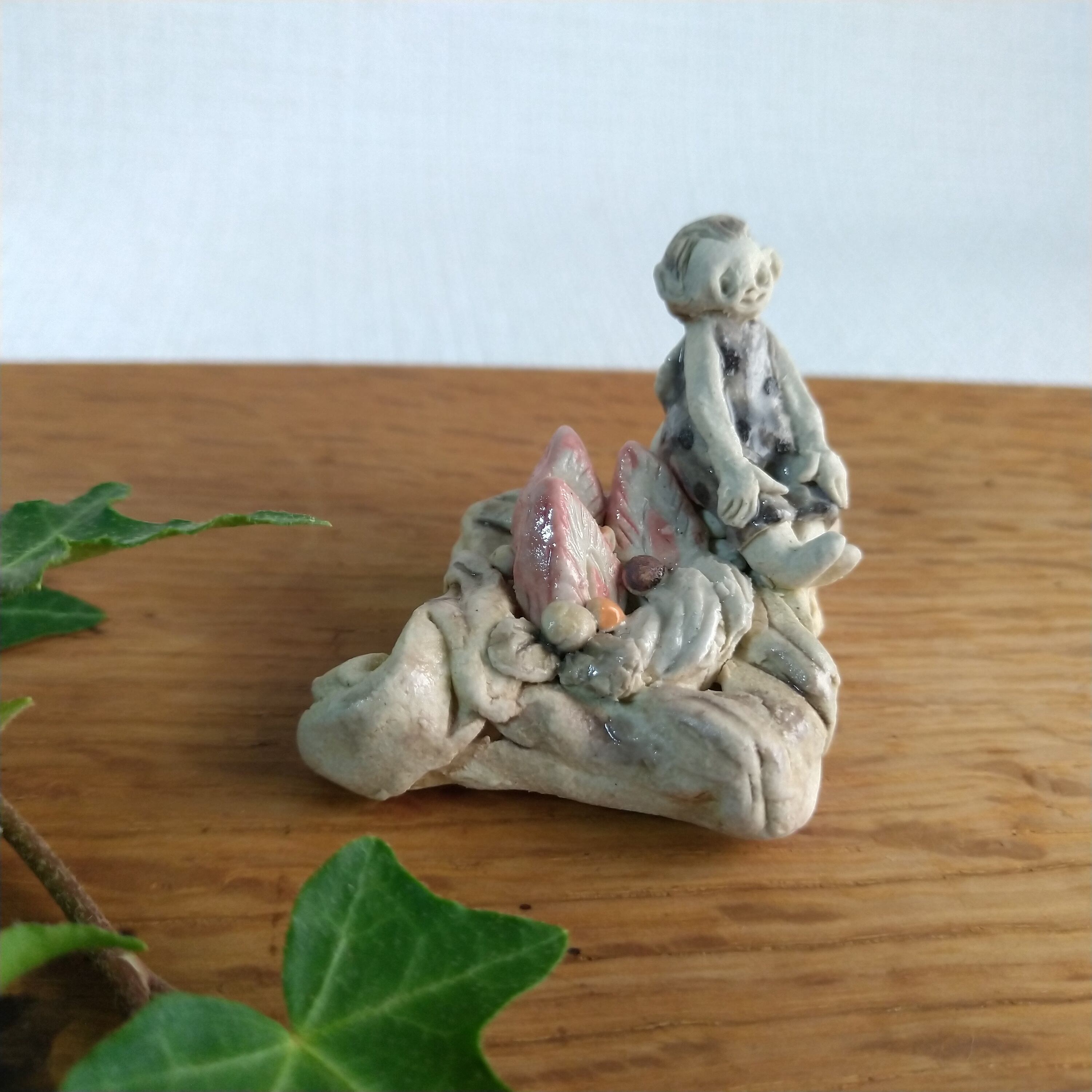 ひとりずつ手作りしている、てびねりの陶人形です。