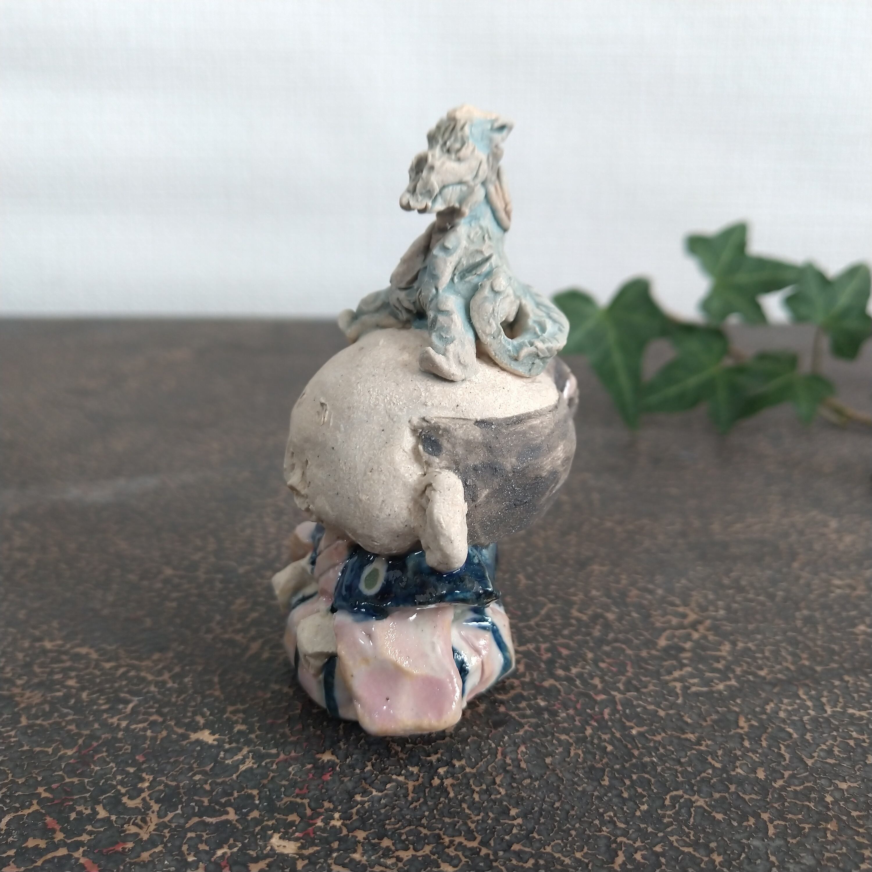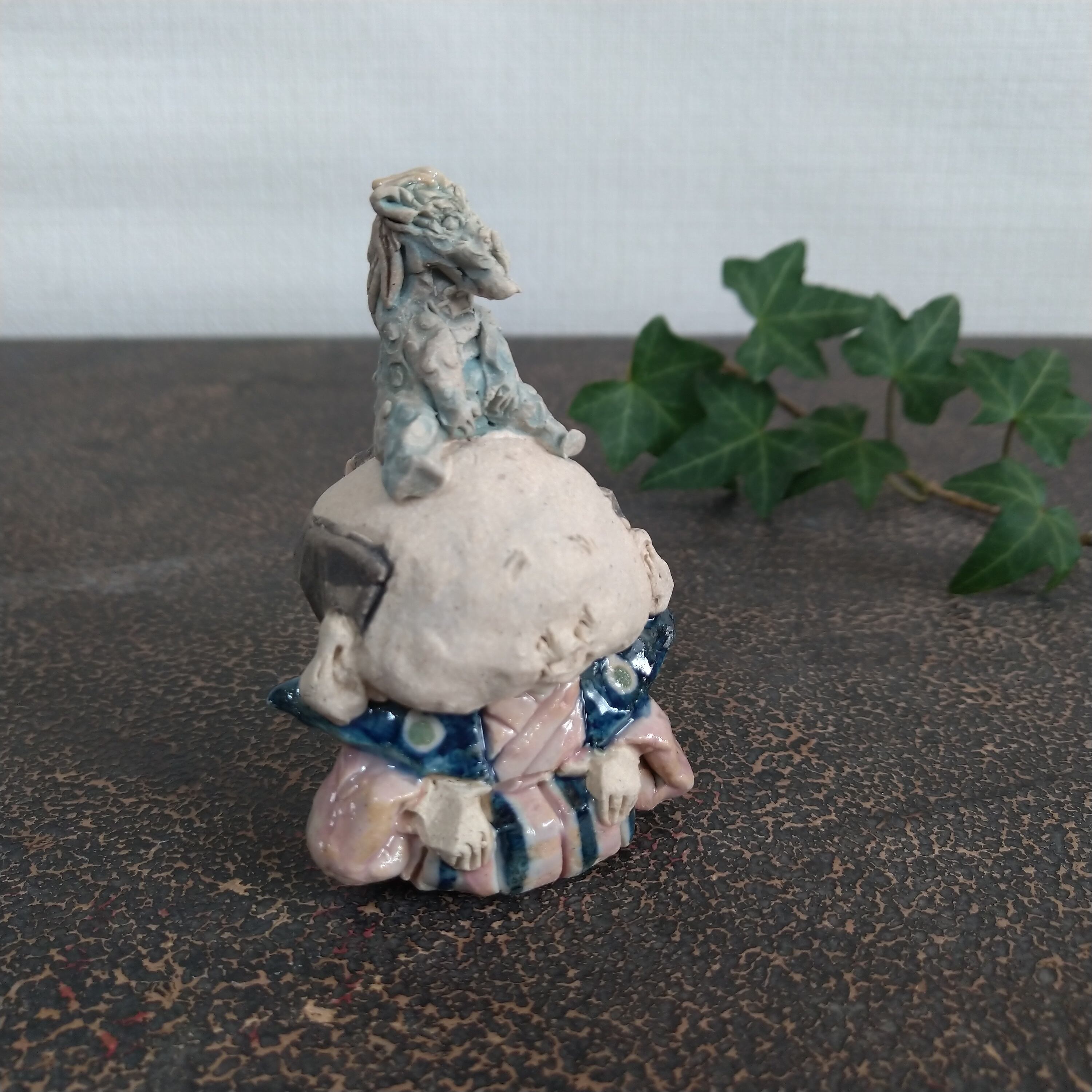 ※ 画像では大きく見えますが、実際は小さな作品です。ご検討の際には「サイズ」のご確認をお願いいたします。こちらのシリーズ作品はA→Bと少しずつ福助のサイズが大きくなっています。