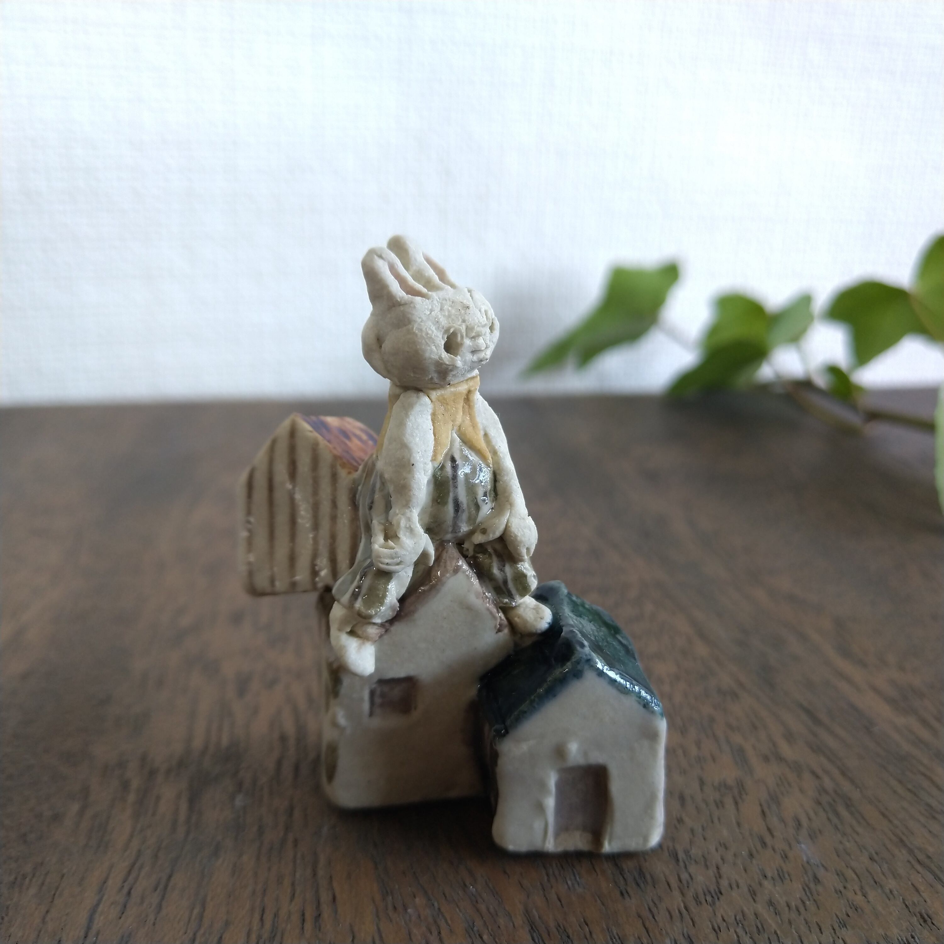 重なりあった小さなお家(house)とウサギさんの絶妙なバランスが見処の作品です。