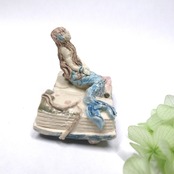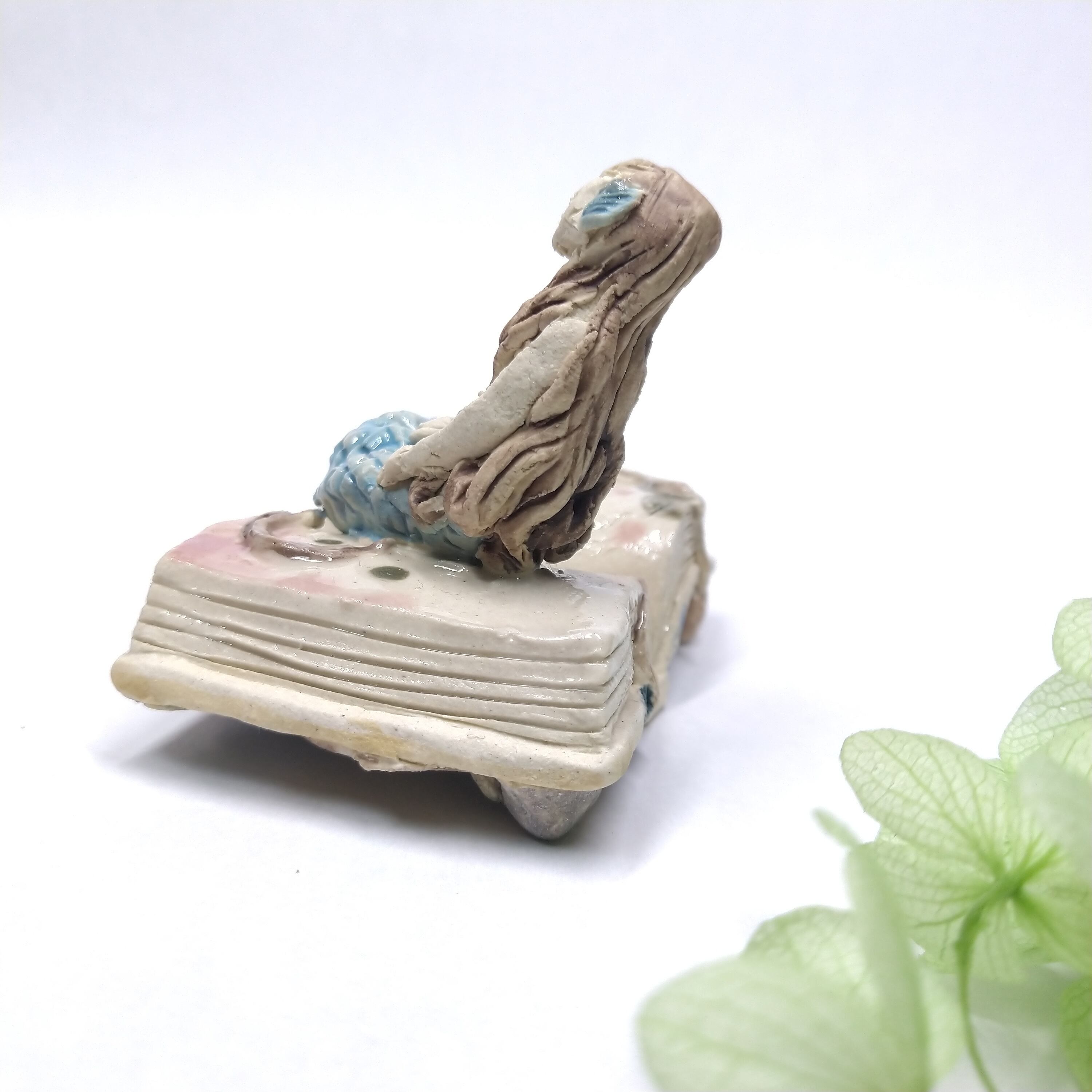 本や身体の一部に薄く透明釉を施しているので、その部分は少し光沢があります。