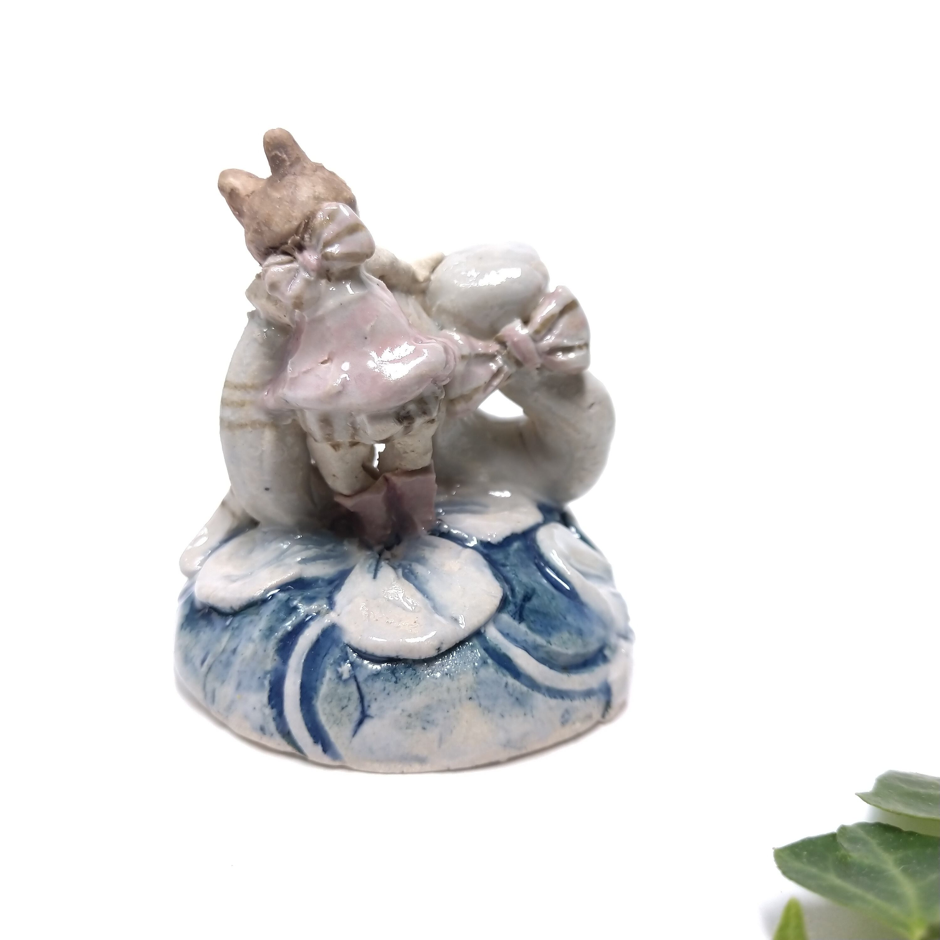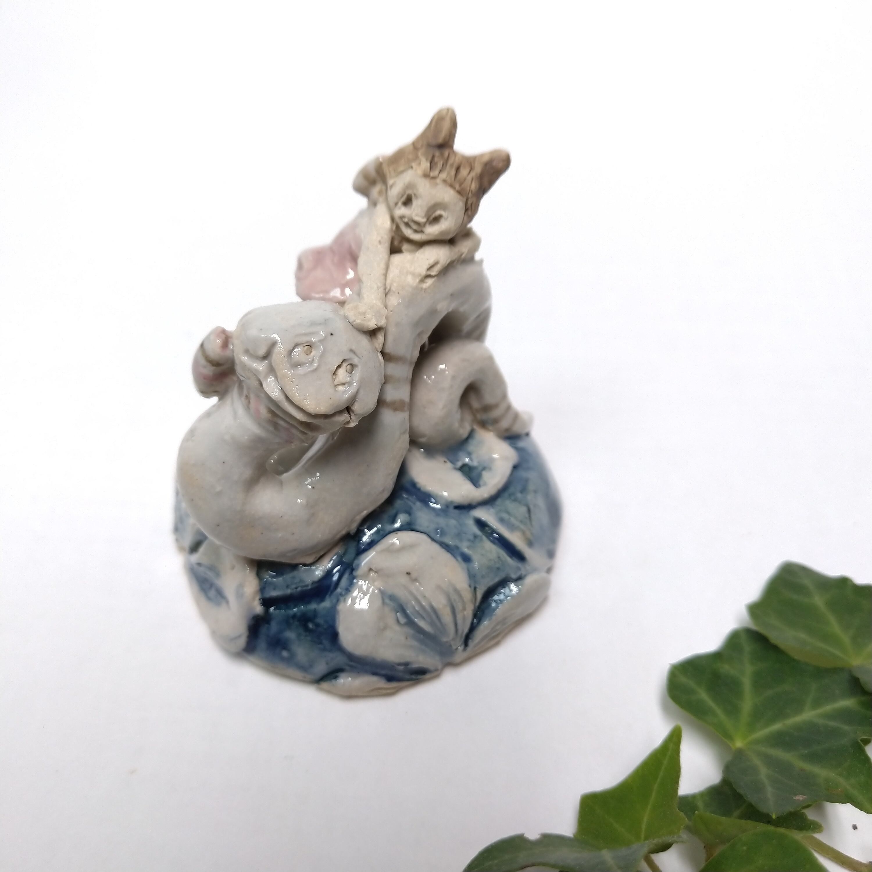 ヘビやちびっこの衣装、土台の一部分にポイントで薄く透明釉をかけているので、その部分は少し光沢があります。