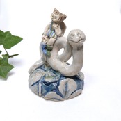 ヘビやちびっこの衣装、土台の一部分にポイントで薄く透明釉をかけているので、その部分は少し光沢があります。