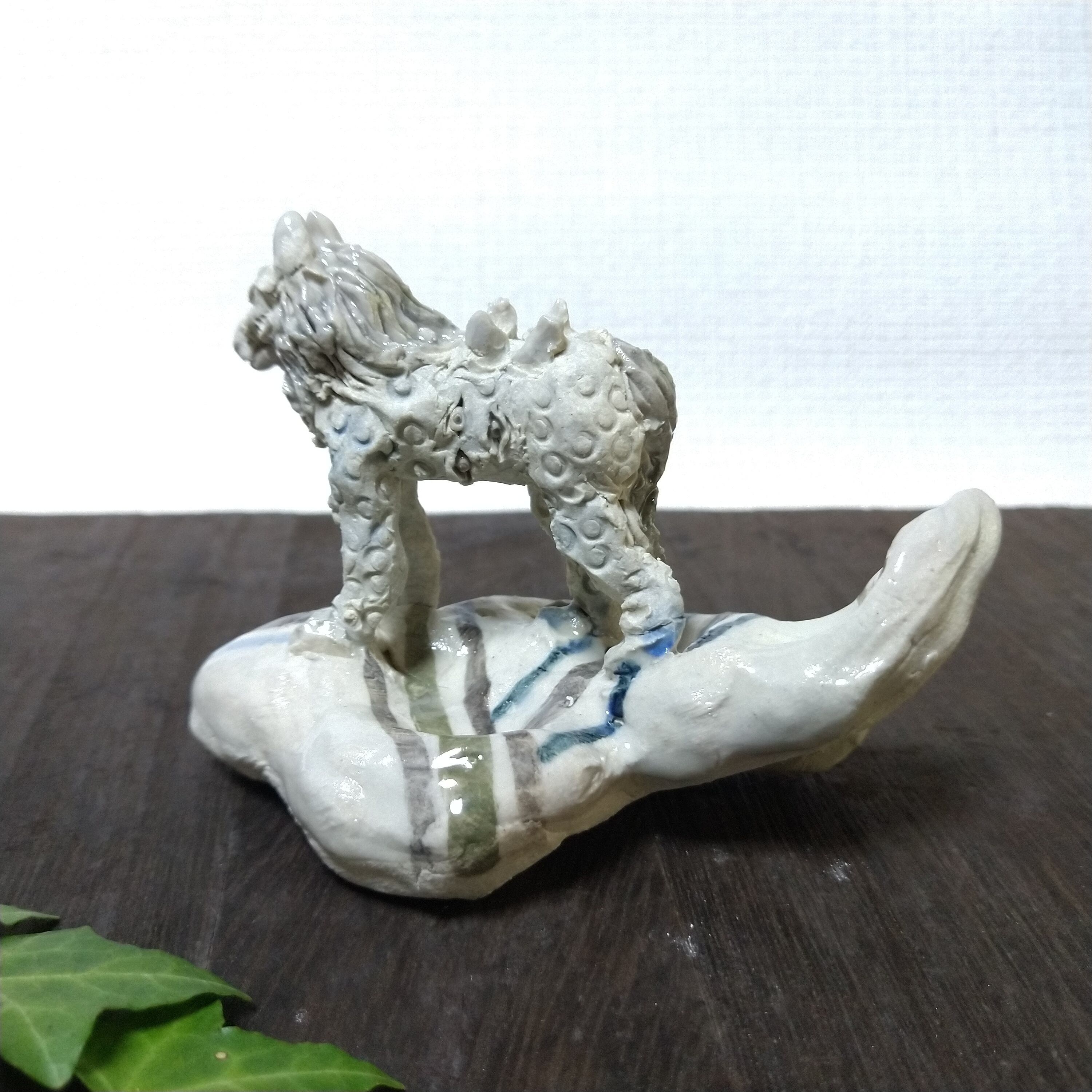 身体と土台の一部分には薄く透明釉を施しているので、その部分は少し光沢があります。