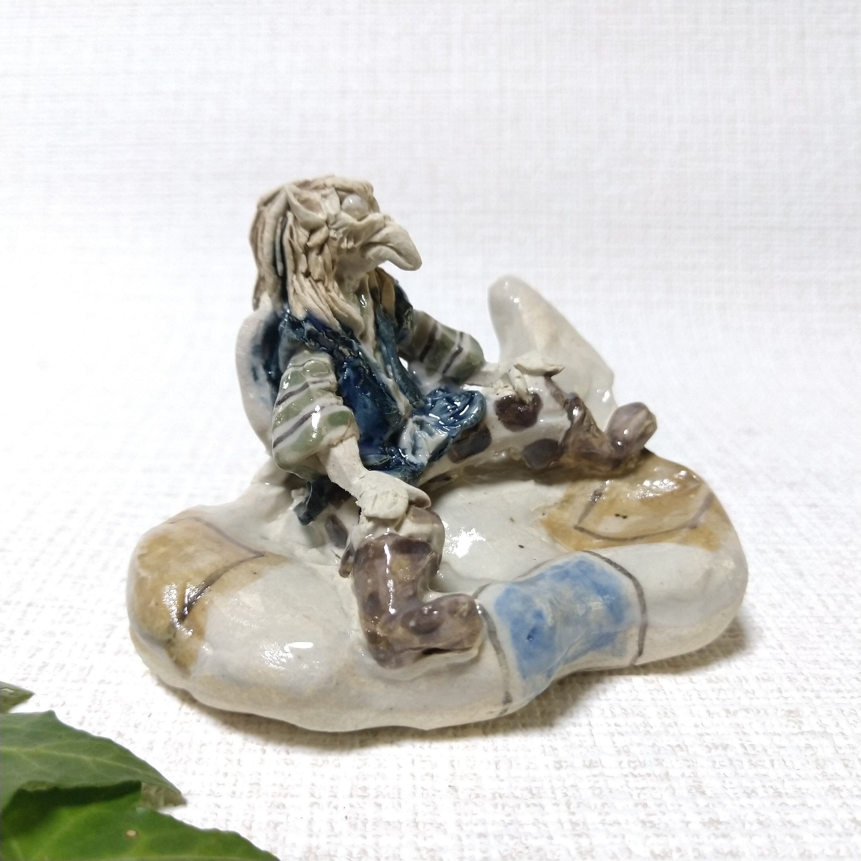 土台や衣装の一部分には薄く透明釉を施しているので、その部分は少し光沢があります。