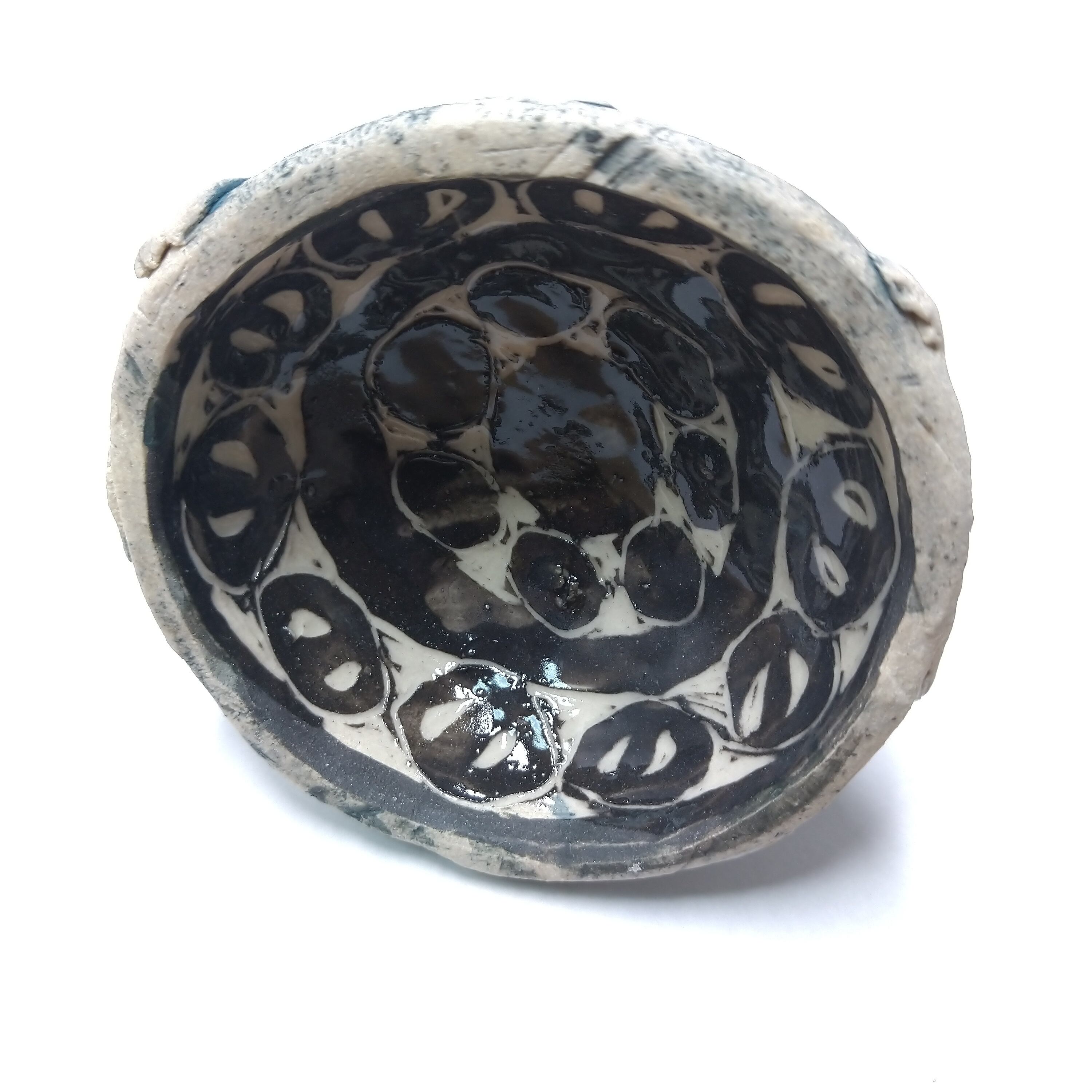 土台の裏面には、掻き落としという技法でモノクロの模様を入れています。