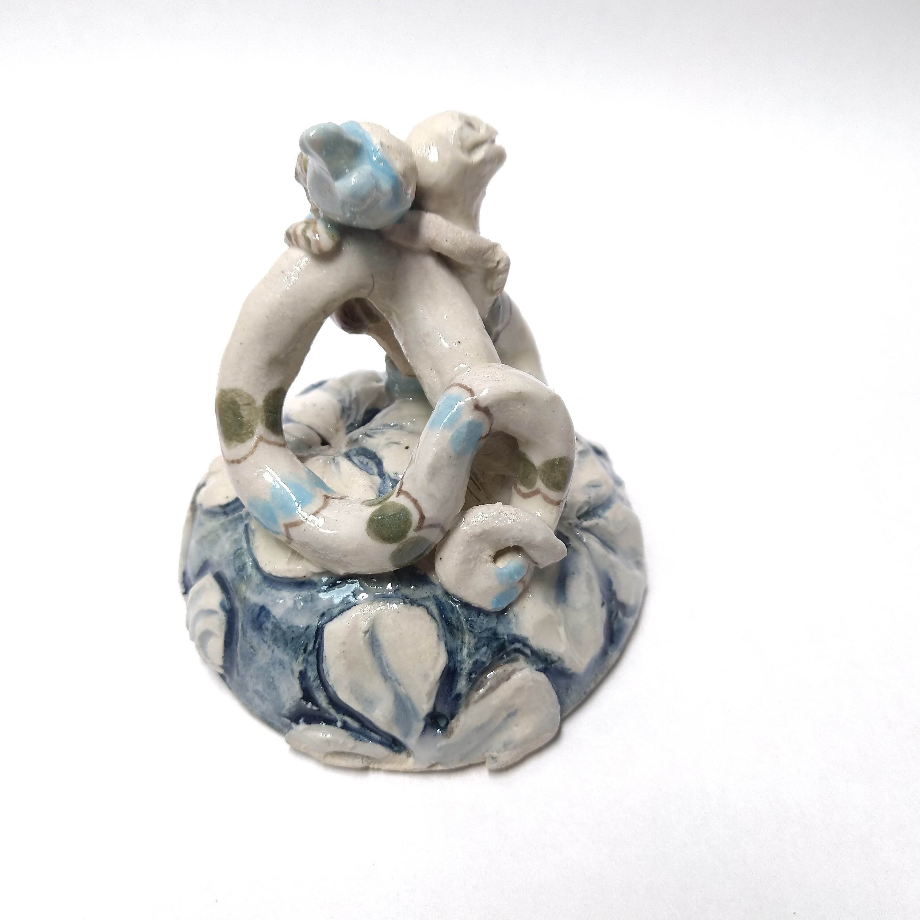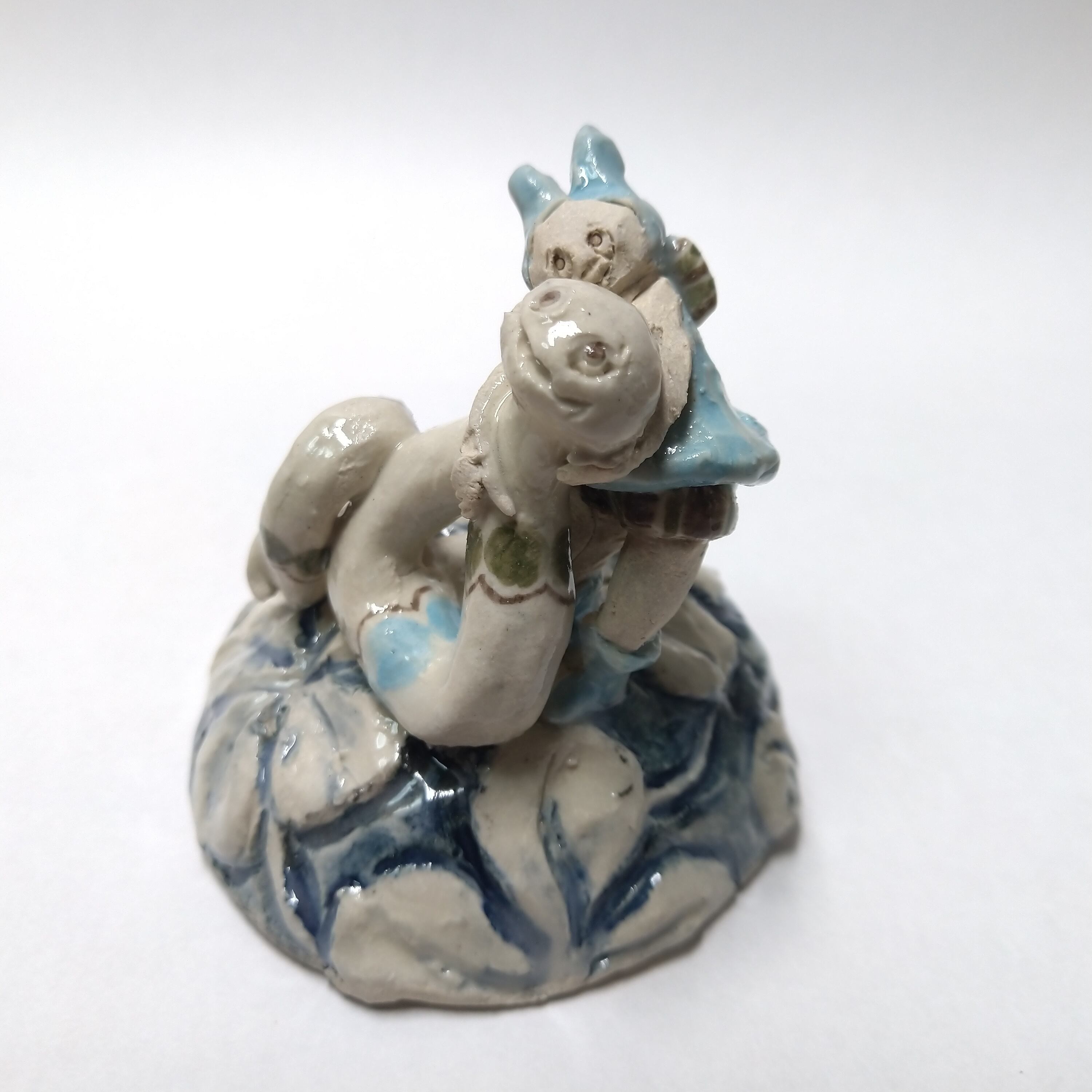 ヘビやちびっこの衣装、土台の一部分にポイントで薄く透明釉をかけているので、その部分は少し光沢があります。