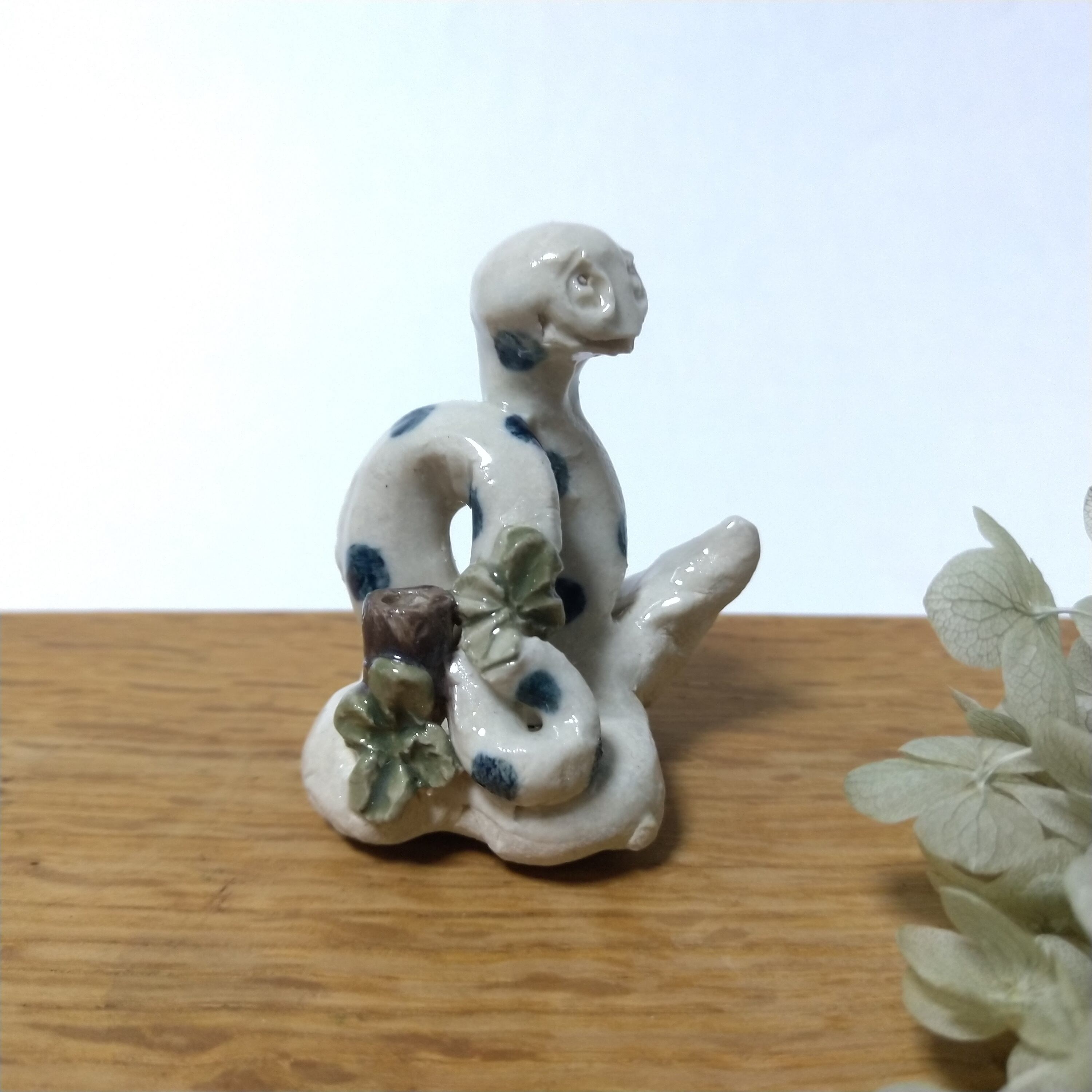 2025年の干支でもある、ちびサイズの巳(ヘビ)が雲型の土台にのっているシリーズです。
