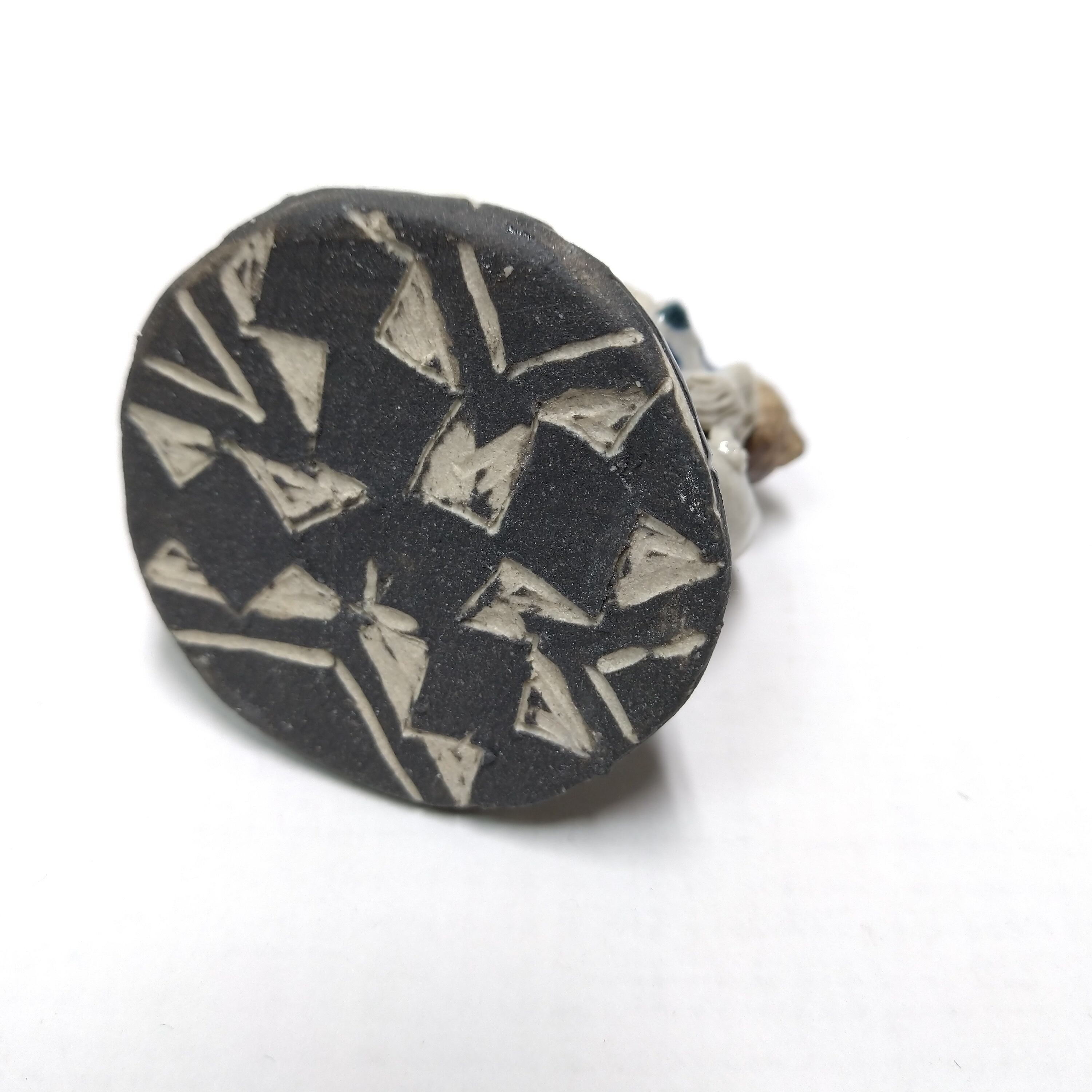 土台は「掻き落とし(sgraffito)」という技法で底面までモノクロの模様になっています。
