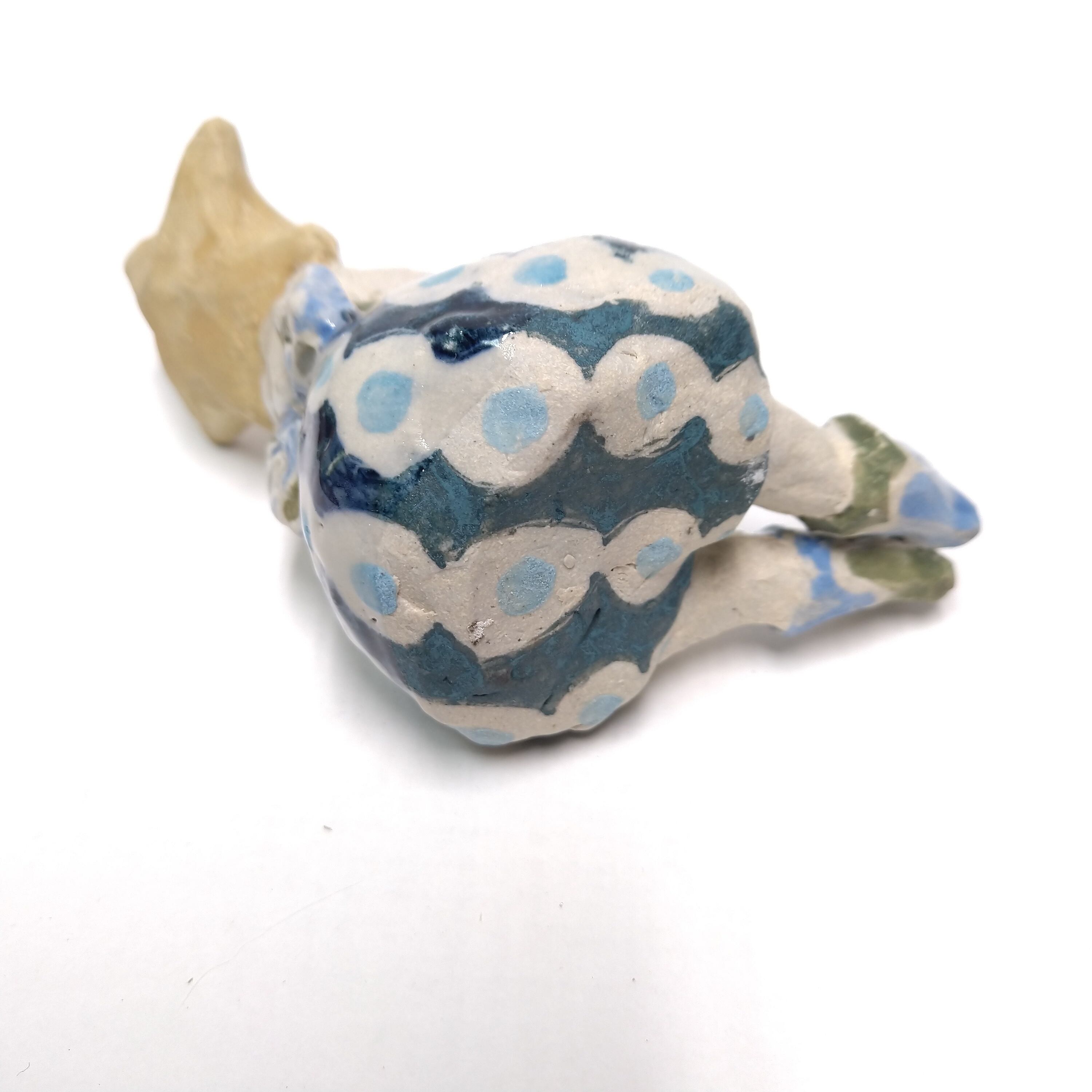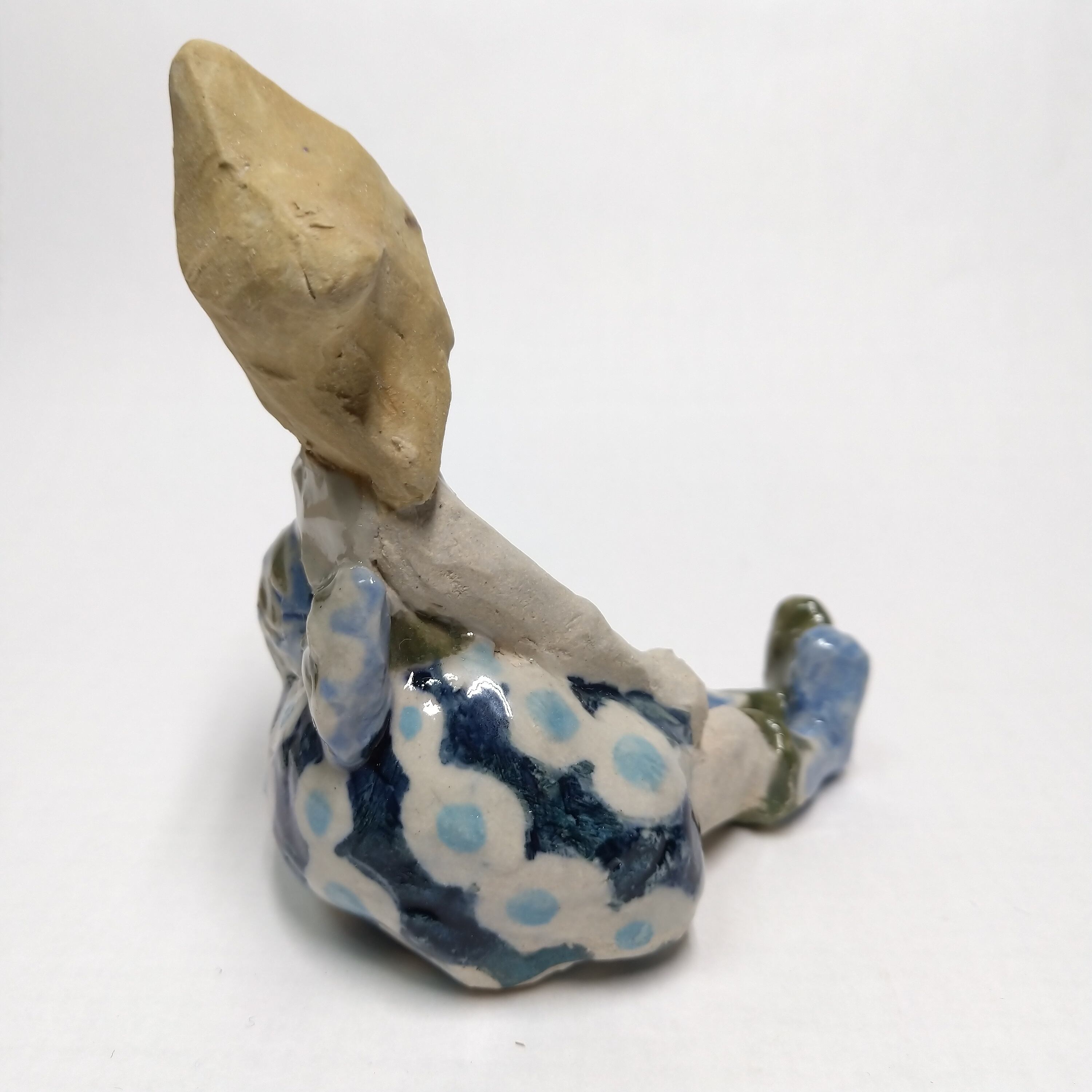 瞳や衣装には部分的に透明釉を施しているので、その部分は少し光沢があります。
