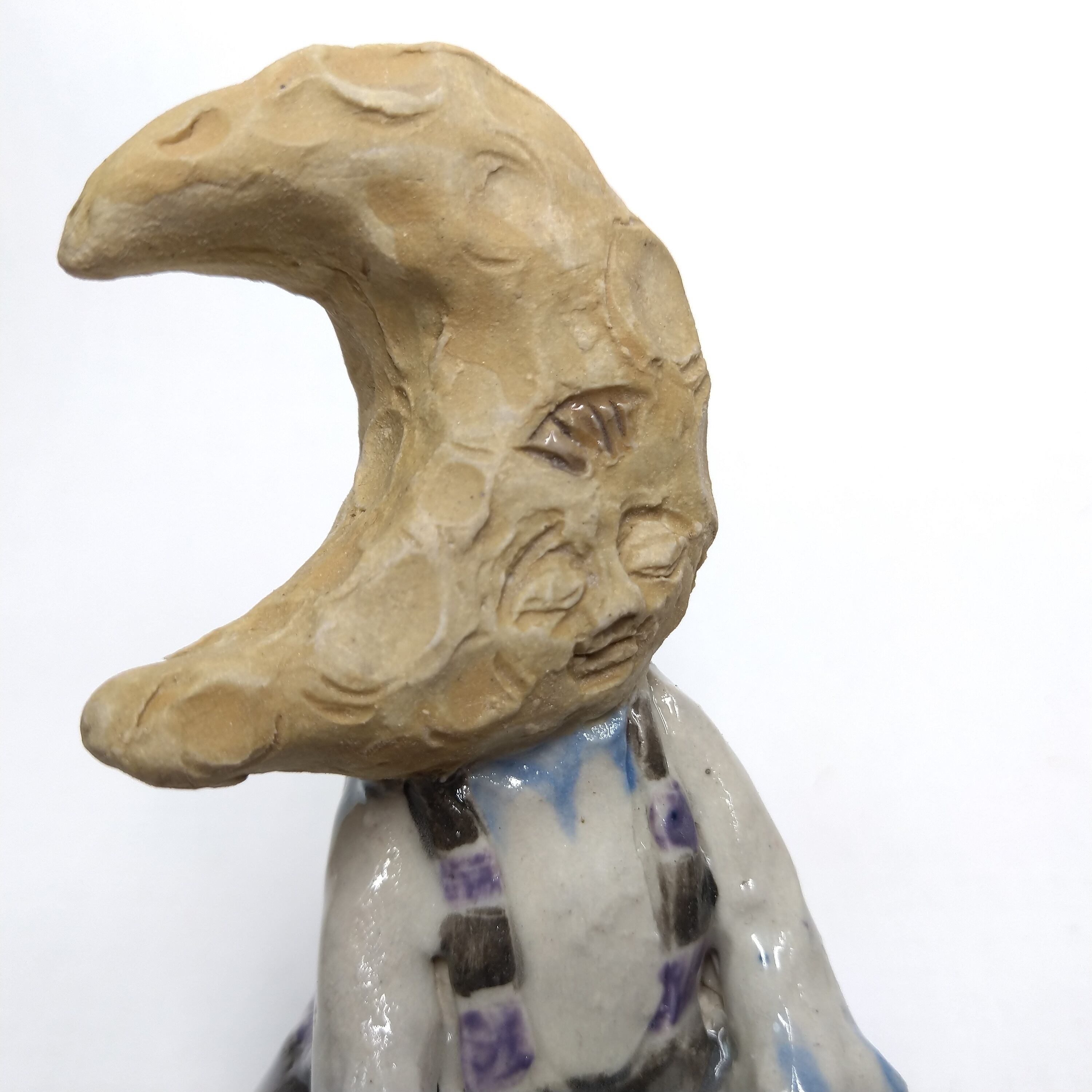 前髪や衣装には部分的に透明釉を施しているので、その部分は少し光沢があります。