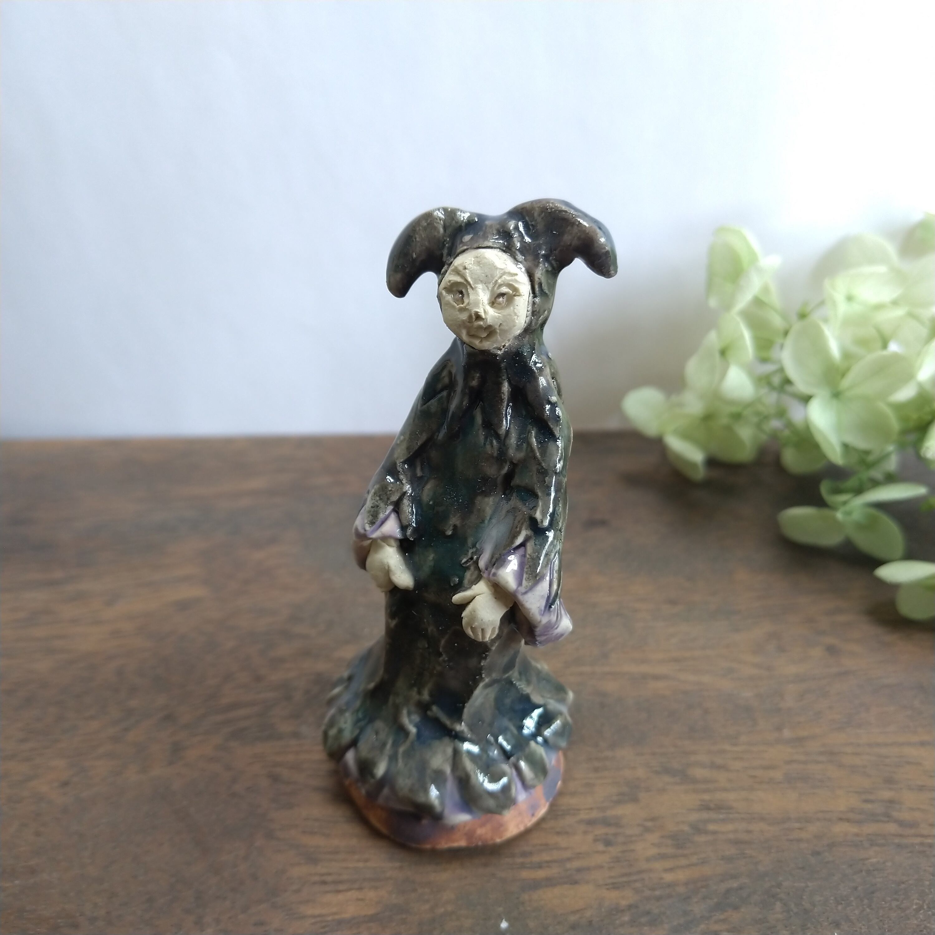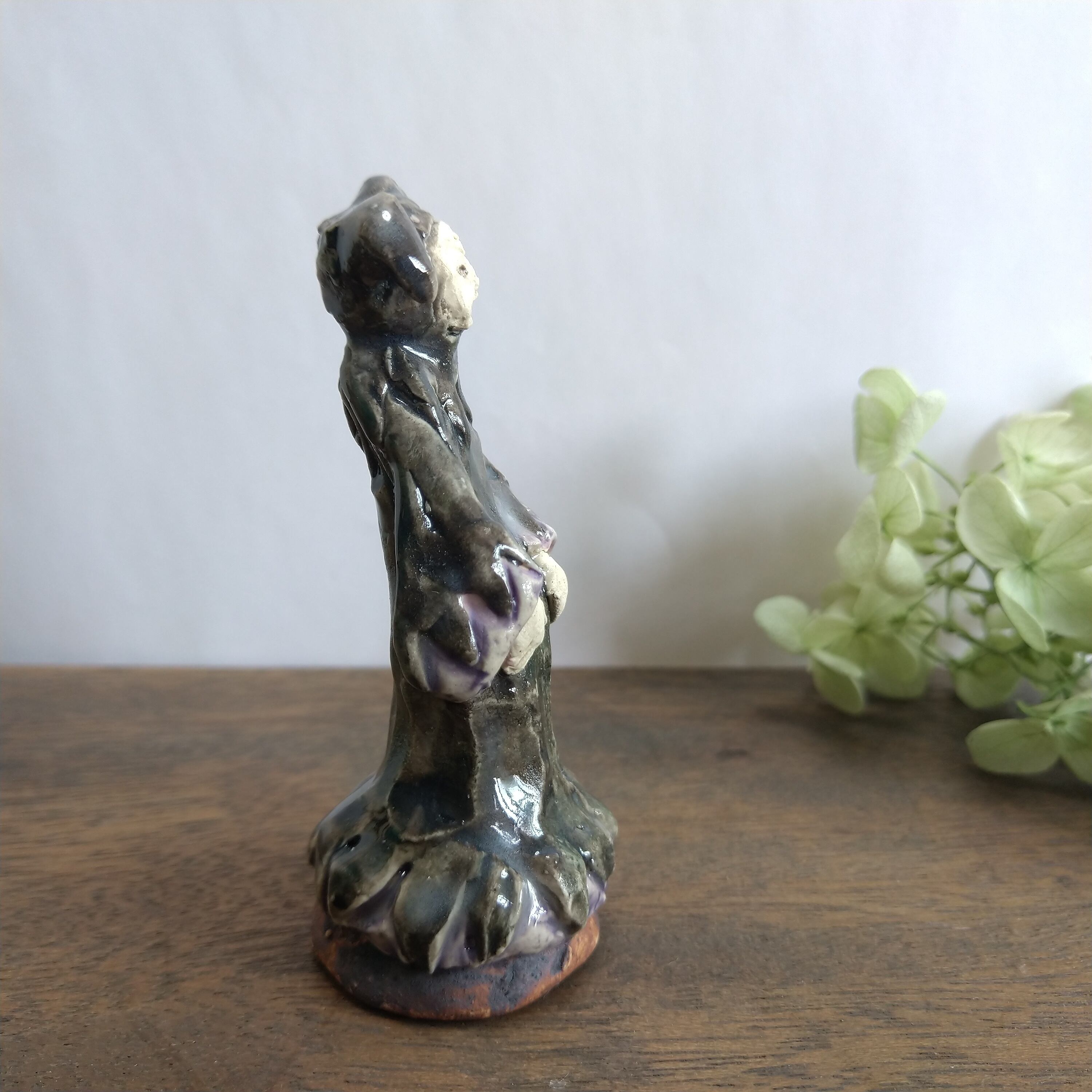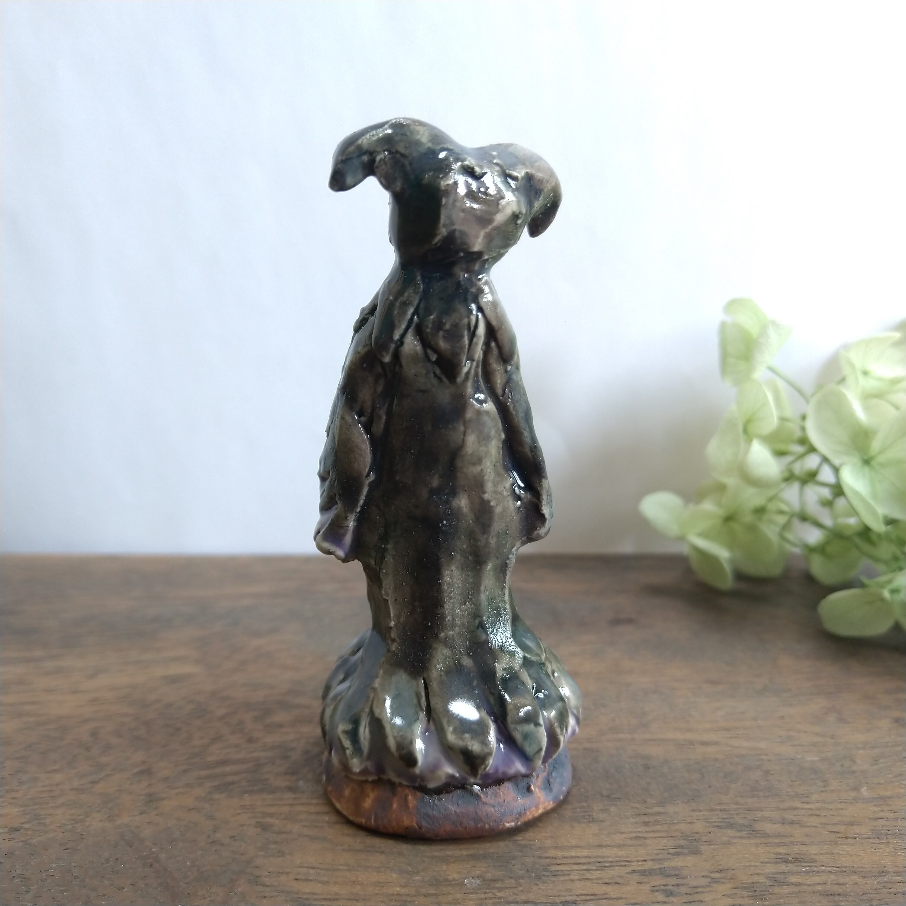 土台と服の一部分にポイントで薄く透明釉をかけているので、その部分は少し光沢があります。