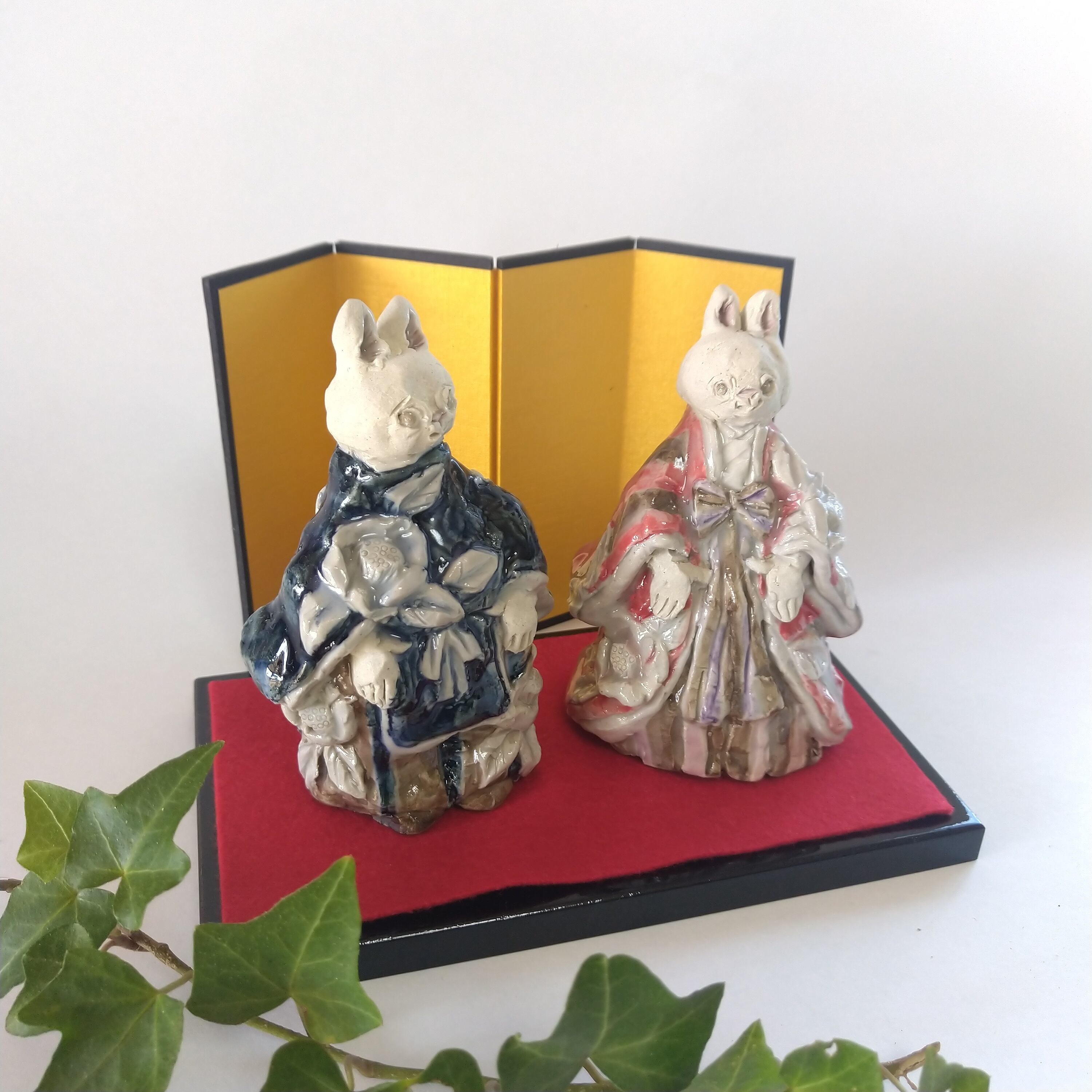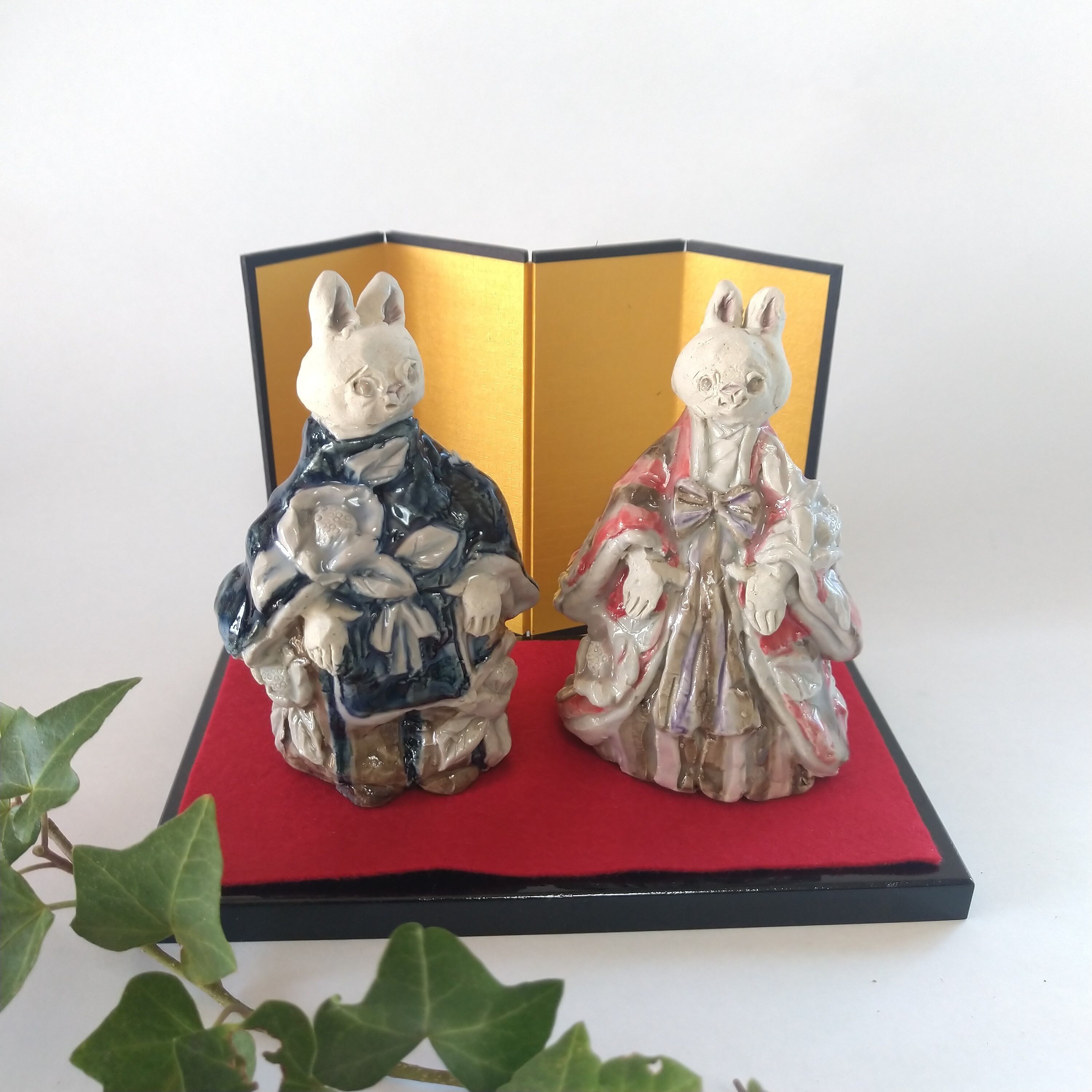 立ち雛人形 うさぎ椿